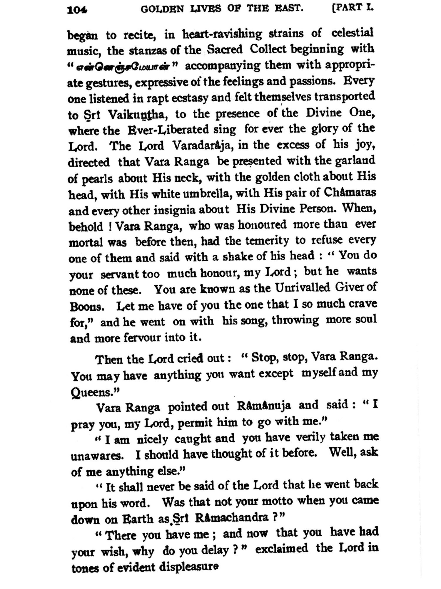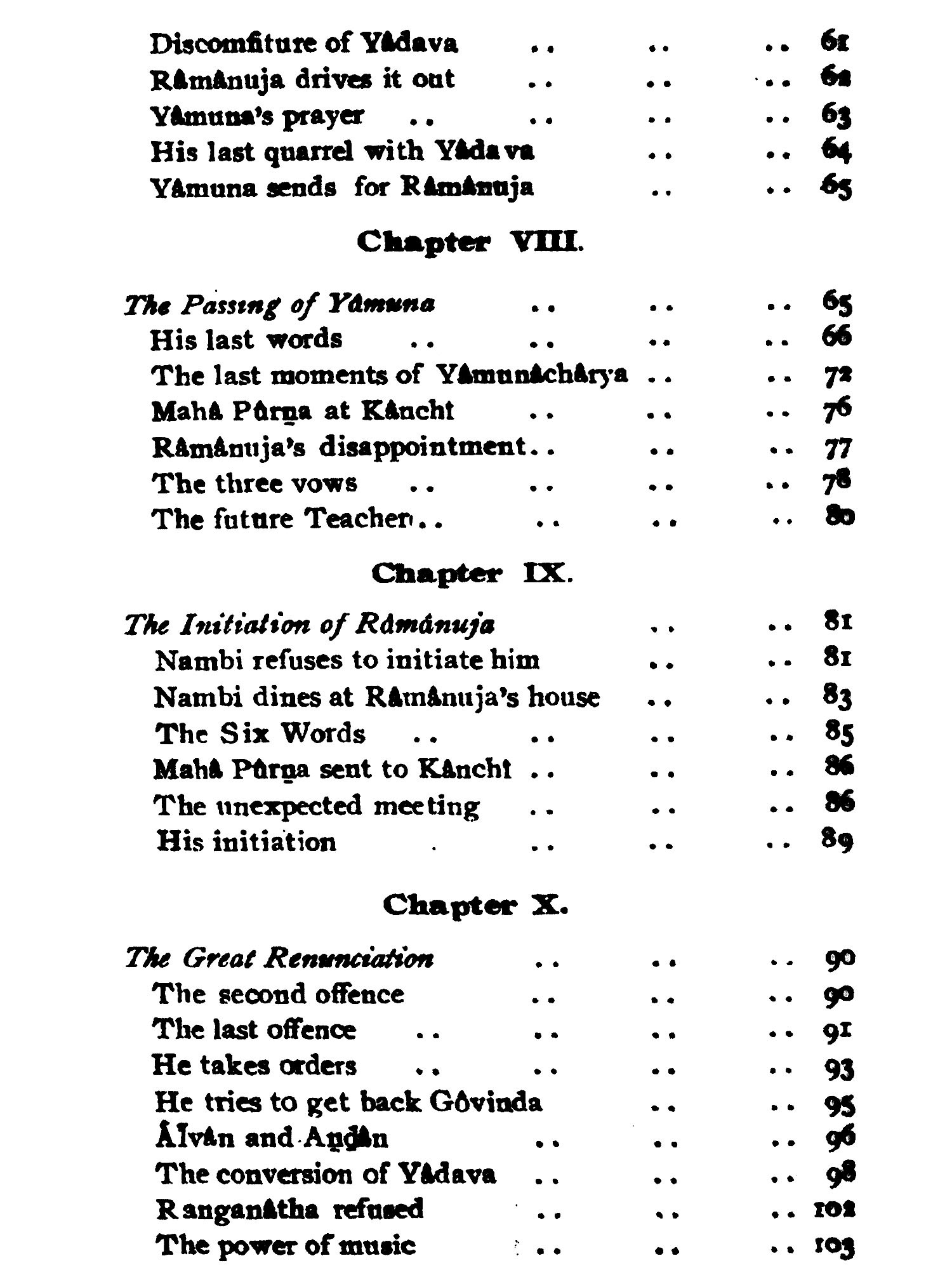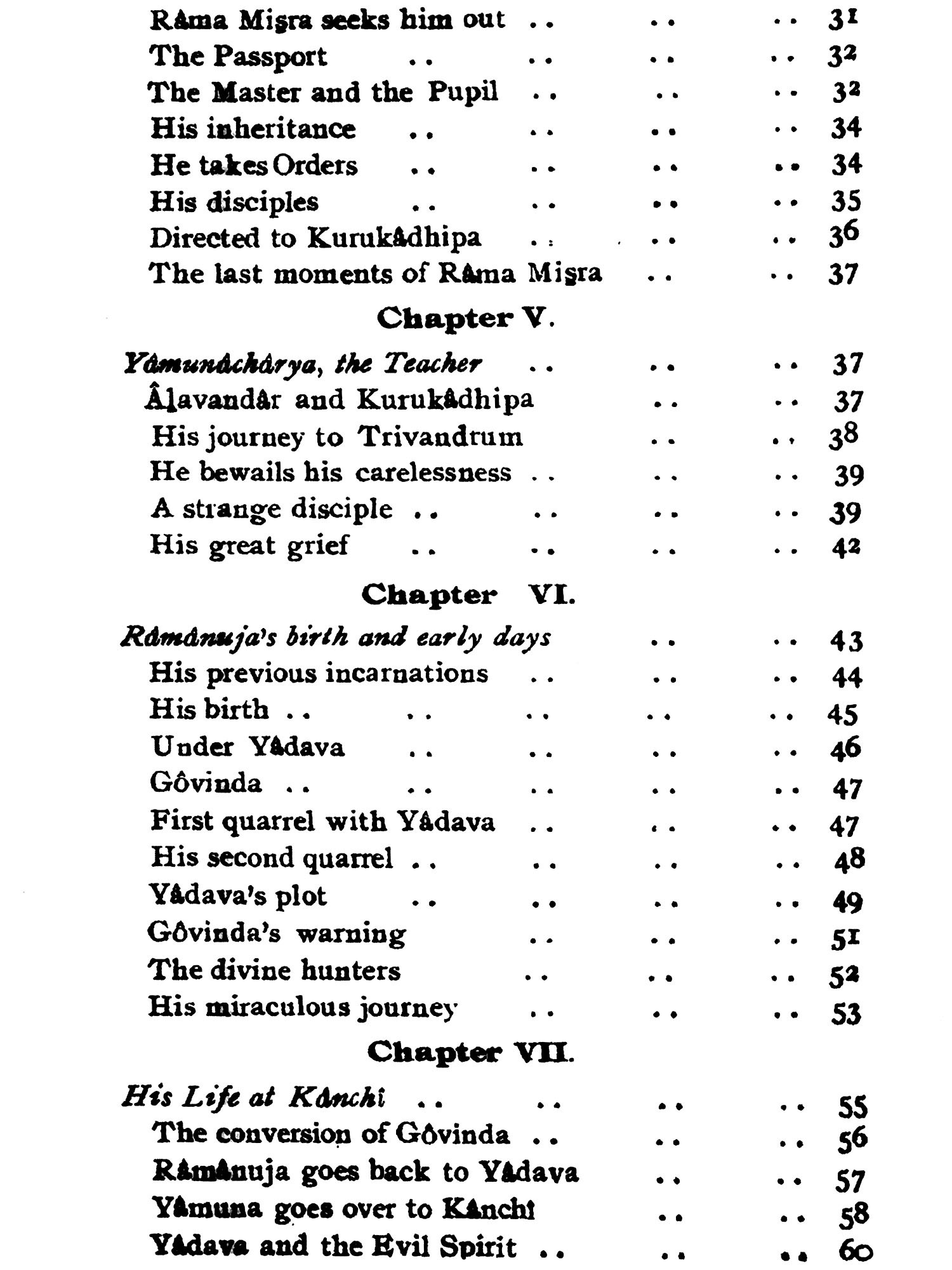 The book chronicles the life and teachings of Sri Ramanuja in extensive detail, spanning multiple chapters. It delves into his early years, initiation, discipleship, and philosophical contributions. The narrative explores key moments, including his conflicts, conversions, and spiritual journeys. Through anecdotes and teachings, it illustrates Ramanuja's impact on Carnatic music and Hindu philosophy. The text also examines his disciples and philosophical hierarchy. With rich historical insights and spiritual depth, it offers a comprehensive portrayal of Ramanuja's life, teachings, and legacy, enriching our understanding of Vaishnavism and Indian spirituality.