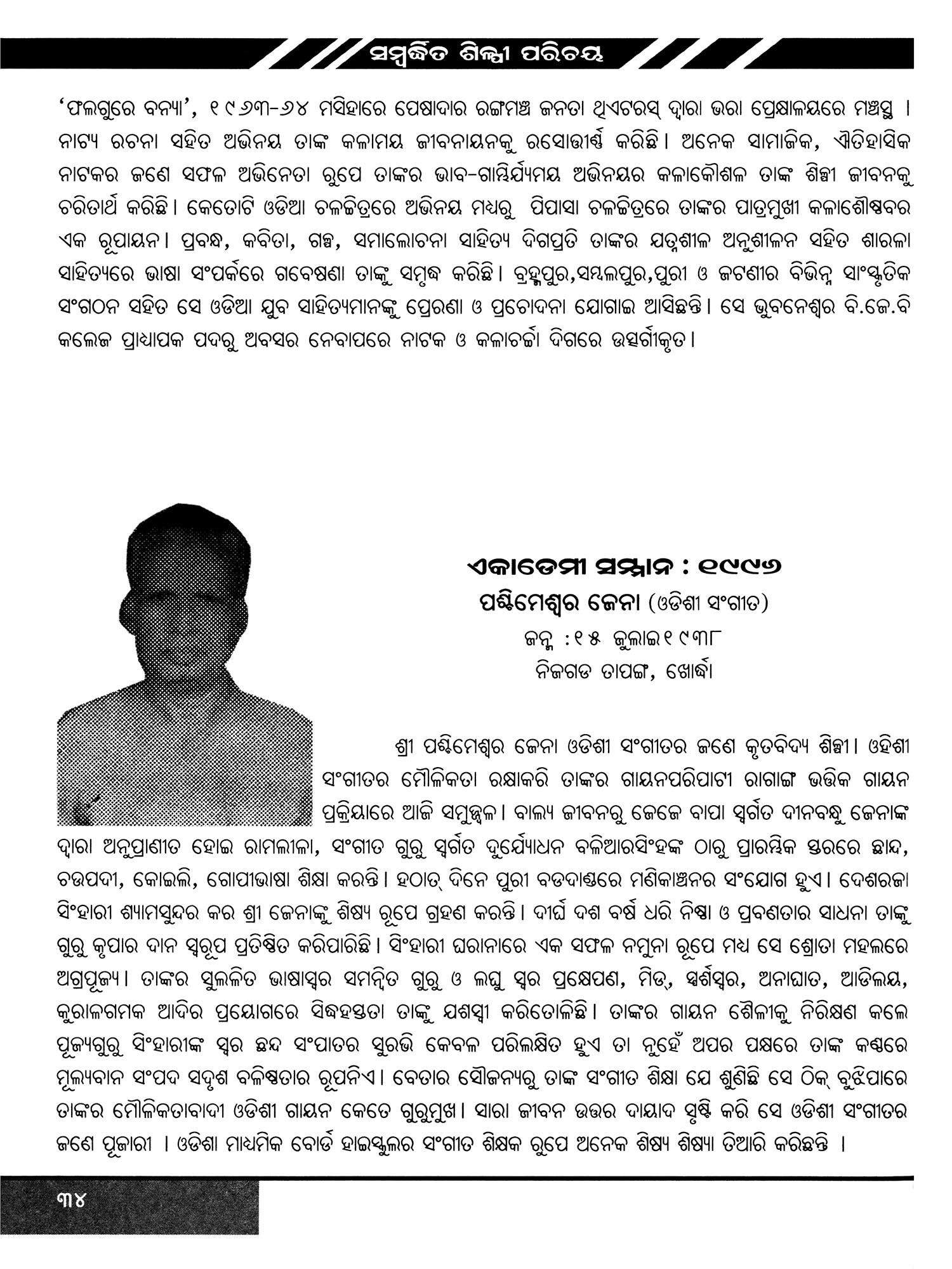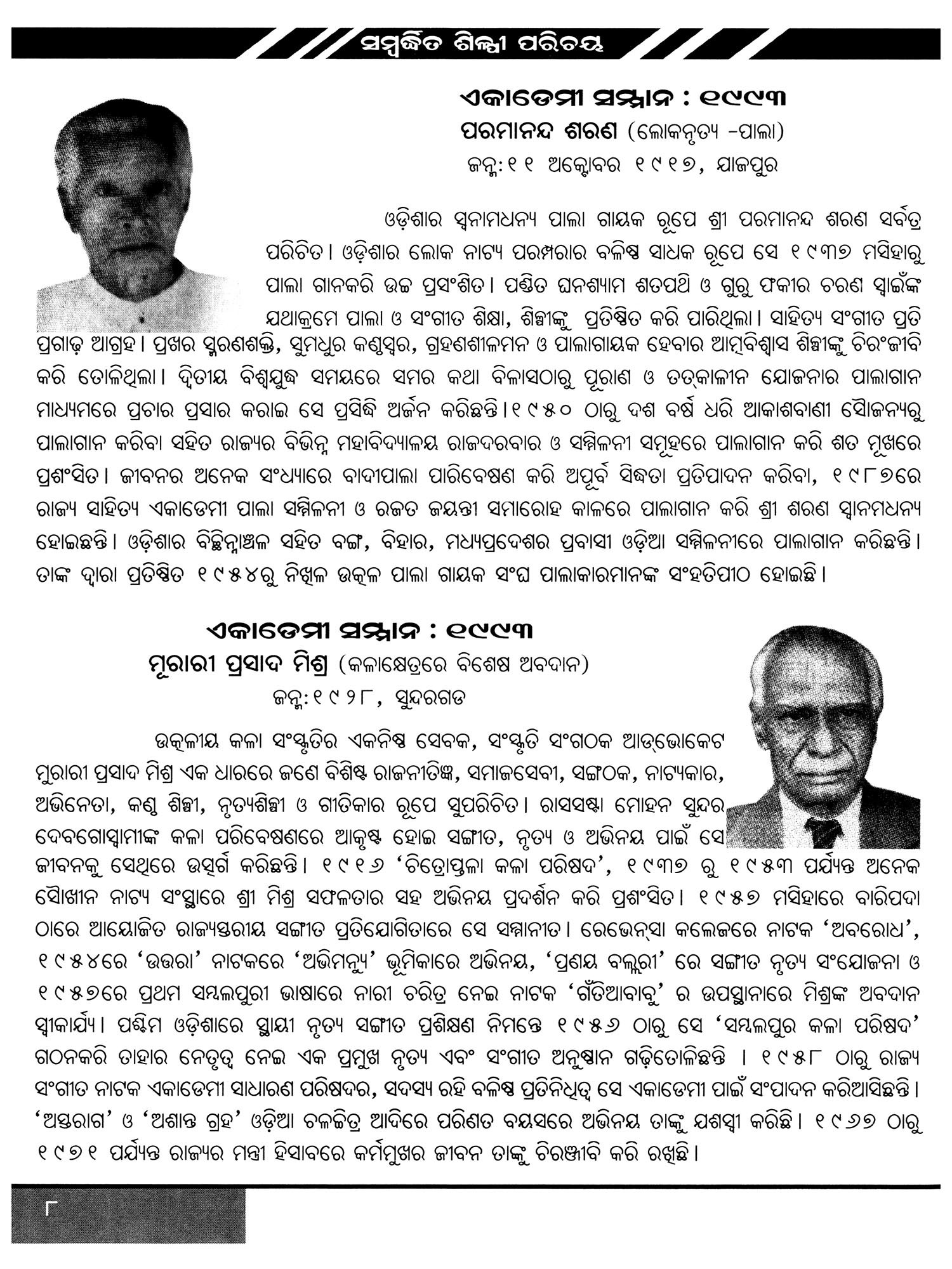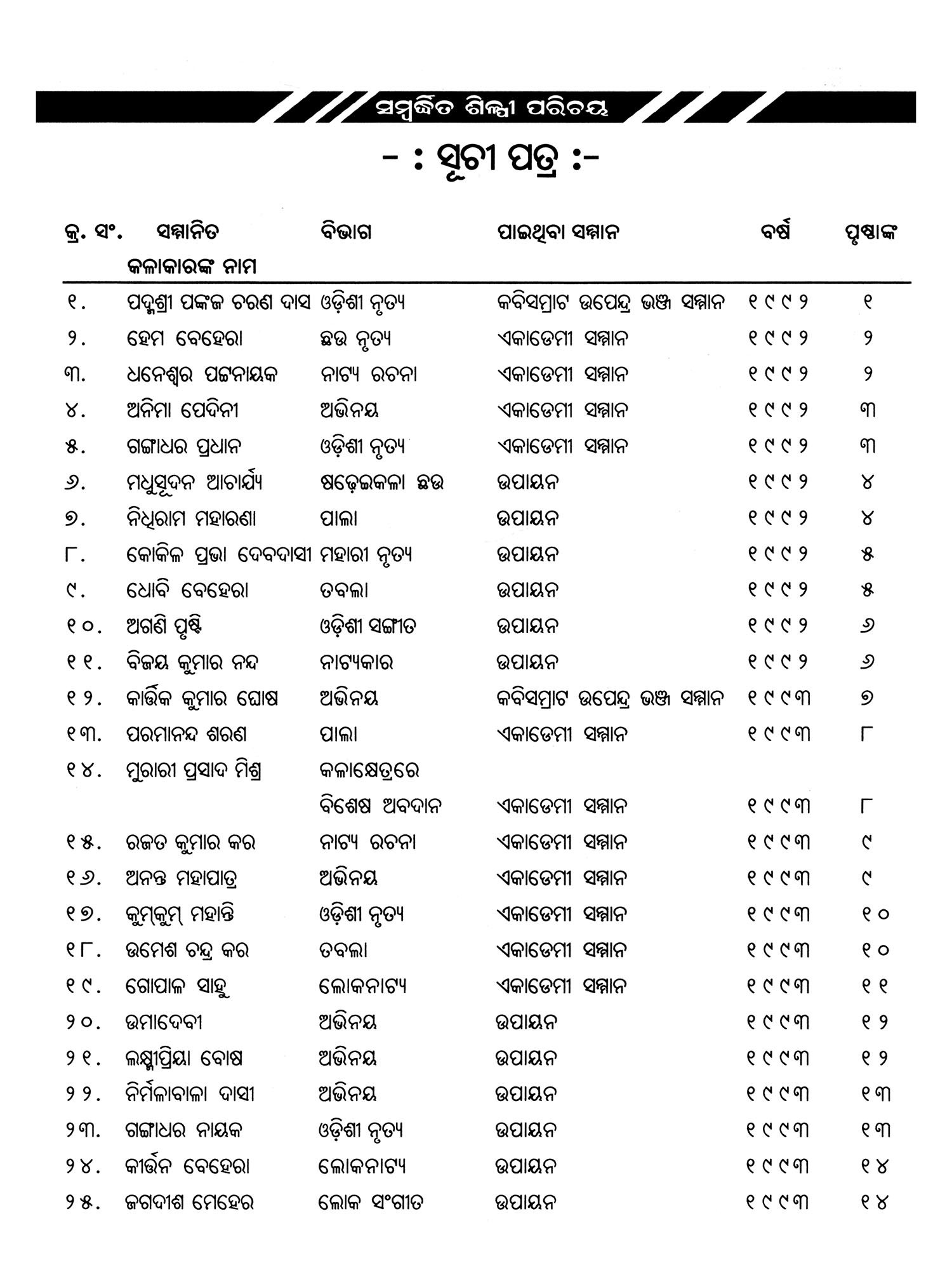 ସସ୍ପର୍ଷିତ ଶିଳ୍ପୀ ପରିଚୟ- Life Sketch of the Awarded Artistes (An Old and Rare Book)