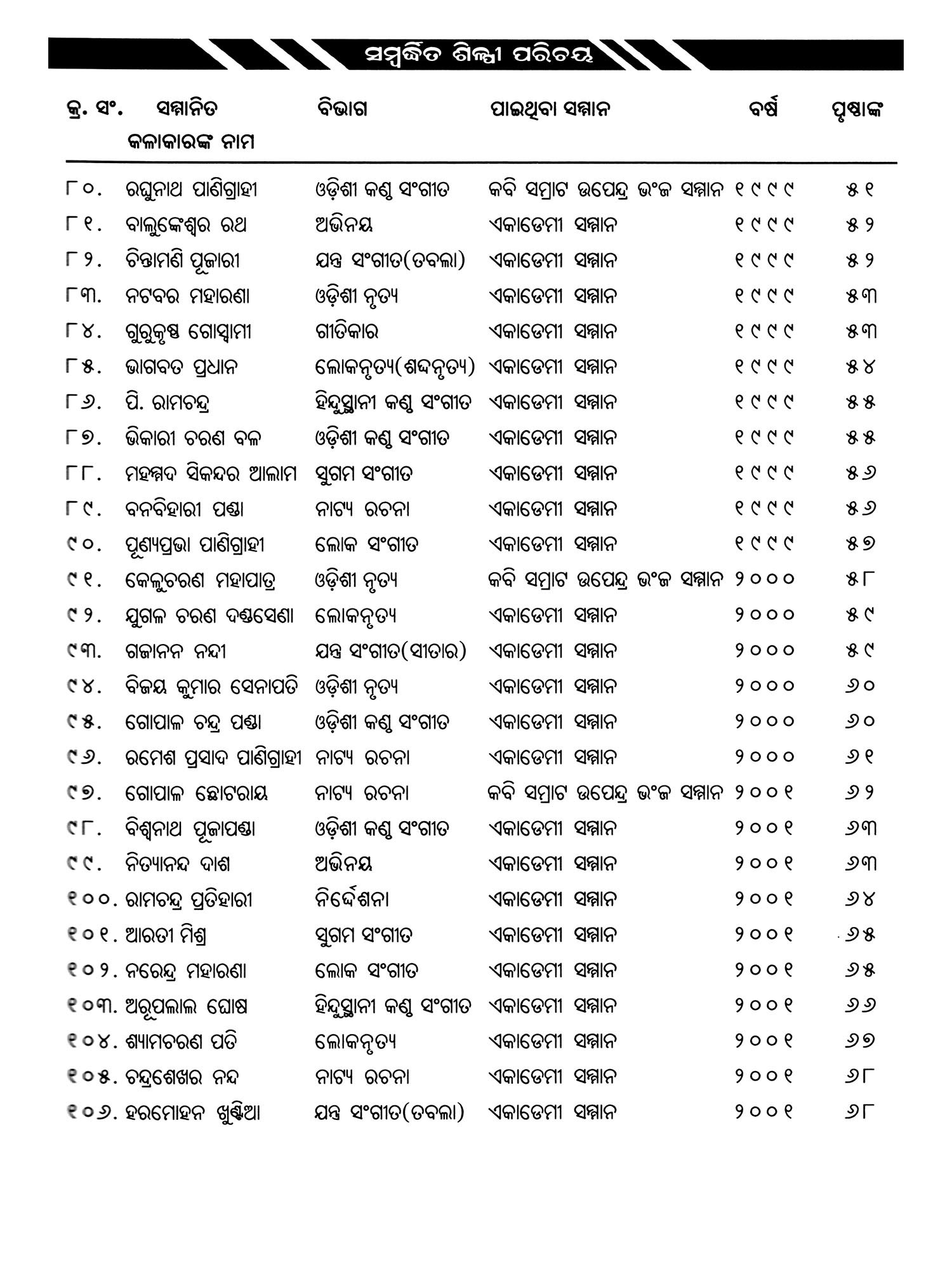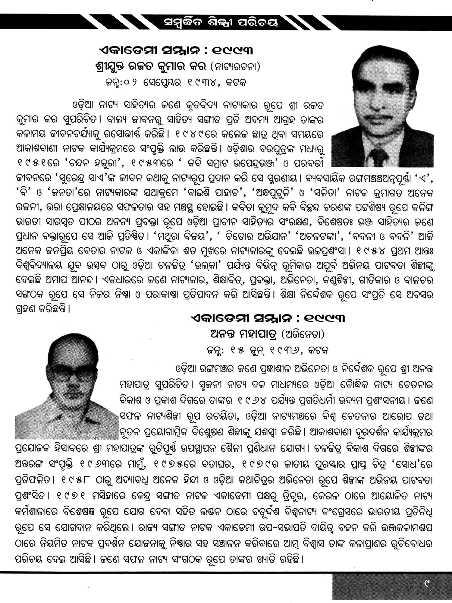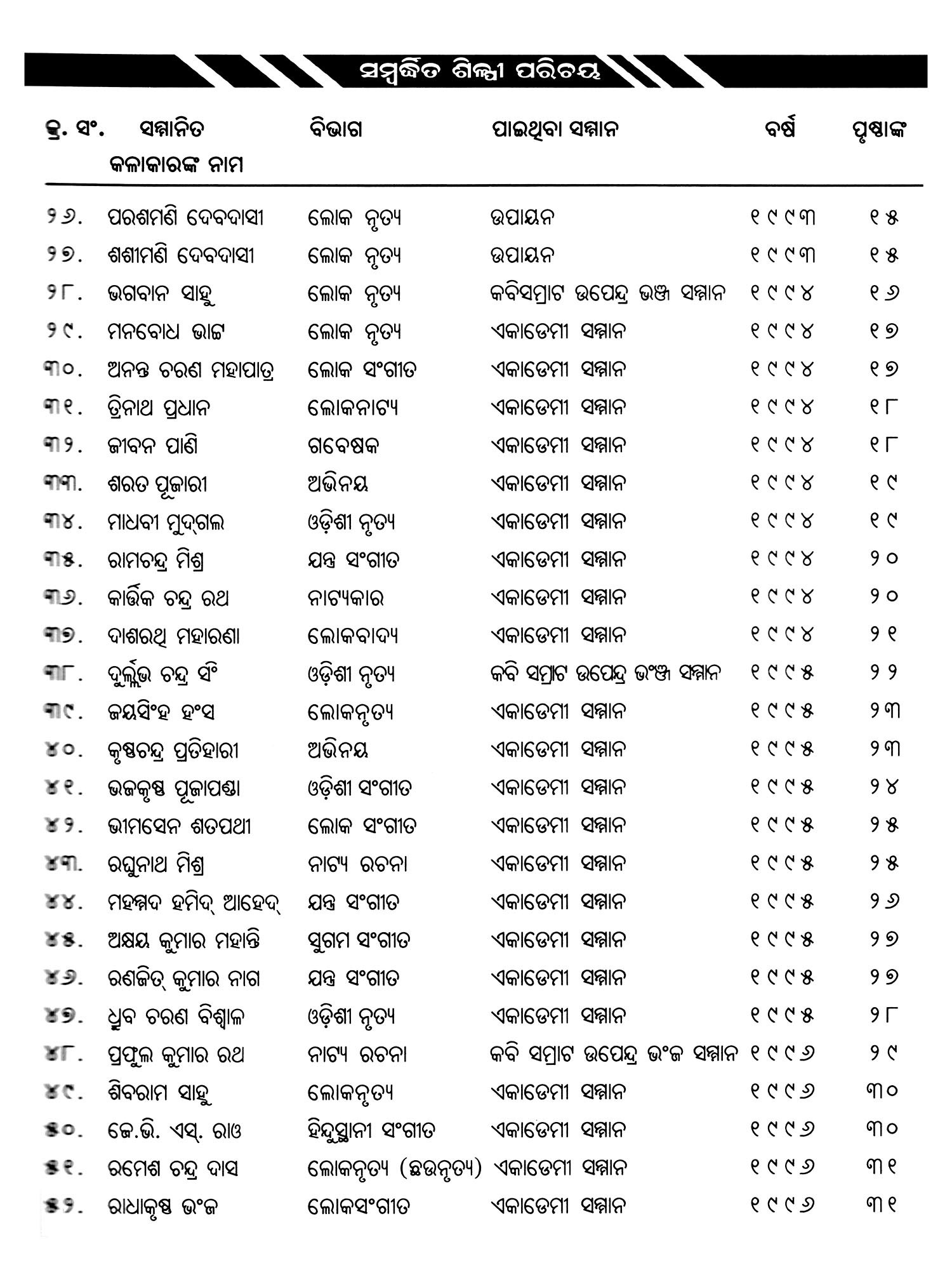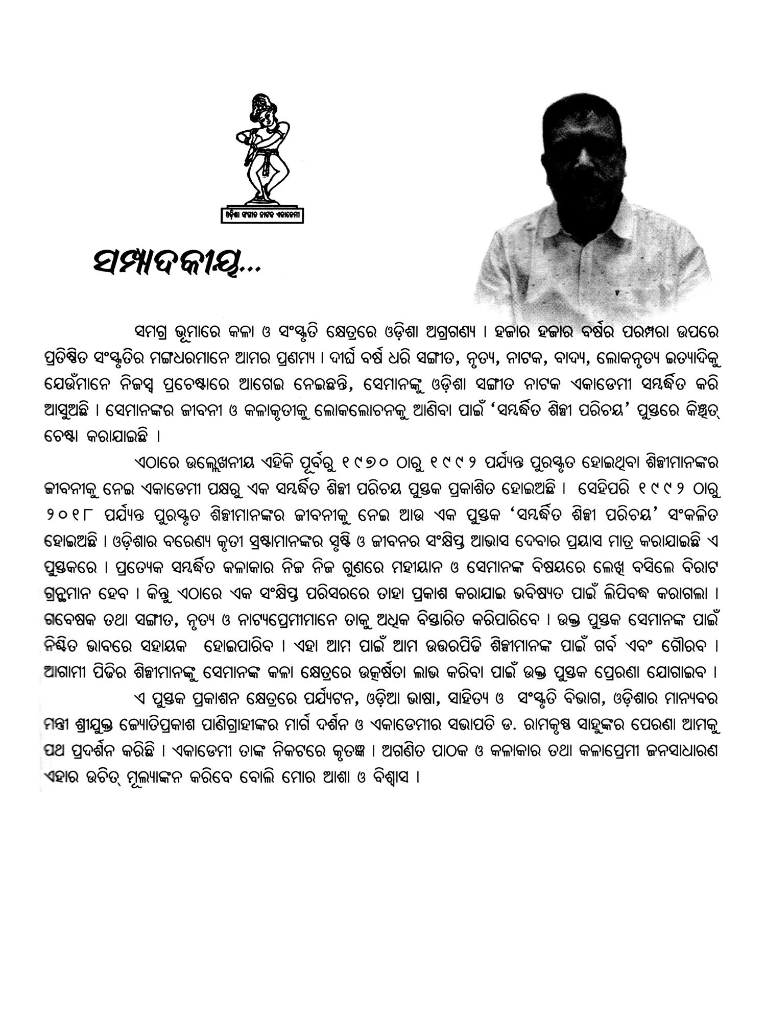 ସସ୍ପର୍ଷିତ ଶିଳ୍ପୀ ପରିଚୟ- Life Sketch of the Awarded Artistes (An Old and Rare Book)