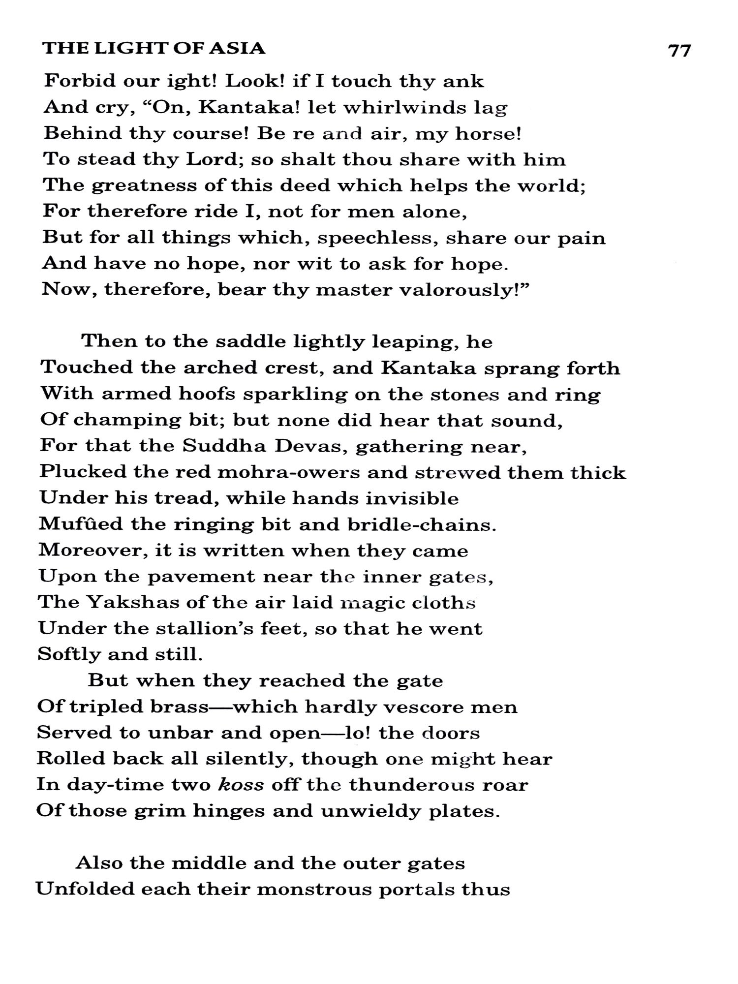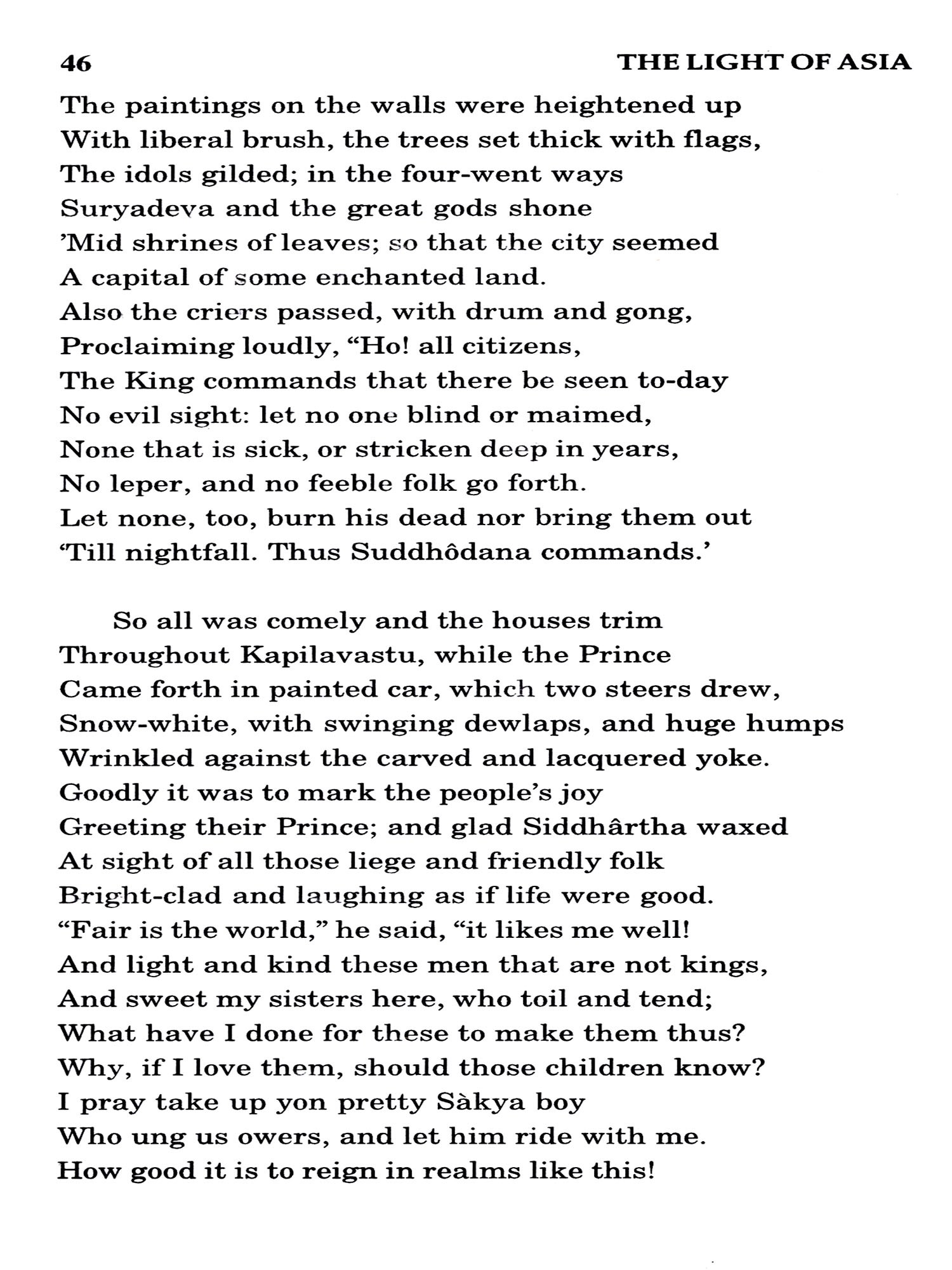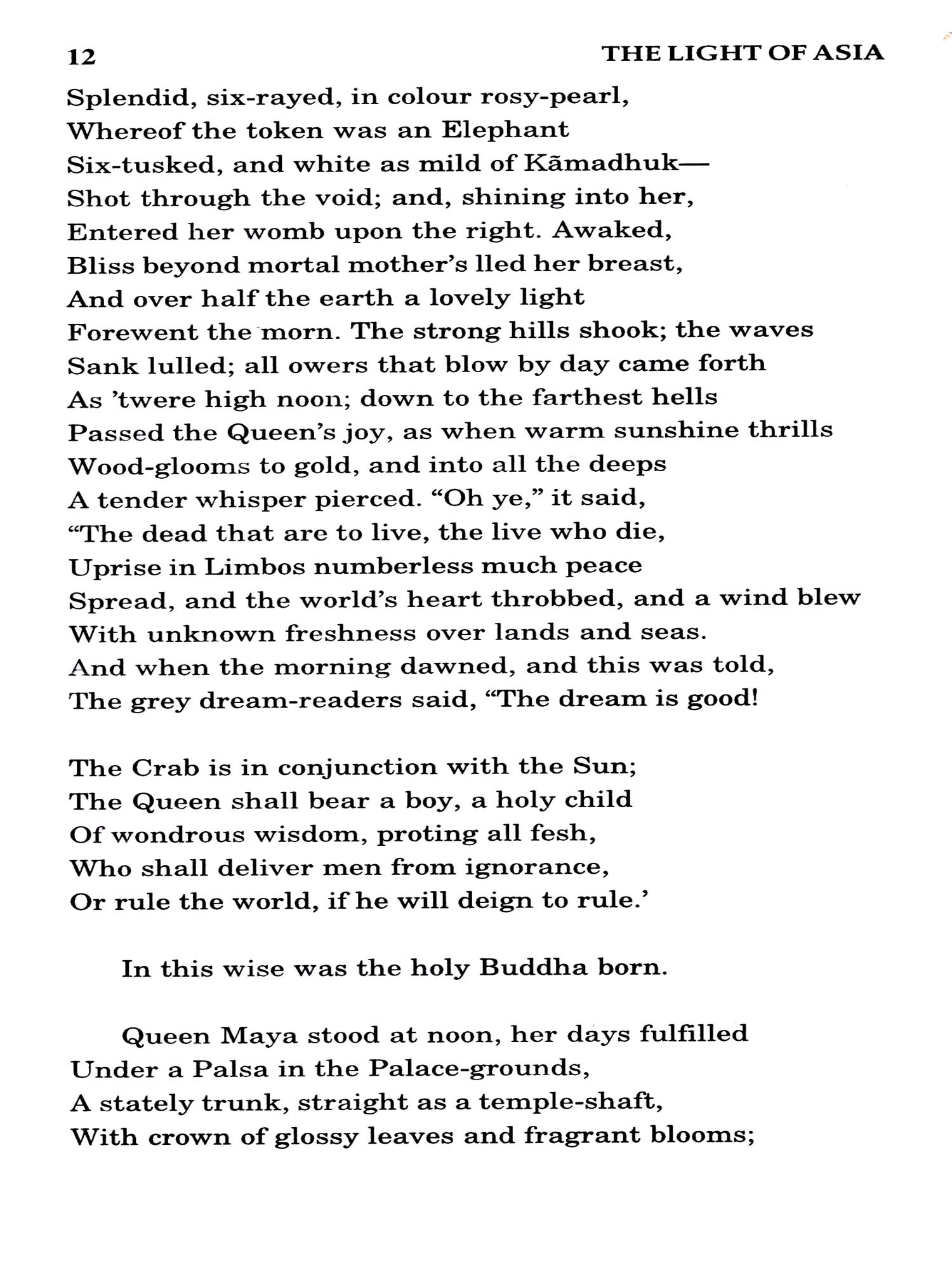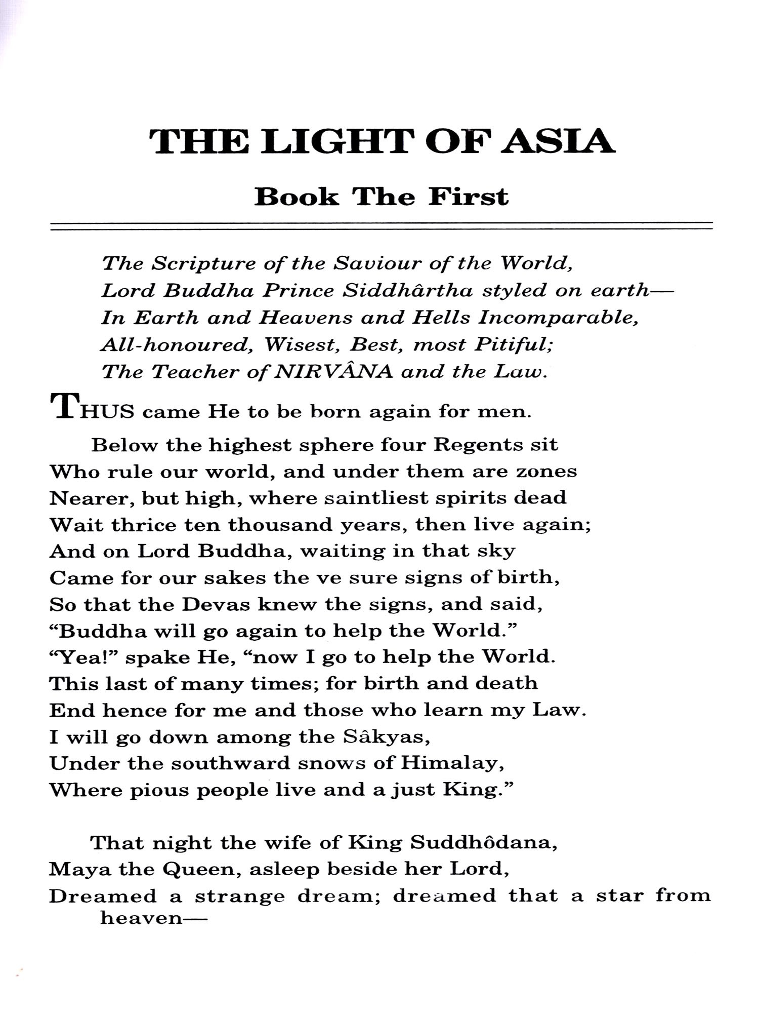 In the following Poem I have sought, by the medium of an imaginary Buddhist votary, to depict the life and character and indicate the philosophy of that noble hero and reformer, Prince Gautama of India, the founder of Buddhism.