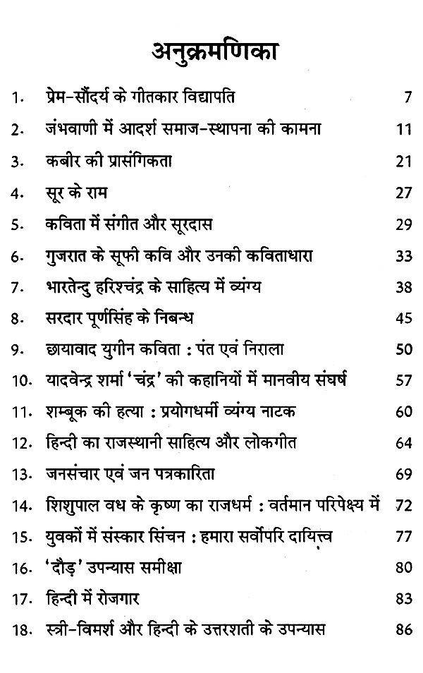 इन अलेखों में मध्यकालीन एवं आधुनिक कविर्यो-गद्यकारों से संबंधित रचनाएँ है। पत्रकारिता, युवा संस्कार सिंचन 'शिशुपाल वध में कृष्ण का राजधर्म-वर्तमान परिप्रेक्ष्य' में जैसे अन्य विषयों पर भी कुछ आलेख है। इन आलेखों पर अंतर्दृष्टिपात करने से ज्ञात होता है कि वर्तमान वैश्विक आवश्यकता है 'कला जीवन के लिये' की सार्थकता साहित्य का अनिवार्य तत्त्व है। ये आलेख ऐसे ही मानवीय मूल्यों के सकारात्मक प्रवाह को आगे बढ़ाते प्रतीत होते हैं।