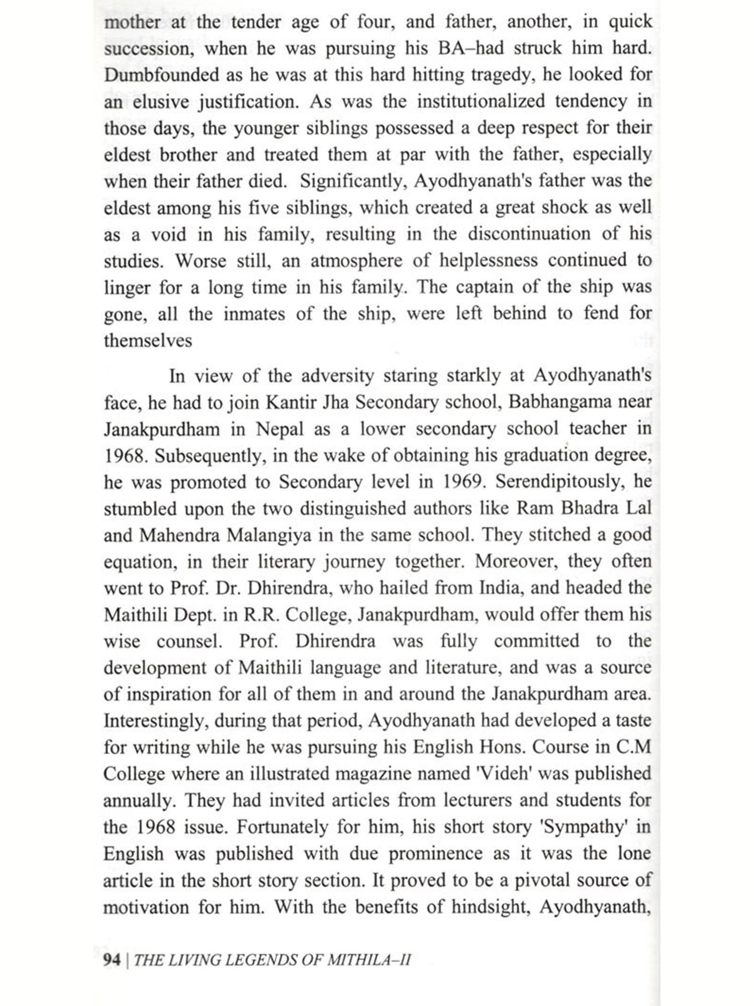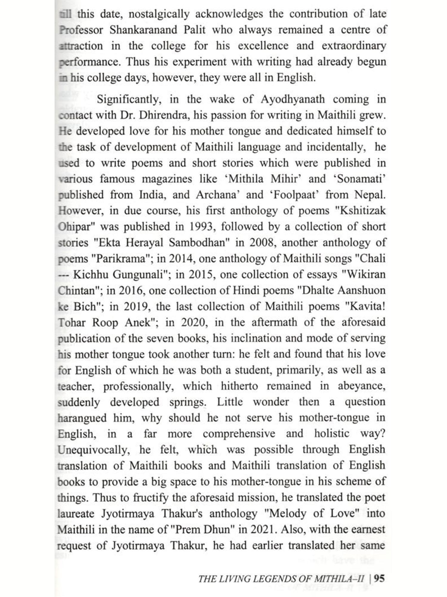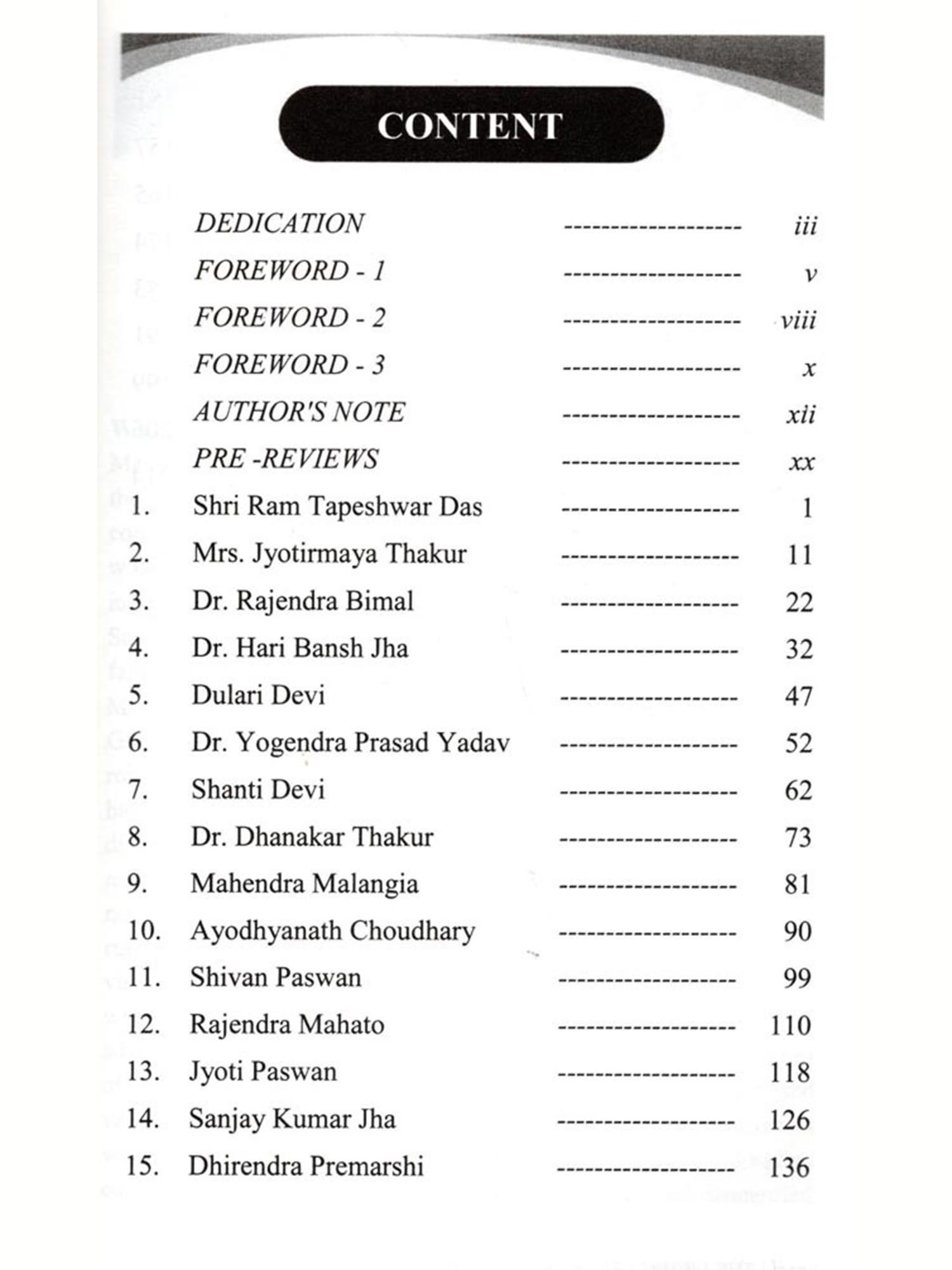 The scholarly and professional author Vivekananda Jha in his trilogy of the living legends of Mithila has achieved a milestone in his discovery of the immense talents and dexterity of Maithils around the globe.