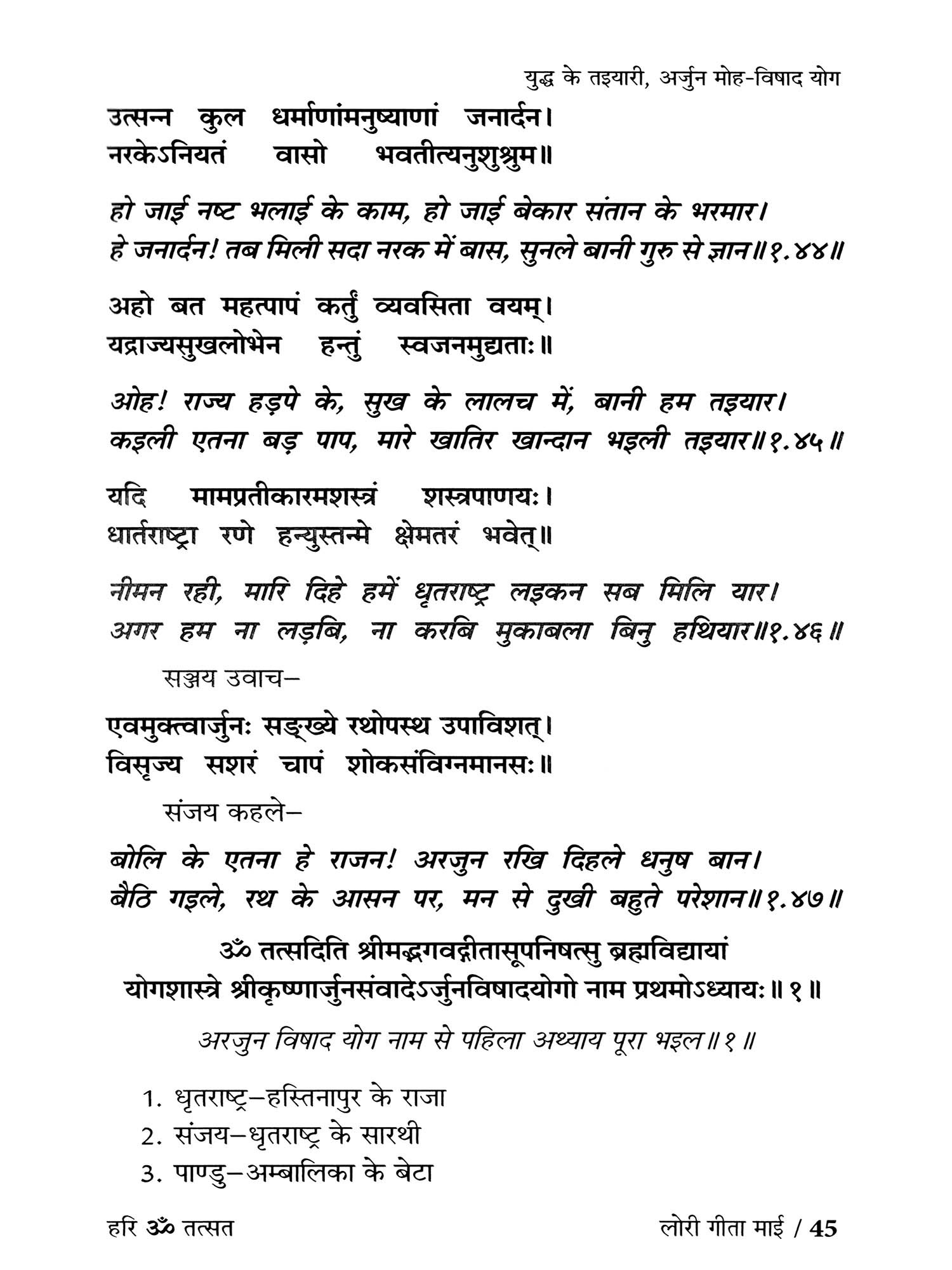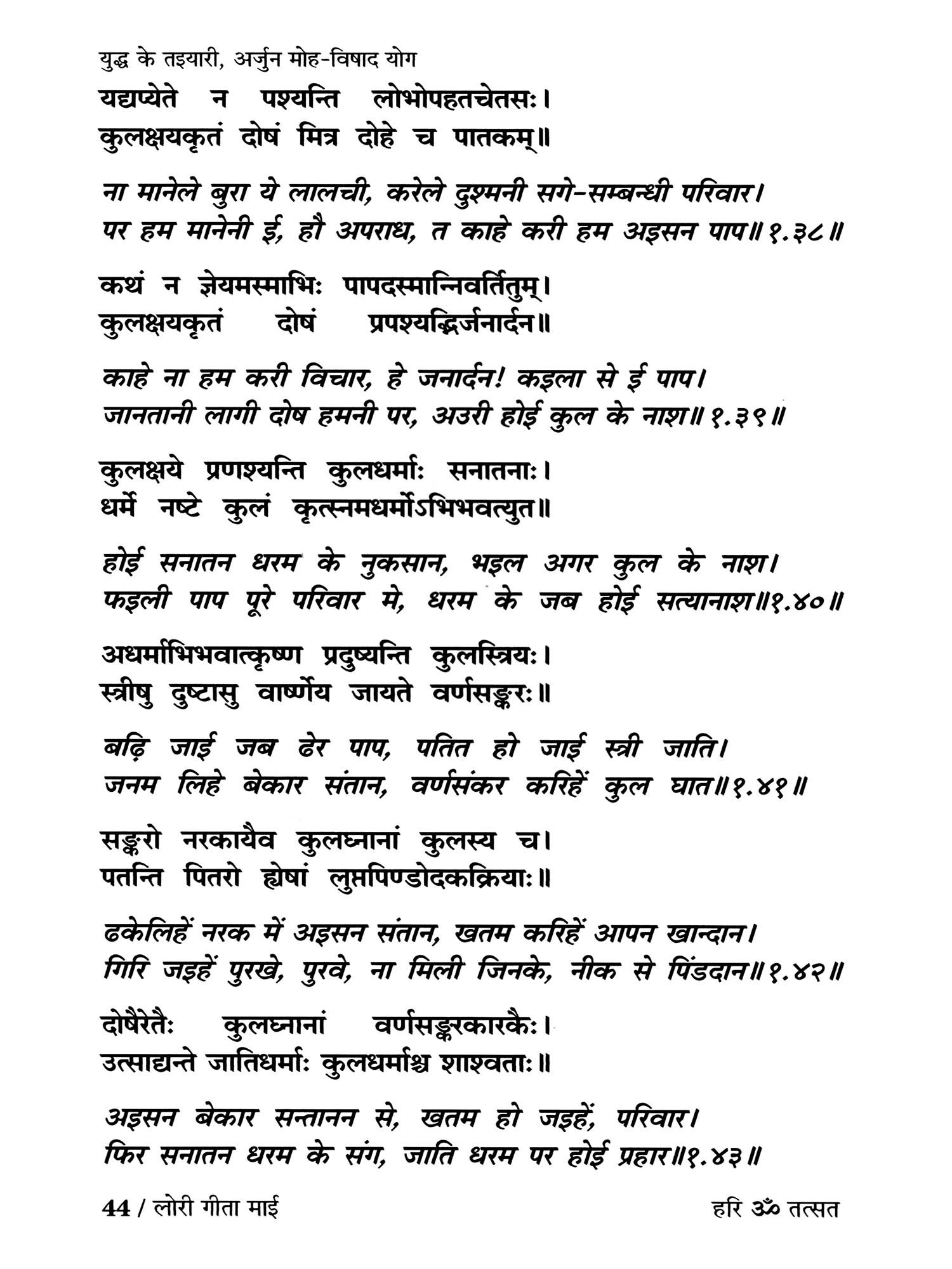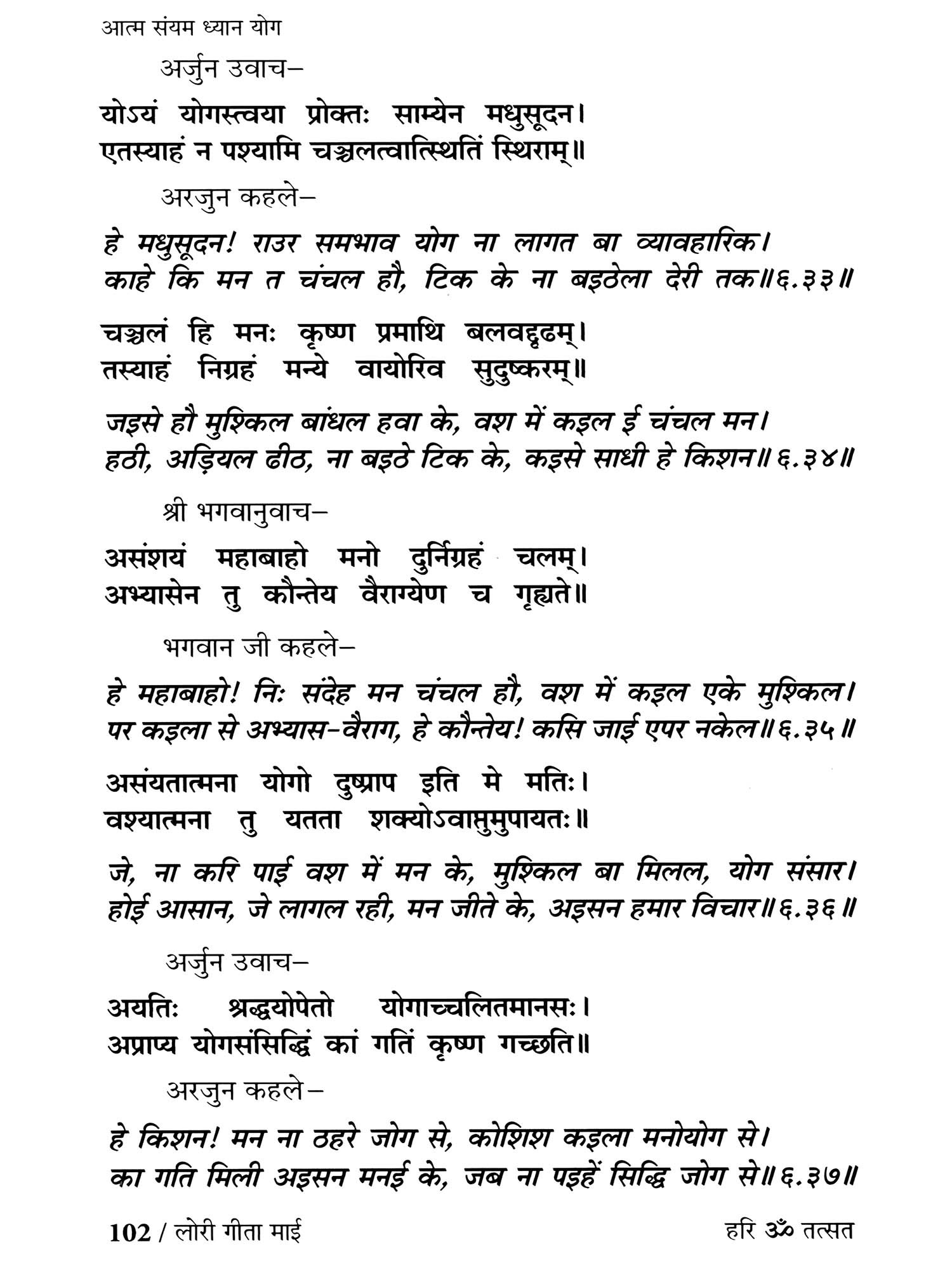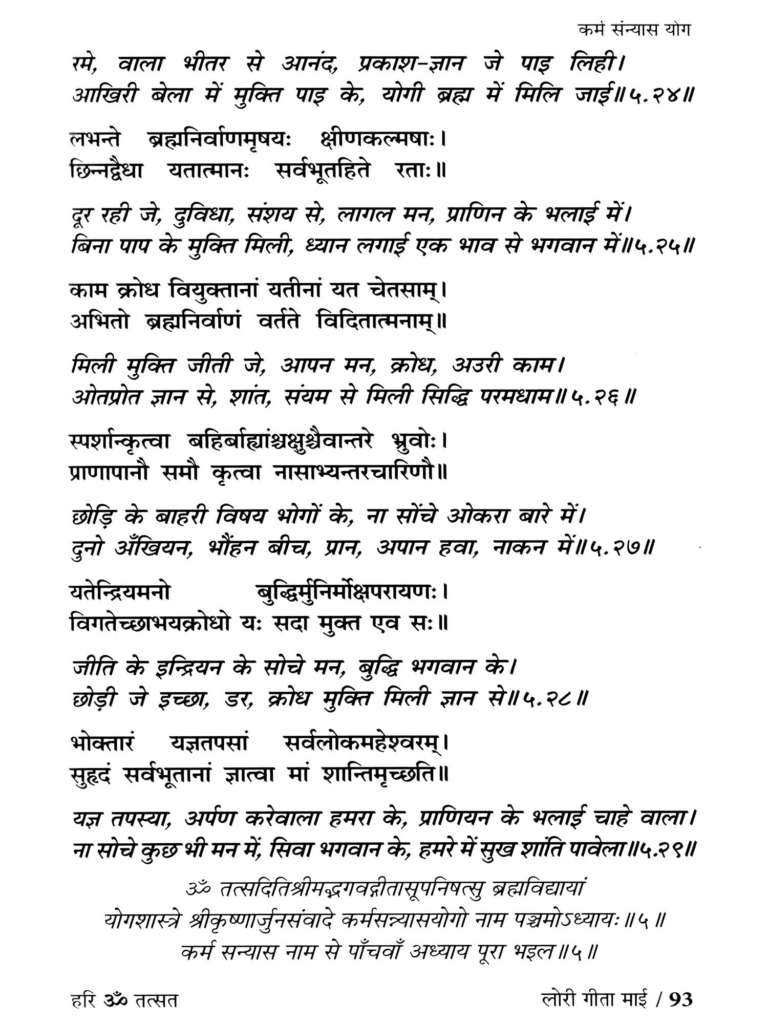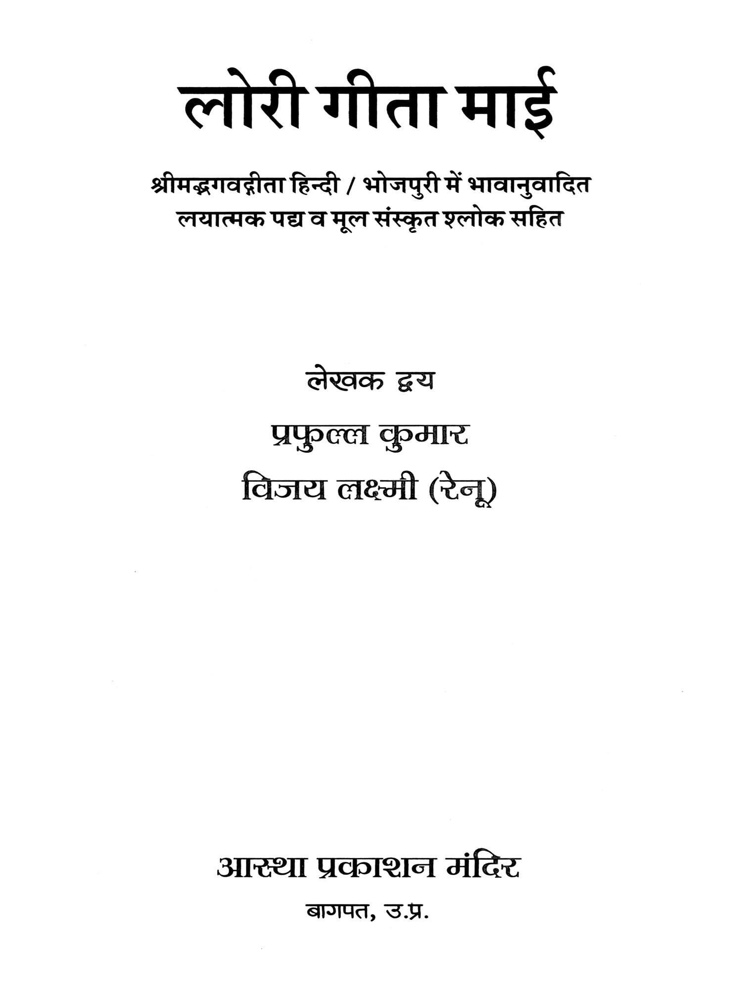 लोरी गीता माई- Lori Geeta Mai (The Bhagavad Gita Translated into Hindi/Bhojpuri with Original Sanskrit Verses)