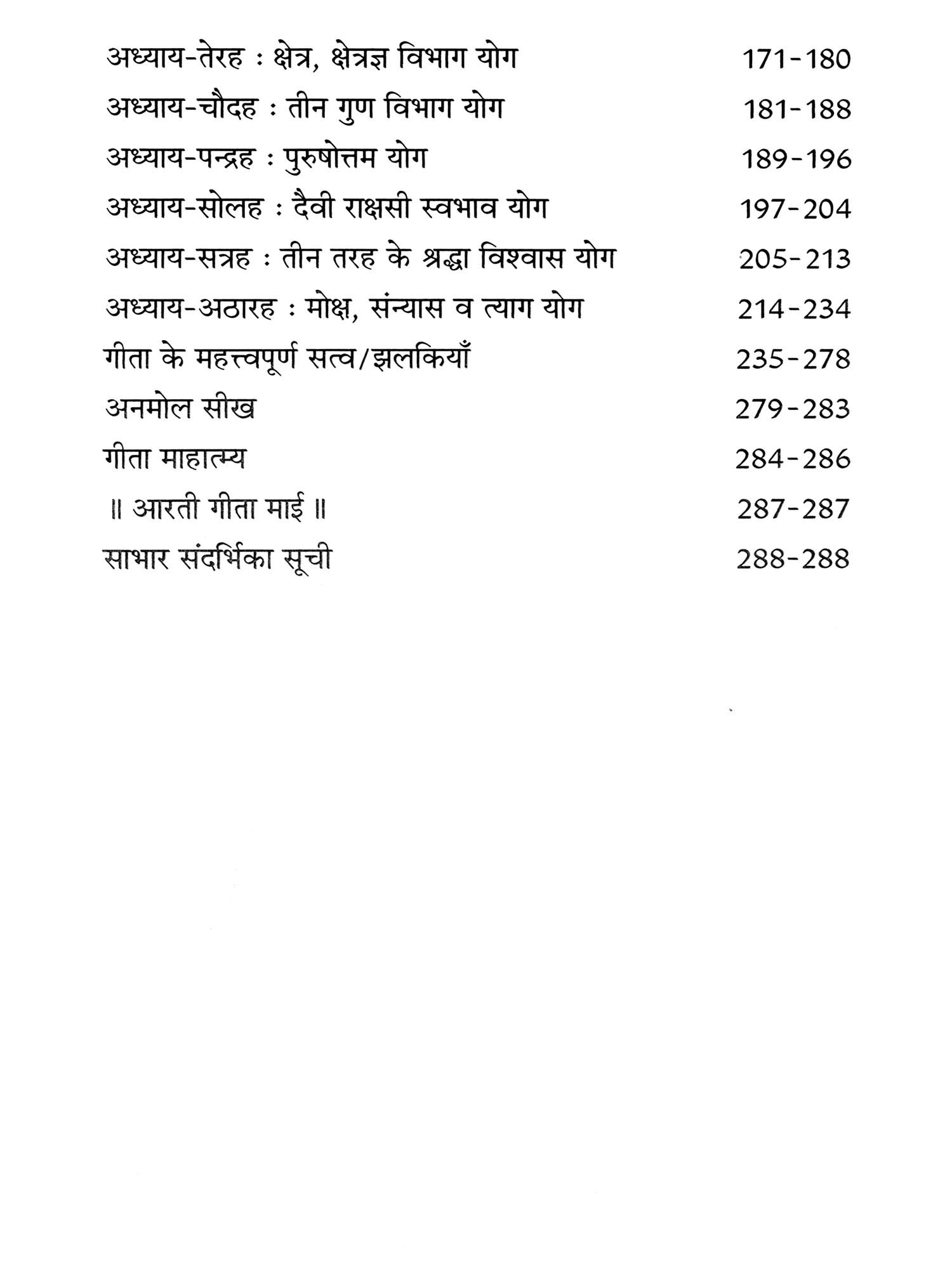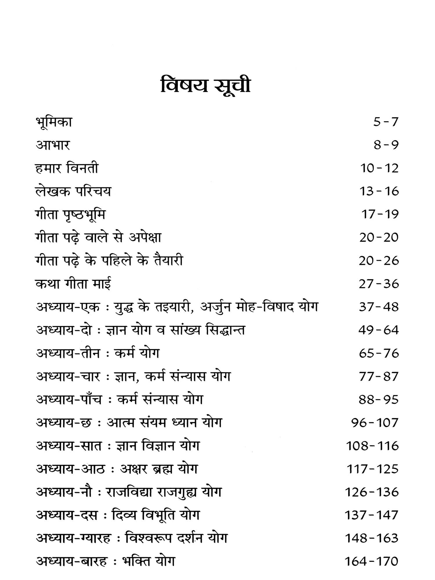 हम दोनों ने गीता को भोजपुरी भाषा में भावानुवादित कर, उसका सार भाव अध्याय के अंत में लिखने का भरसक प्रयास किया है। अक्षरशः अनुवाद के बजाय श्लोक के भाव को भोजपुरी लोरी, गाना के रूप में सरल और आम बोलचाल के शब्दों का प्रयोग किया है, ताकि संस्कृत या खड़ी बोली में हिन्दी के कठिन शब्दों के भंवर में जन सामान्य पाठक न फँसे। हिन्दी में अनुवादित कई रचनाएँ सुलभ हैं पर हिन्दी के भी क्लिष्ट शब्दों व भावों से इसका अध्ययन व पाठन एक विशिष्ट उच्च शिक्षित वर्ग ही कर पाता है। अभी भी भारतीय जनमानस गीता ग्रंथ को, भाषा की दुरूहता के कारण अपने दिनचर्या में उपयोग नहीं कर पाता। गीता पूर्ण रूप से गूढ़ रहस्य से भरा है, जिसमें योग शास्त्र, ज्ञान, कर्म, भक्ति, ध्यान के समन्वय के साथ ईश्वर से साक्षात्कार के रास्ते बताये गये हैं। गृहस्थ जीवन के धर्म का निर्वाह करते हुए ब्राह्मी स्थिति कैसे पा सकते हैं, वर्णित अठारह अध्यायों के लगभग सात सौ श्लोकों में विस्तार से बताया गया है।