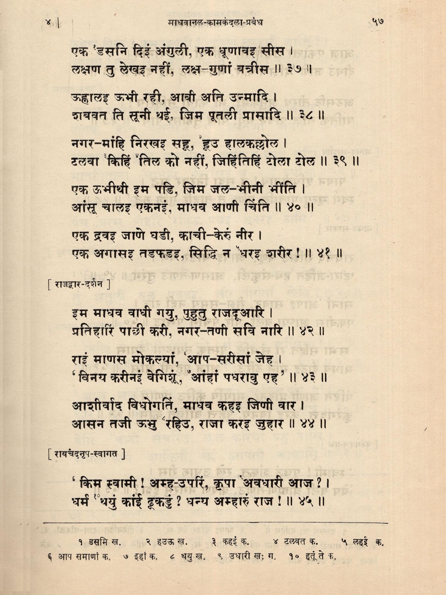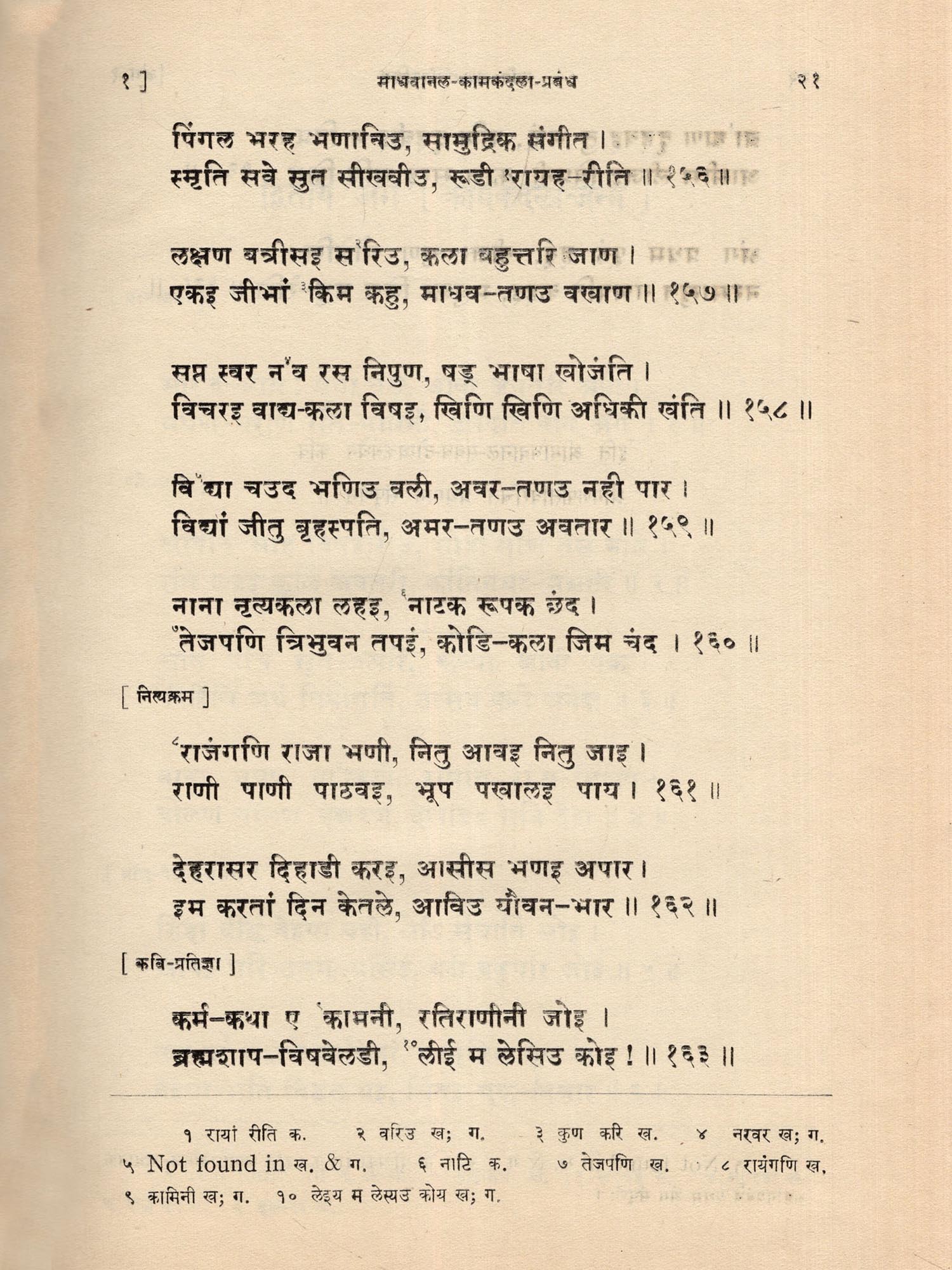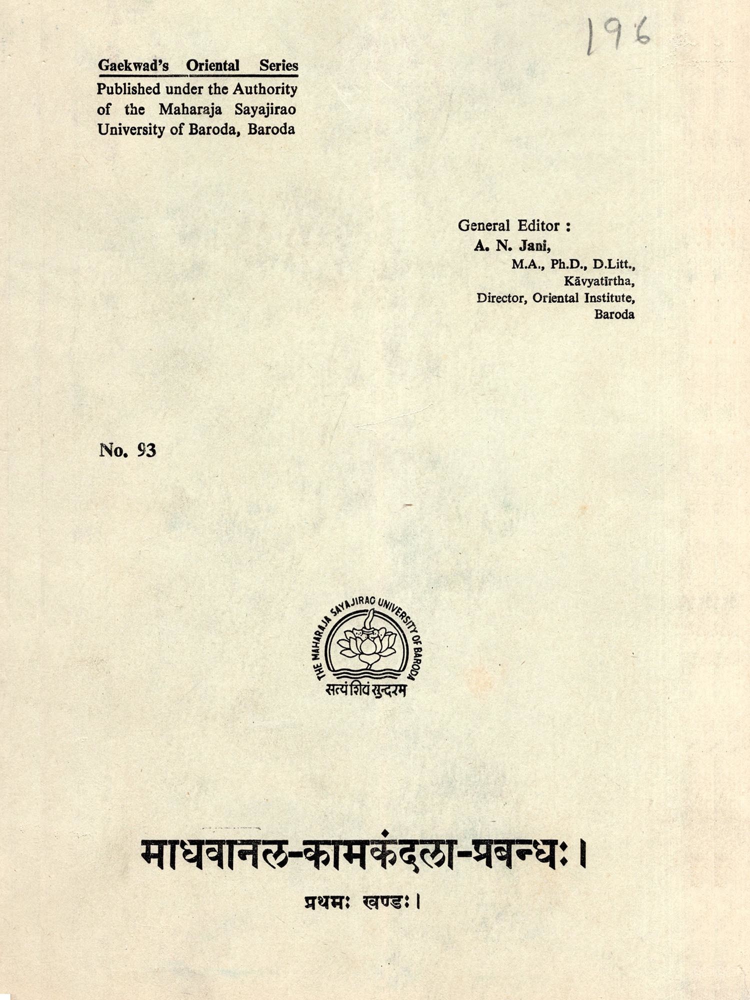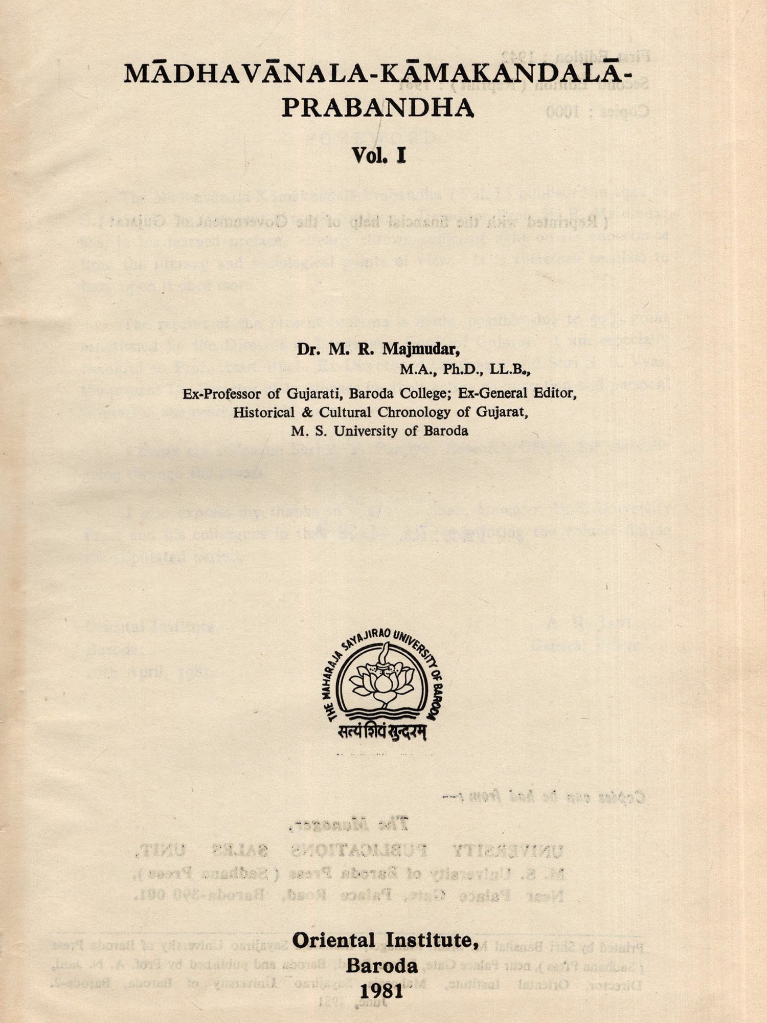 The Madhavanala-Kamakandala-Prabandha (Vol. I) published in 1942 as G. O. S. No. 93, was out of stock for long. Its editor Prof. M. R. Majumdar has, in his learned preface, already thrown sufficient light on its importance from the literary and sociological points of view. It is therefore needless to harp upon it once more.