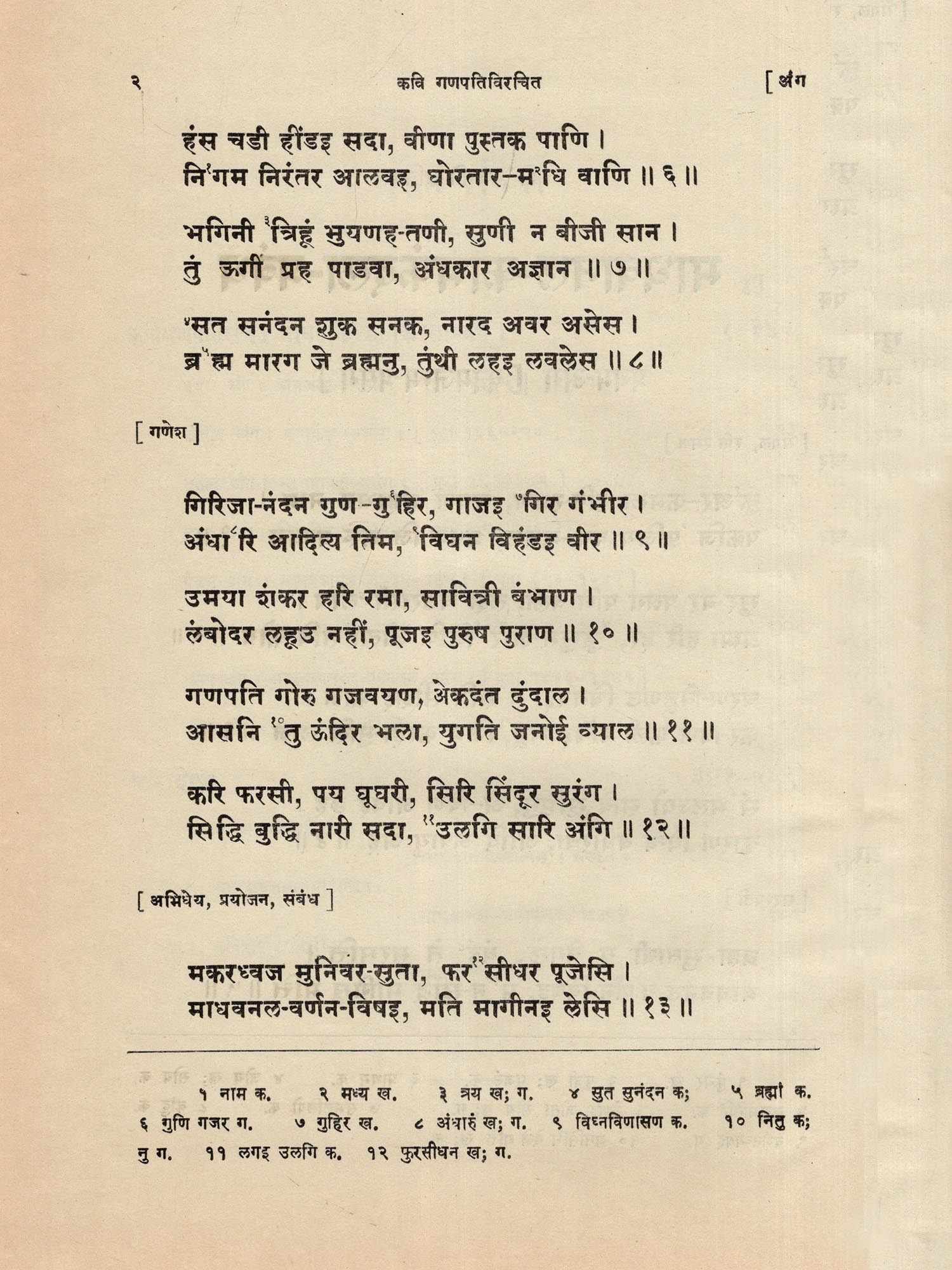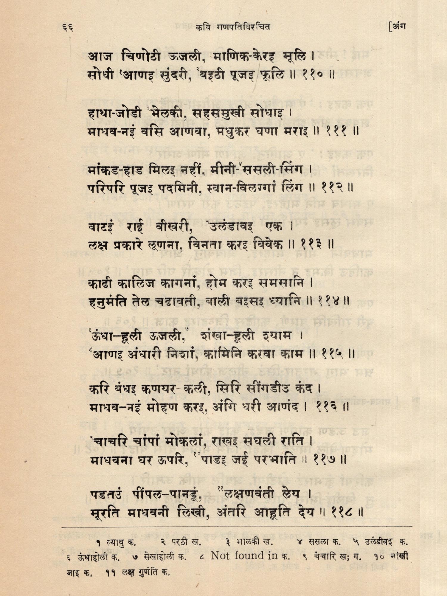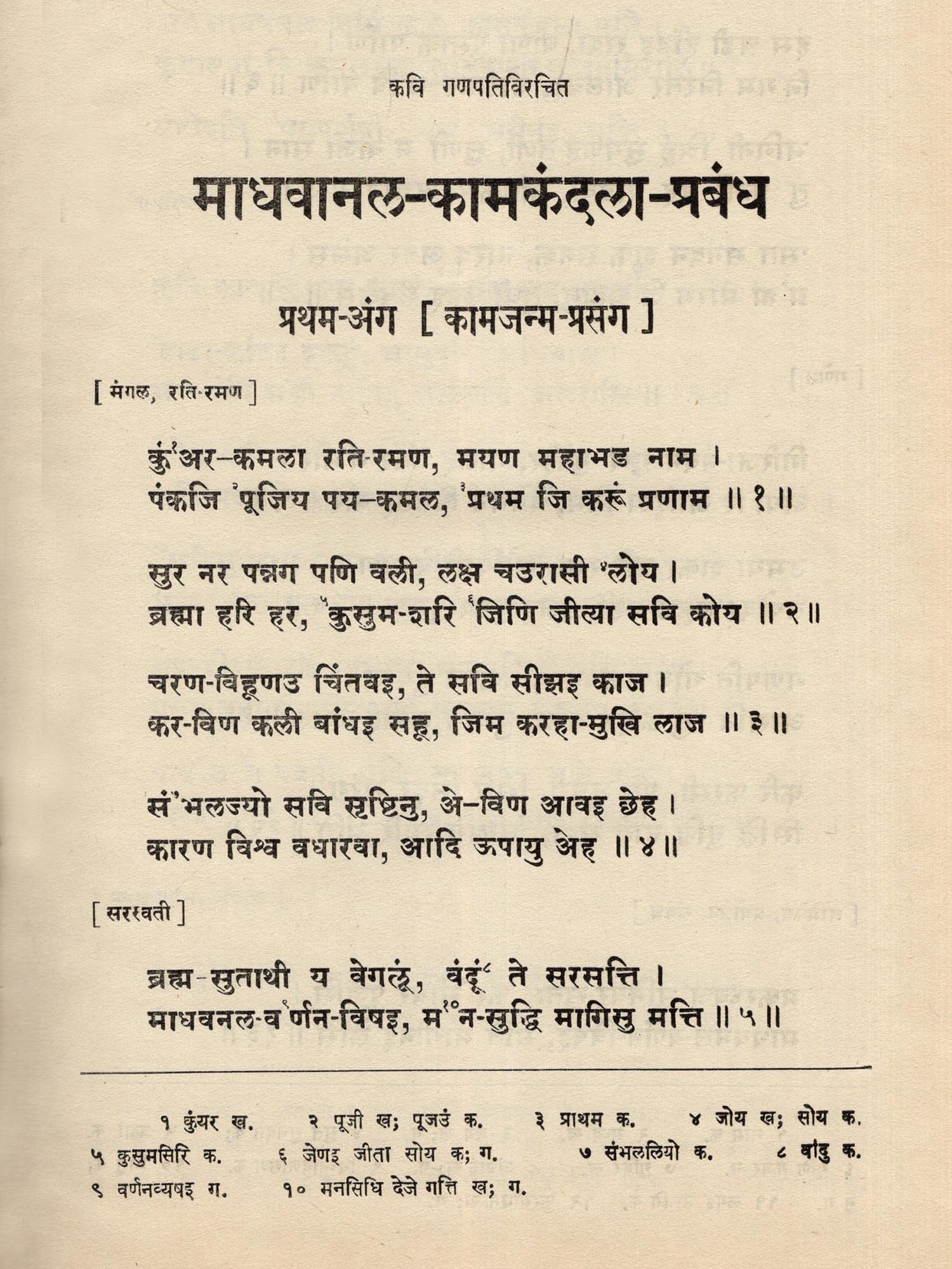 The tale of Madhavanala-Kamakandala-Prabandha, is a tale linked up to the Vikrama-cycle stories of wild, romantic love which fascinated Gujarata, which is possibly the land which fostered its growth from small beginnings in a Sanskrit prose-version intermixed with occasional verses partly with a direct beating on the text, and partly in the form of quotations from other anthologies. The performance of Ganapati is unique in medieval Indian vernacular literature of the early 16th century as a composition designed on the canons of a Sanskrit mahakavya, expressed in the current style of Prakrit and Apabhramsa Prabandhas.