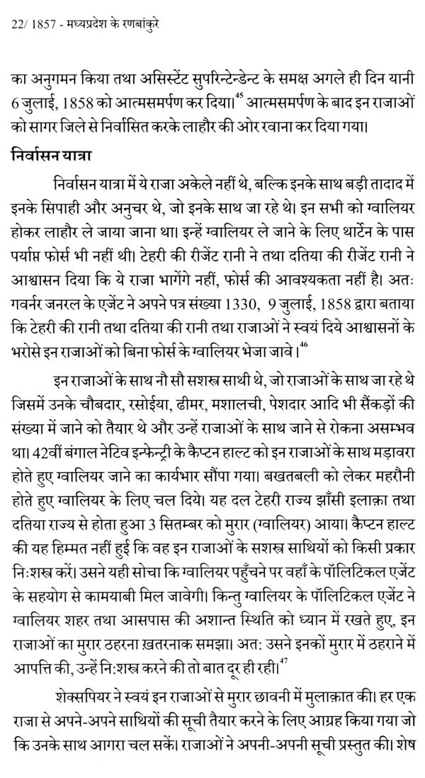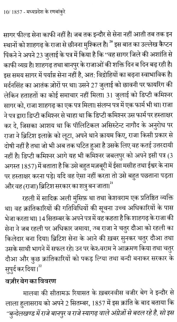 परंतु स्वाधीनता की आकांक्षा सदैव सर्वोपरि रही। मध्यप्रदेश के लगभग सभी क्षेत्रों में अंग्रेजों के शासन के प्रति संघर्ष और प्रतिरोध की भावना परिलक्षित हुई। प्रस्तुत पुस्तक '1857-मध्यप्रदेश के रणबाँकुरे' में विद्वान लेखकद्वय श्री भगवानदास श्रीवास्तव एवं डॉ सुरेश मिश्र ने 1857 की क्रान्ति के ऐसे ही ज्ञात तथा अल्पज्ञात नायकों के व्यक्तित्व तथा कृतित्व को रेखांकित करने का प्रयास किया है। यह पुस्तक मध्यप्रदेश मे ब्रिटिश शासन के घातक प्रभावों तथा विभिन्न क्षेत्रों मे क्रान्ति के कारकों तथा उनकी प्रतिक्रियाओं को लेखबद्ध करती है। मध्यप्रदेश के ऐसे अनेकानेक रणबांकुरों ने इस संघर्ष मे शस्त्र उठाए। इनमे कई सत्ता सम्पन्न राजा और ऐसे ही पदाधिकारी थे तो दूसरी ओर सुदूर वन क्षेत्रों के जनजातीय नायक भी थे, जो अपनी सहज प्रज्ञा और मेधा से ब्रिटिश शासन के विनाशकारी प्रभावों को समझने मे पूर्णतः सक्षम थे। इनके प्रतिरोध की कार्यविधि मे उनकी क्षेत्रीय भिन्नताओं तथा उनकी परिस्थितियों के अनुरूप अंतर था, परंतु उद्देश्य की समानता थी। यह पुस्तक मध्यप्रदेश के सभी क्षेत्रों के ऐसे ज्ञात अल्पज्ञात क्रांतिकारियों के बारे मे मूल्यवान जानकारी उपलब्ध कराती है। यह पुस्तक हमें अपने स्वाधीनता आंदोलन के आदर्शों तथा इसके लिए प्राणों की आहुति देने वाली हुतात्माओं का स्मरण करने का अवसर प्रदान करती है जिनके बलिदान से हमे स्वतंत्रता प्राप्त हुई।
