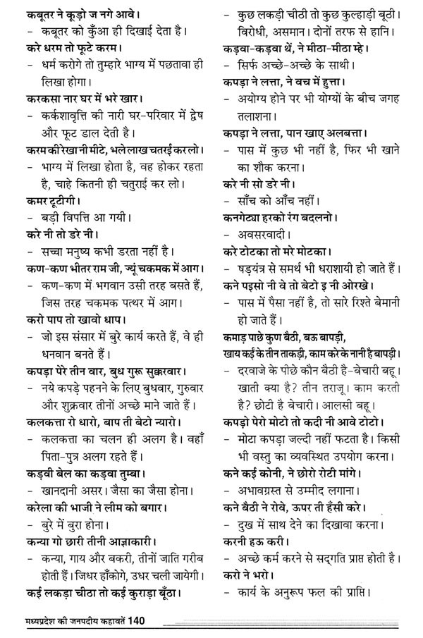 मध्यप्रदेश की जनपदीय कहावतें- Madhya Pradesh Ki Janpadiya Kahawaten