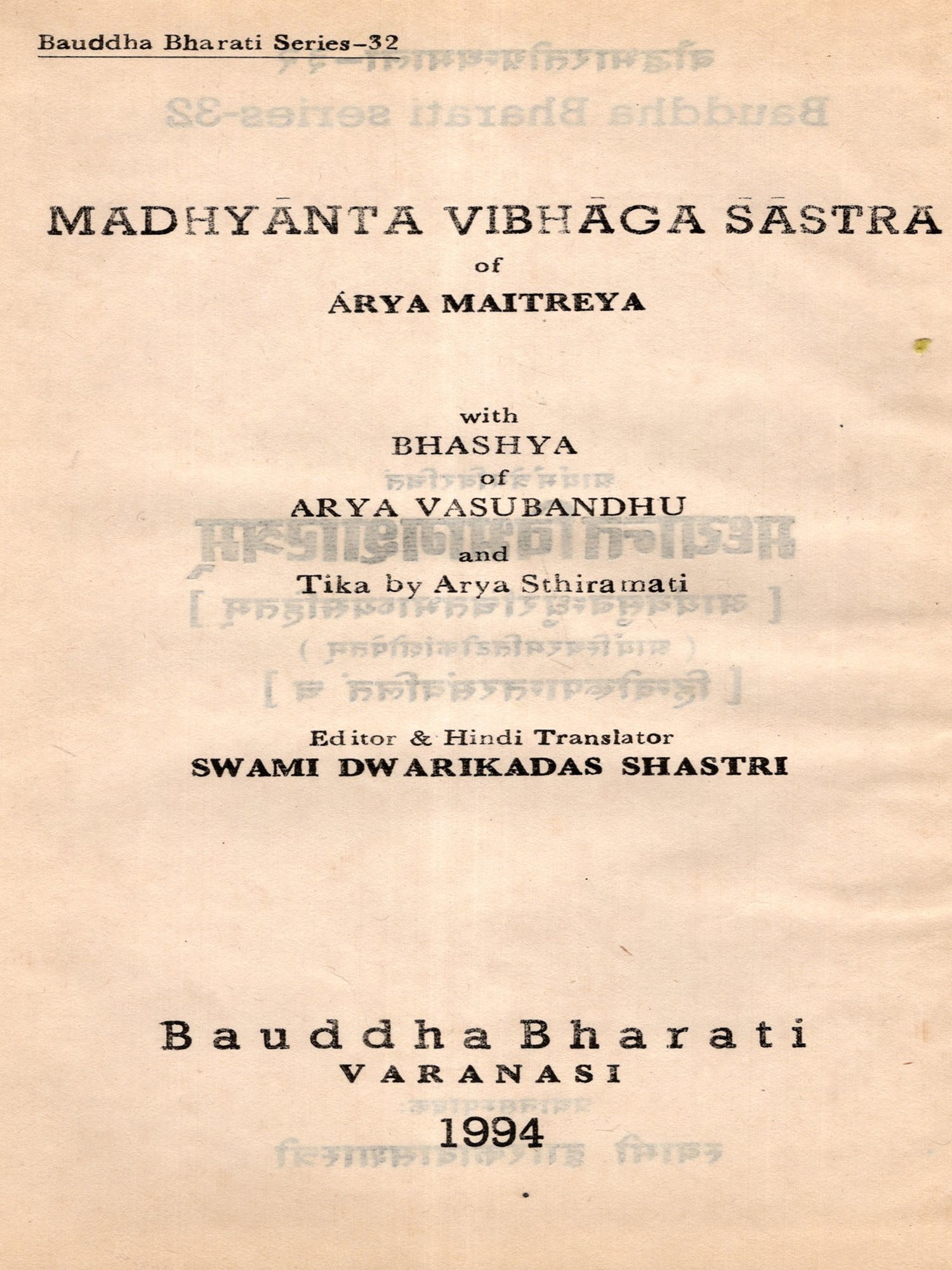 मध्यान्त विभागशास्त्रम्: Madhyanta Vibhaga Sastra of Arya Maitreya with Bhashya of Arya Vasubandhu Tika by Arya Sthiramati (An Old and Rare Book)