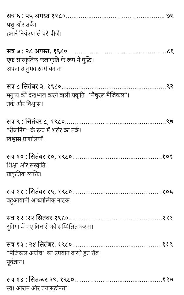१९८० की गर्मियों में लगभग दो महीनों के लिए मैंने सेथ के सत्र नहीं किए। मैं अपनी स्वयं की किताबों में से एक, "दि गॉड ऑफ जेन" पर काम समाप्त कर रही थी। रॉब सेथ की "दि इंडिविजुअल एण्ड दि नेचर ऑफ मास इवेंट्स" को प्रकाशन के लिए तैयार कर रहे थे। हम दोनों बाकी लोगों की तरह ही उन घटनाओं में लिप्त थे जो कि अधिकांश अन्य लोग उस जून और जुलाई के दौरान थे - सामान्य से अधिक गर्म रातें और दिन, न्यूयॉर्क राज्य के कुछ हिस्सों में सूखा होना, जिसने हमारे क्षेत्र को भी हल्के से छुआ, टीवी समाचार और राजनीतिक दलों के तर्क, उनके सम्मेलनों की योजना आदि। कुछ रातों में, हमारे घर के पीछे वाले छोटे से जंगल में गाने वाले कीड़े हमारे टेलीविजन सेट की आवाज से भी तेज हुआ करते थे। वही गर्मी जिसने मुझे निराशा से कराहने पर मजबूर कर दिया, उसने रॉब को किसी दक्षिण-समुद्री द्वीप के मूल निवासी के एक संस्करण में बदल दिया। वह अपने डेनिम शॉर्ट्स में बेहद रूपवान लगते थे; उनके लंबे बाल किसी प्राकृतिक पेंच की तरह मुड़े हुए थे, उनके शरीर का हल्का ढांचा गर्मी का आनंद लेता था, जबकि मेरे शरीर का हल्का ढांचा स्पंज में बदल जाता था जो मुझमें मानो दस किलो थकान बढ़ा देता था।