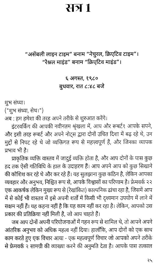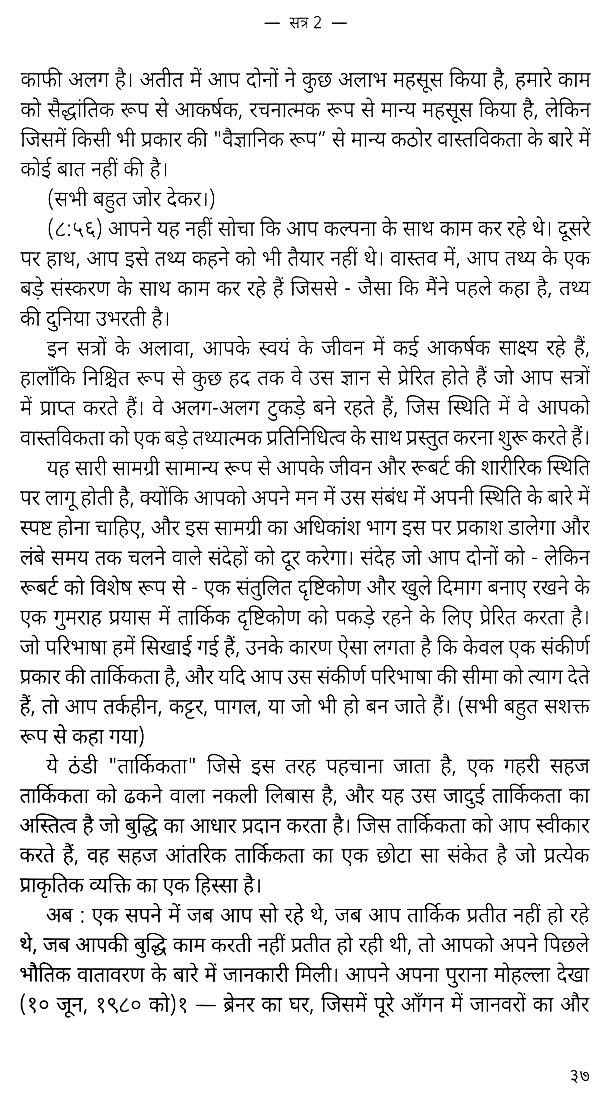 सप्ताह में दो बार जब शाम आती है (जैसा कि मेरे अधिकांश पाठक जानते हैं) जबकि हमारे पड़ोसी फिल्म देखने जाते हैं, या शॉपिंग प्लाजा जाते हैं, या सिर्फ टीवी देखने में व्यस्त होते हैं, मैं एक ट्रान्स१ में जाती हूँ, सेथ "बन जाती हूँ", और एक तरह का दूसरा जीवन, या जीवन के भीतर एक जीवन लेती हूँ। वास्तव में, सत्र आमतौर पर एक से तीन घंटे तक चलते हैं, इसलिए मुझे लगता है कि बहुत से लोग गोल्फ या टेनिस खेलने की तुलना में इससे अधिक समय व्यतीत करते हैं।