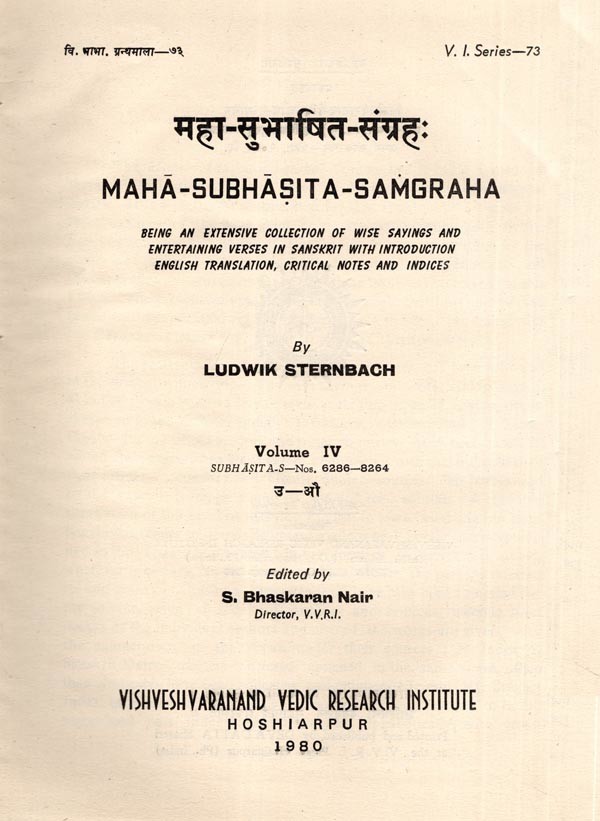 महा-सुभाषित-संग्रह:- Maha Subhasita Samgraha: The Most Comprehensive Collection of Sanskrit Quotations Ever (Volume 6, An Old and Rare Book)