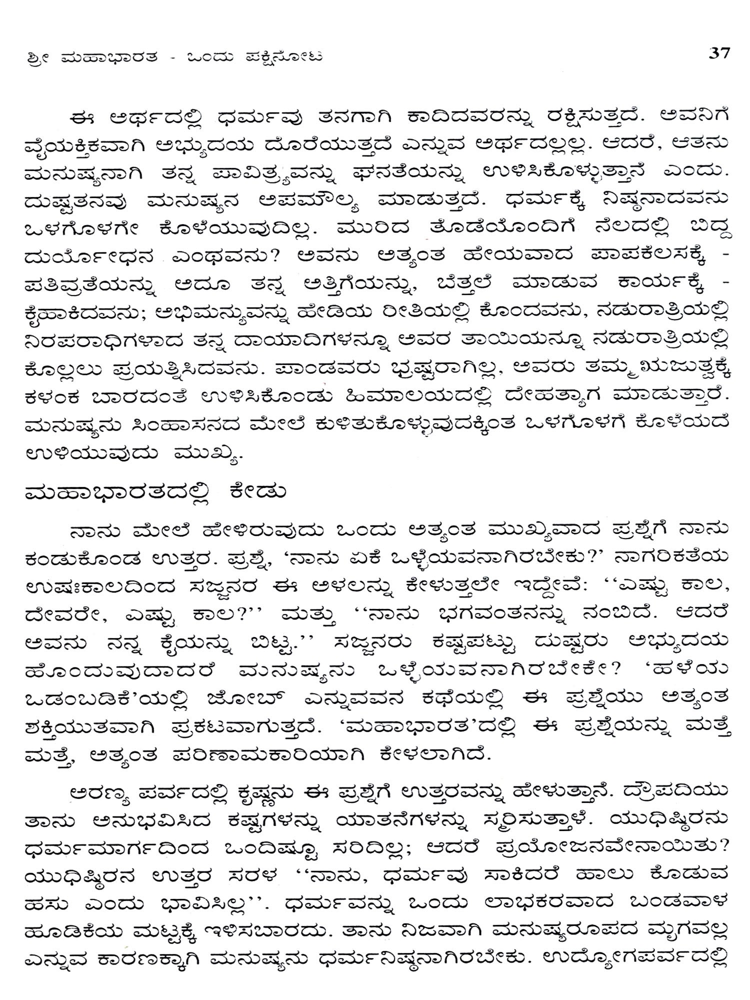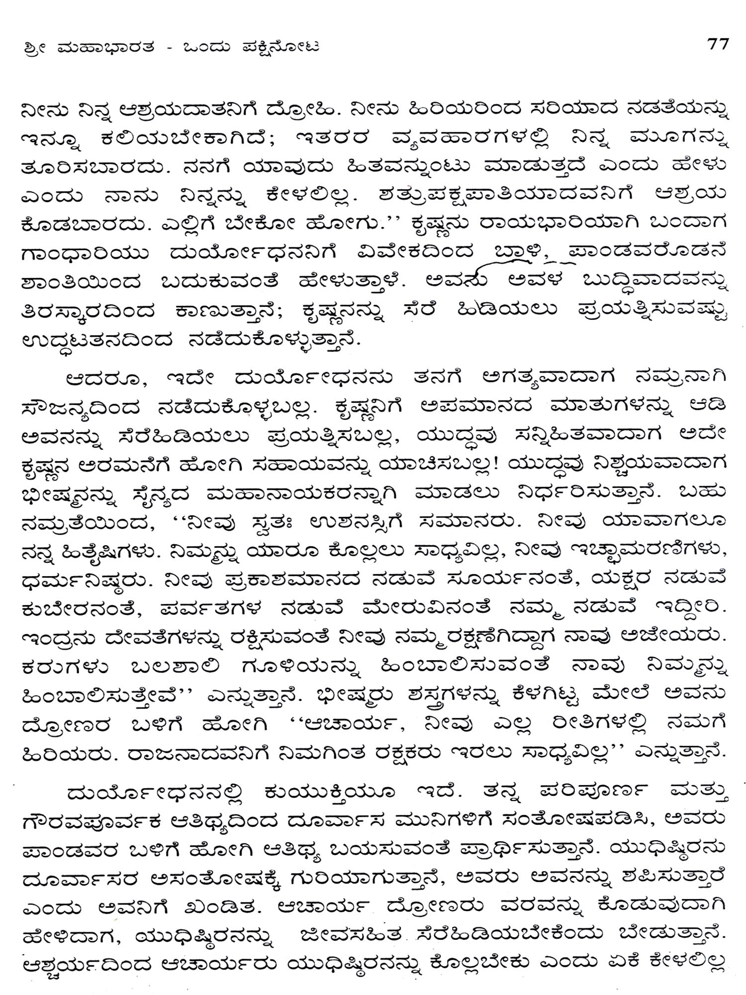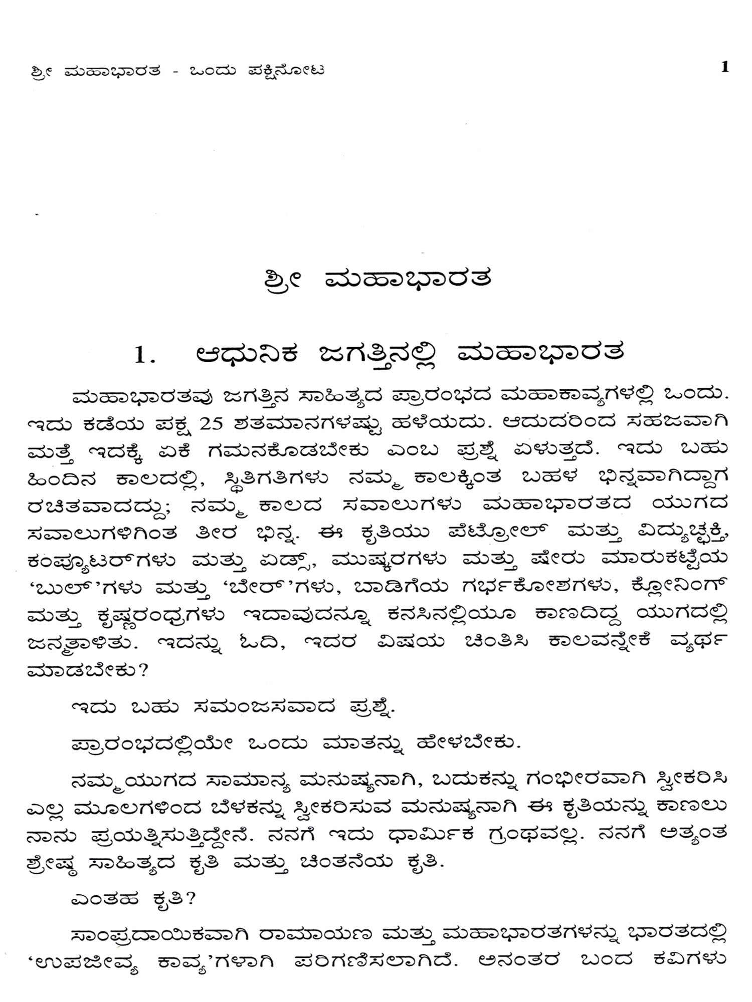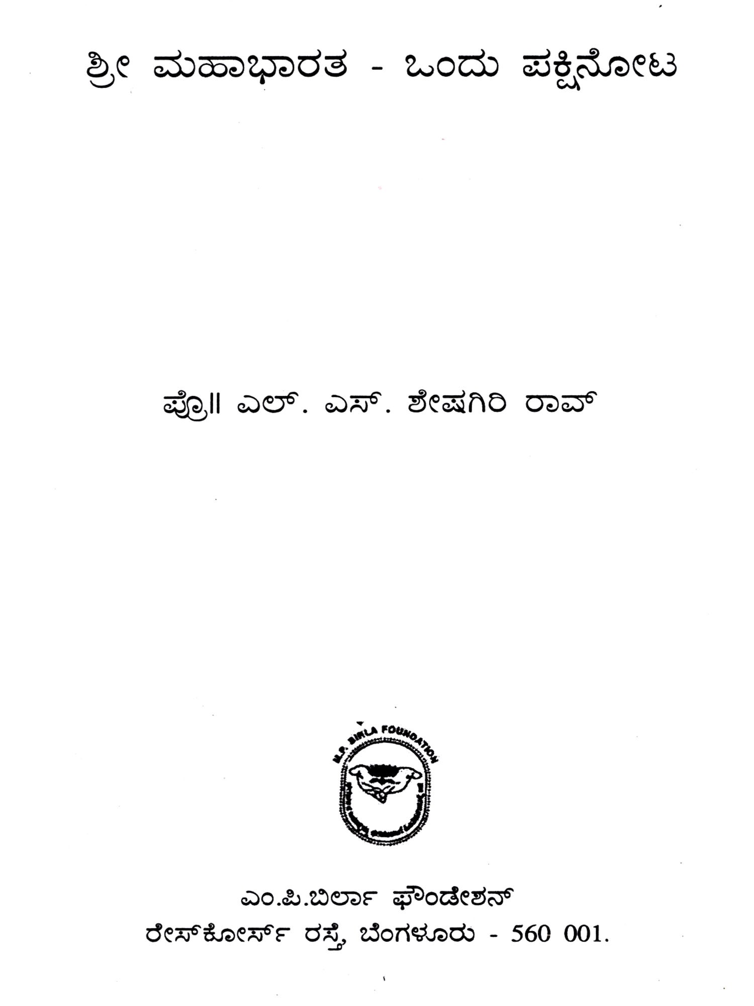 ಶ್ರೀ ಮಹಾಭಾರತ-ಒಂದು ಪಕ್ಷಿನೋಟ- Shri Mahabharatha: Ondu Pakshi Νοta (Kannada)
