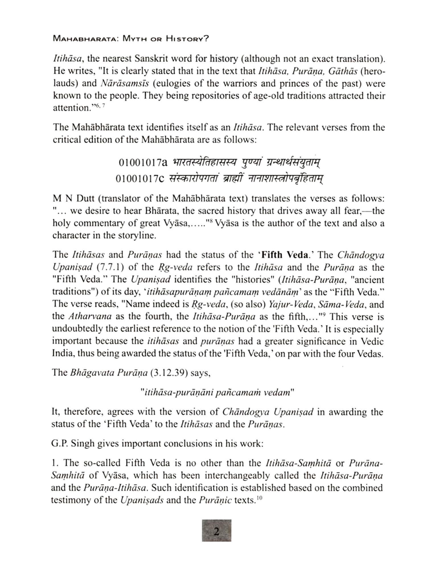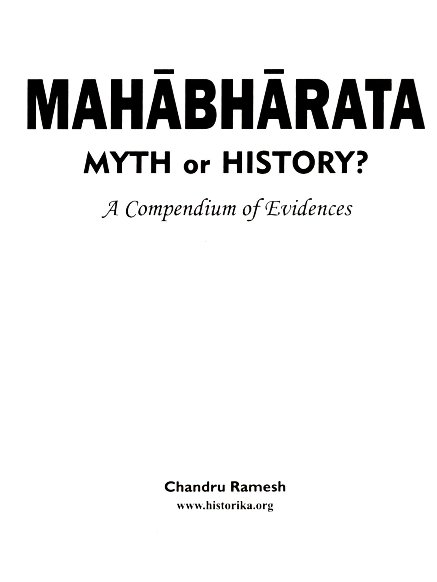 The scene was the annual book fair in Chennai. I saw a visitor debating with a stall representative selling the Mahabharata who alleged the Mahabharata cannot be historical. As I eavesdropped onto their conversation, I had realised that I had been impacted by the question: "Is the Mahabharata a Myth or History?" 1 knew that the answer to this question will have massive repercussions. But where do I start? Should I study some books? Or should I watch some videos, probably documentaries? Where will I get the answers?
