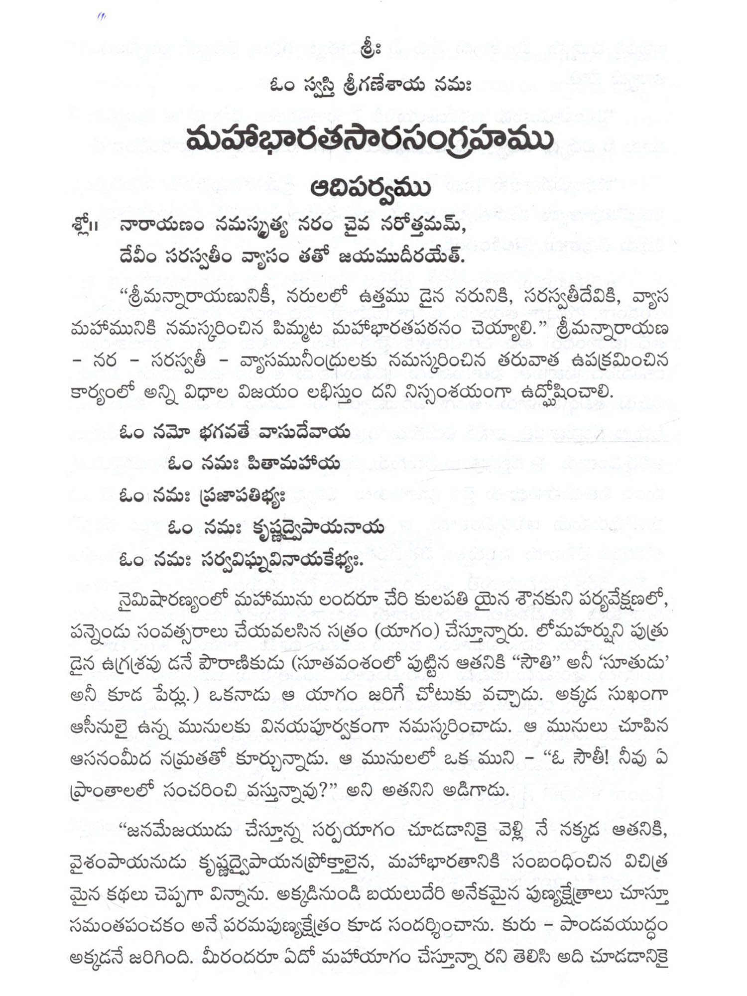 మహాభారత సారసంగ్రహము: Mahabharata Sarasangrahamu (Telugu)