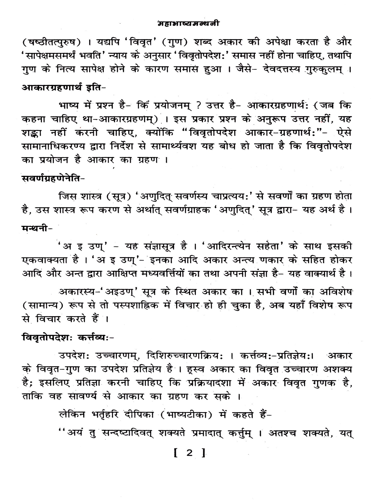 महाभाष्यमन्थनी (व्याकरणमहाभाष्य प्रथम आह्निक की विस्तृत हिन्दीव्याख्या): Mahabhashyamanthani (Detailed Hindi Explanation of Grammar Mahabhashya Part- 2)