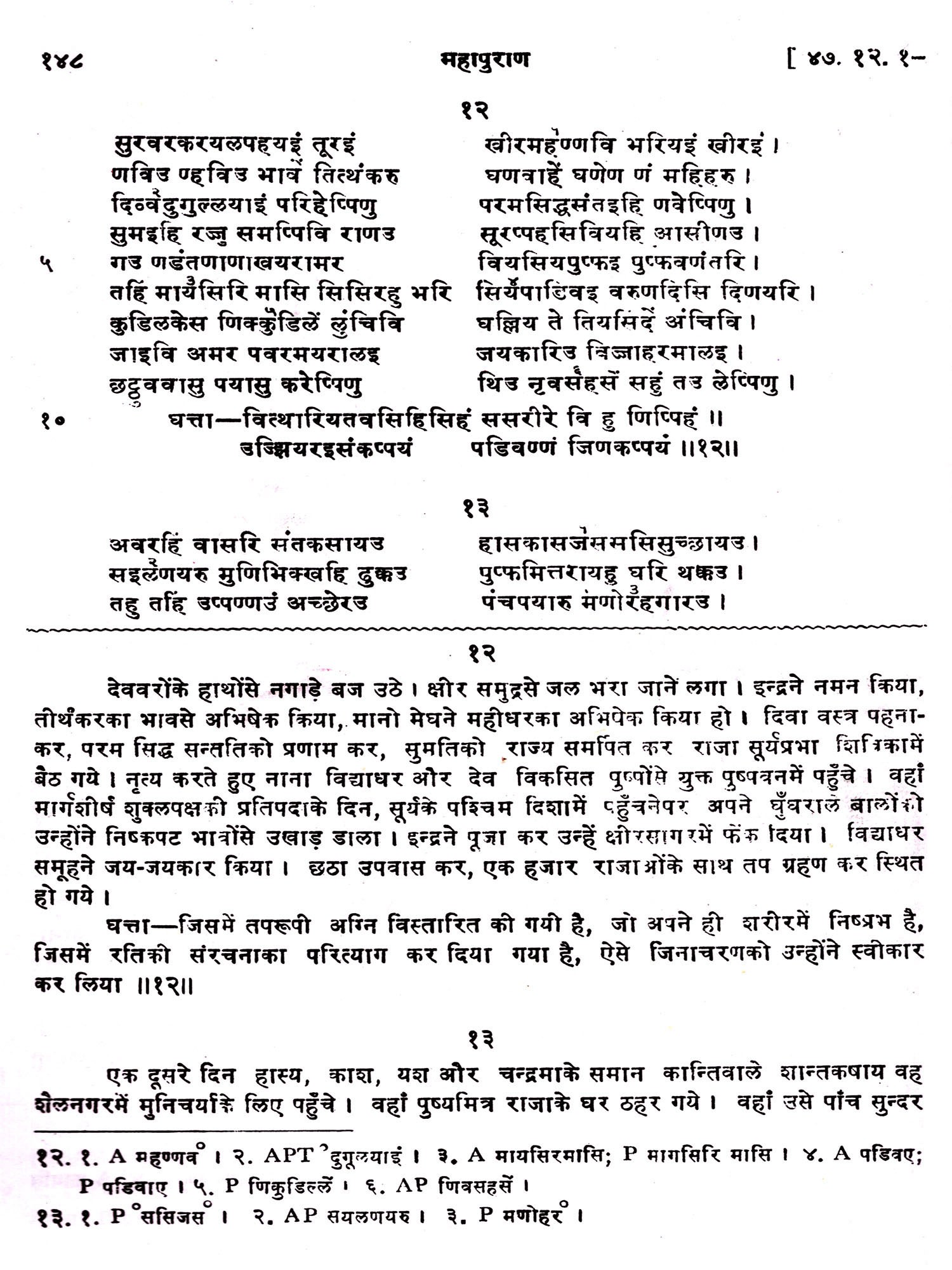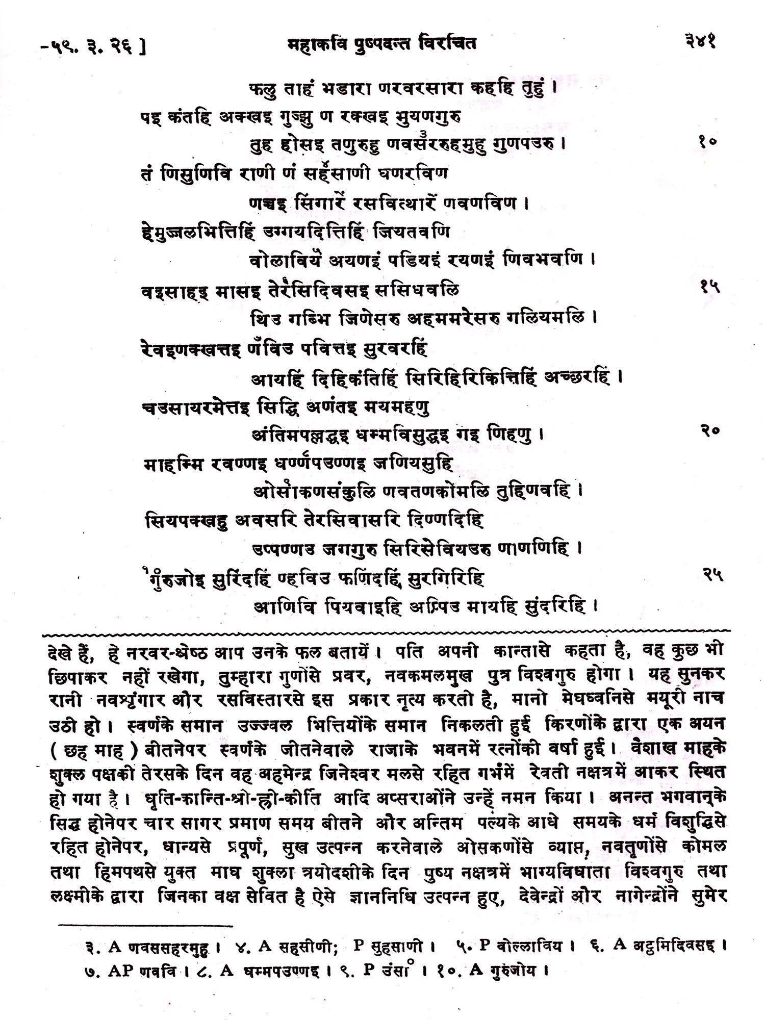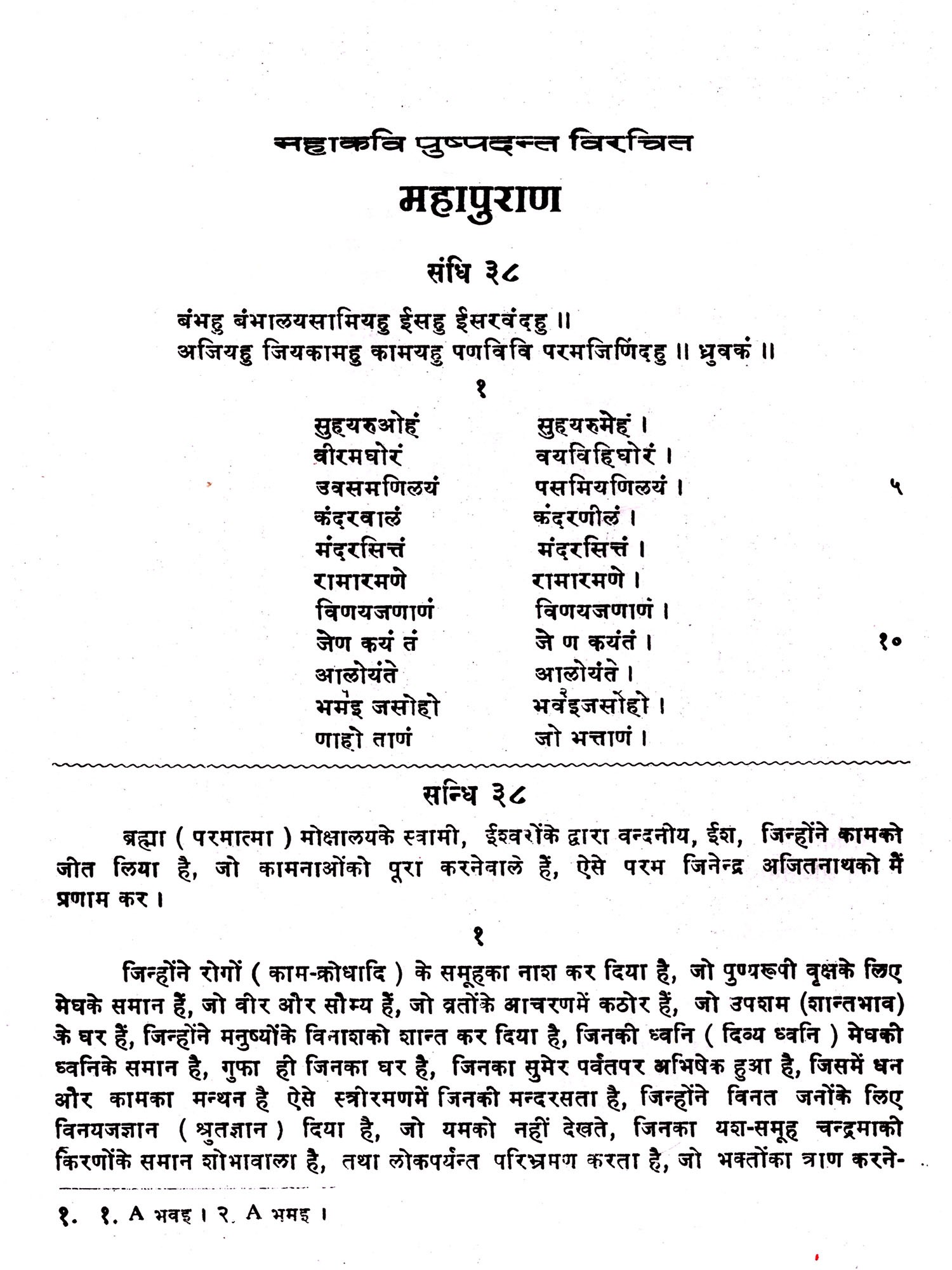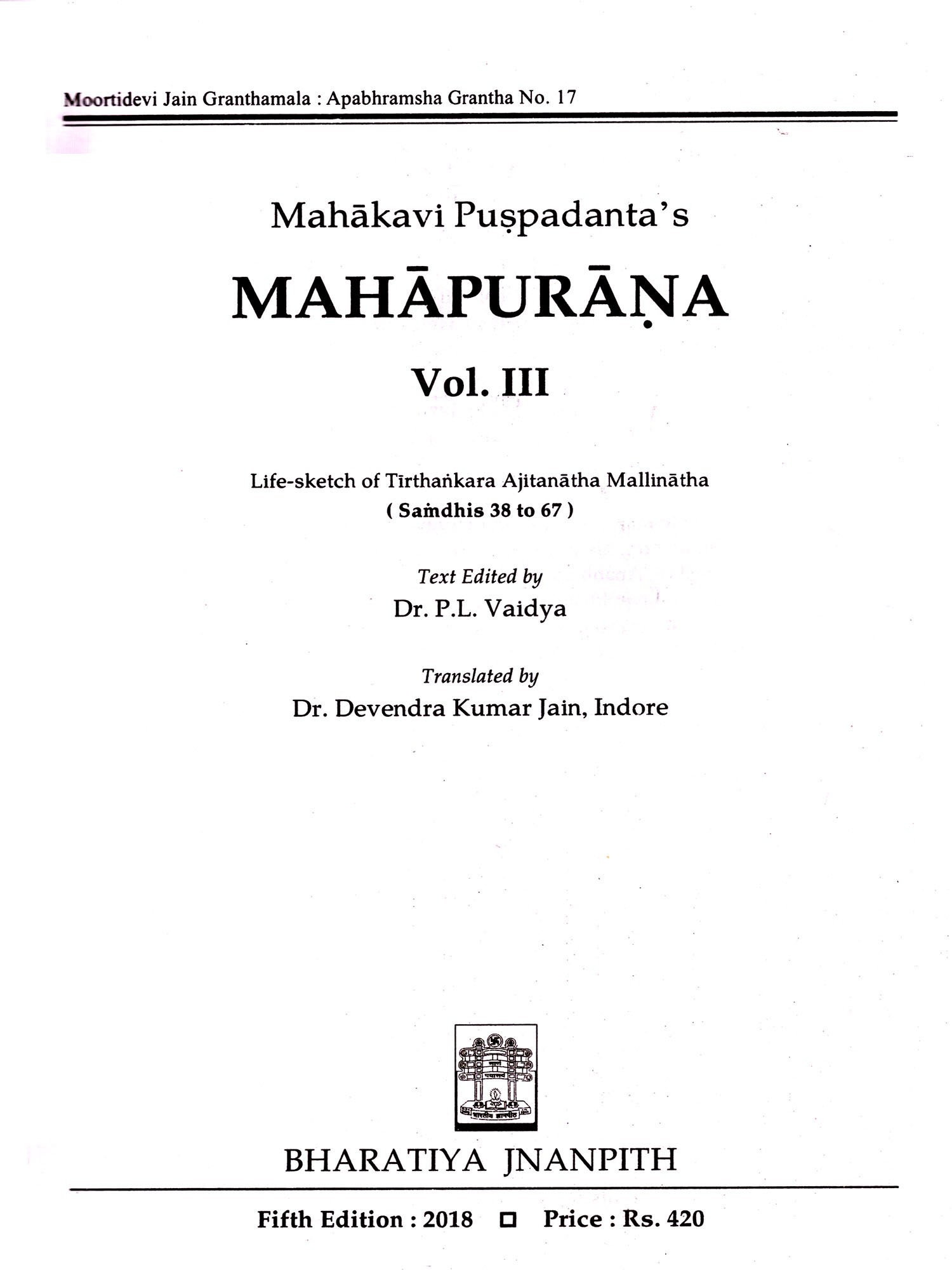 महापुराण: Mahakavi Puspadanta's Mahapurana Vol-3 (Life-sketch of Tirthankara Ajitanatha Mallinatha Samdhis 38 to 67)