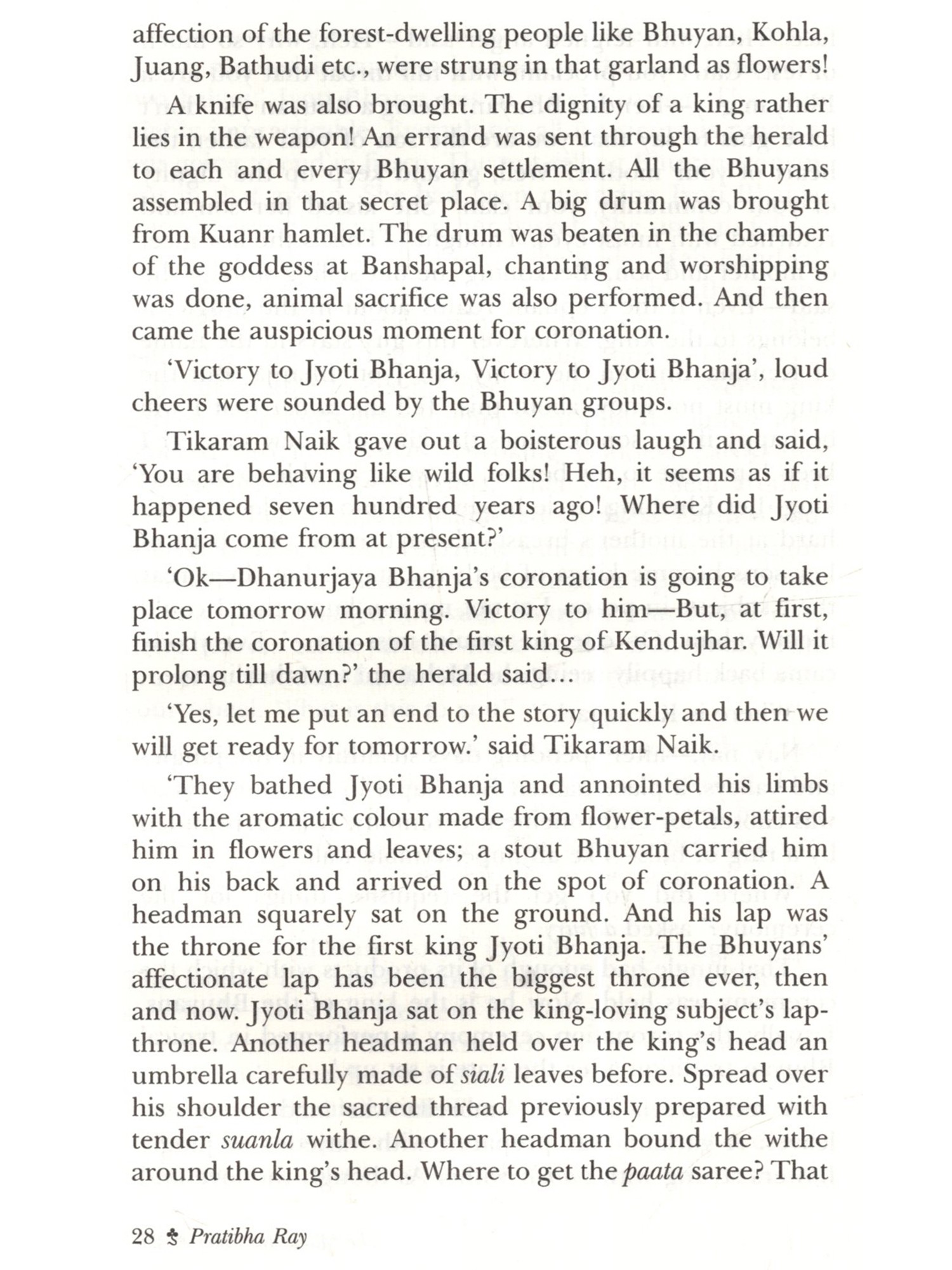 History may be servitude. (Four Quartets-T.S. Eliot). H May May not be true, when it is wedded to the alchemy of creative imagination and its fact incarnate an aesthesis that lights and delights beyond measure. Consequently its readers roam in a realm of supernal liberation. In fact, history metamorphosed into historical novel can liberate mankind when presented by a master-spirit (novelist). Odia literature is so fecund and auriferous that it has given birth to one heroic soul, the celebrated Dr Pratibha Ray. If we go by Thomas Carlyle's definition of hero as eternal light fountain, (Hero and Hero worship), then the esteemed literary genius Smt. Ray indubitably fits with it. So says the notable critic Jatindramohan Mohanty, 'She has written extensively novels, short stories, travelogues etc., and is established today as a very substantial writer of Odisha. Pratibha, like Binapani, has been deeply involved with social factors and attitudes, and her insight is as probing and sharp. But she has a larger dimension in the sense that she has divergent readership.' (History of Odia Literature, 2006, p. 618). As a matter of fact, this human Pratibha is what the great Sanskrit rhetorician of Odisha, Viswanath Kabiraj says, 'Naba naba unmeshasalini prajnya.' In other words, she is an ever-flowing and never-failing fountain of the power of invention. The pageantry of her fictions is both fabulous and fantastic. Her Maharani Putra, (a historical novel in Odia language), translated into English by Rabindra Kumar Nayak is timely and deserves accolade. This novel merits translation in the sense that the rebellion it relates is a brilliant pointer to the indomitable promethean spirit of the really marginalised, dispossessed, dehumanized and denigrated 'amrutara santaans' (The Dynasty of Immortals, as Prof. Bidhubhusan Das says, in connection with Gopinath Mohanty's Amrutar Santaan). These tribals are, in fact, 'Dalits', who, in spite of their innate naivety and unpretentiousness are condemned to a death-in-life existence because of the predatory nature of the so-called higher castes. Once, monarchy was instrumental in such anti-human depredation. The tribals of Kendujhar were no exception to it. Prey to monarchy, their existence was hellish. Therefore, they had risen in rebellion more than once. Dharanidhar, a tribal youth of this region and the protagonist of Pratibha's classic Maharani Putra is historically significant. Leading the rebellion of the tribals such as Bhuyans, Juangs, Santals of the surrounding areas of Kendujhar in 1891 against the then atrocious monarchy, he demonstrated how Nature's offspring-credulous and credible, virtuous and valiant, loving and lovable, and 'more sinned against than sinning,' were also ignited souls; they were meek and mild no doubt, but they were also virulent and volcanic in the teeth of outrage whatsoever. Dharanidhar is a colossus whom history salutes and Mother Earth hugs as one of her rare sons and who typifies Netaji's clarion call 'Let's create history, let others write it.' The novelist has employed the omniscient method to narrate the evolution of Dharanidhar as son of Nature, as leader of the tribals, as the Maharani's Son and as the ill-fated leader betrayed by Phakirmohan, Dewan of the king of Kendujhar, as prisoner incarcerated in Cuttack jail, as devotee singing devotional songs in front of the temple of Lord Jagannath at Puri and as sannyasi spending his last days at Aali and finally breathing his last there on 16 May 1914. Thus a hero disappears not in the limbo of oblivion, but remains redolent in the Hall of Fame of History. Pratibha's novel turns Apollonian with supernal aplomb as she pays homage to Dharanidhar. 'People believe that Dharanidhar has not died. Brajasundar Dev might have thought that there was no need of a temple for one who was alive. Because, when the hailstones fall upon the tank in dark like the never-ending miseries of man, his voice is heard from among the heaps-Let me rot in hell, but let the world be redeemed.' What a grand end! A majestic organic plot of epical dimension impregnated with a unique poetic-philosophical style-the style at times rising to an incantatory crescendo has been handled so absorbingly and dexterously by the peerless novelist that it casts a hypnotic spell on the reader. Translating such a historical novel is not everybody's cup of tea. A mind elastic and a heart susceptible can venture to shoulder the onerous task of translation because translation is the only means of providing us a release from the narrow prison-house of different languages and affording a fresh view of oneness, unity and commonality. 'All literature envisions and aspires to such an "ideal." This 'common ideal', of course, be the source of that nebulous "unity" we talk of. Literary translations into and from Indian languages can help us to unravel, capture and preserve this ideal.' (R.N. Srivastav, Making of Indian Literature, p. 5). Translator Rabindra Kumar Nayak has been imbued with the superb ideal of presenting a regional ethos that has a national or even transnational bearing which goes a long way in sensitizing human consciousness about 'what man has made of man' (Wordsworth) which is both baneful and boorish and which must be done away with lock, stock and barrel.