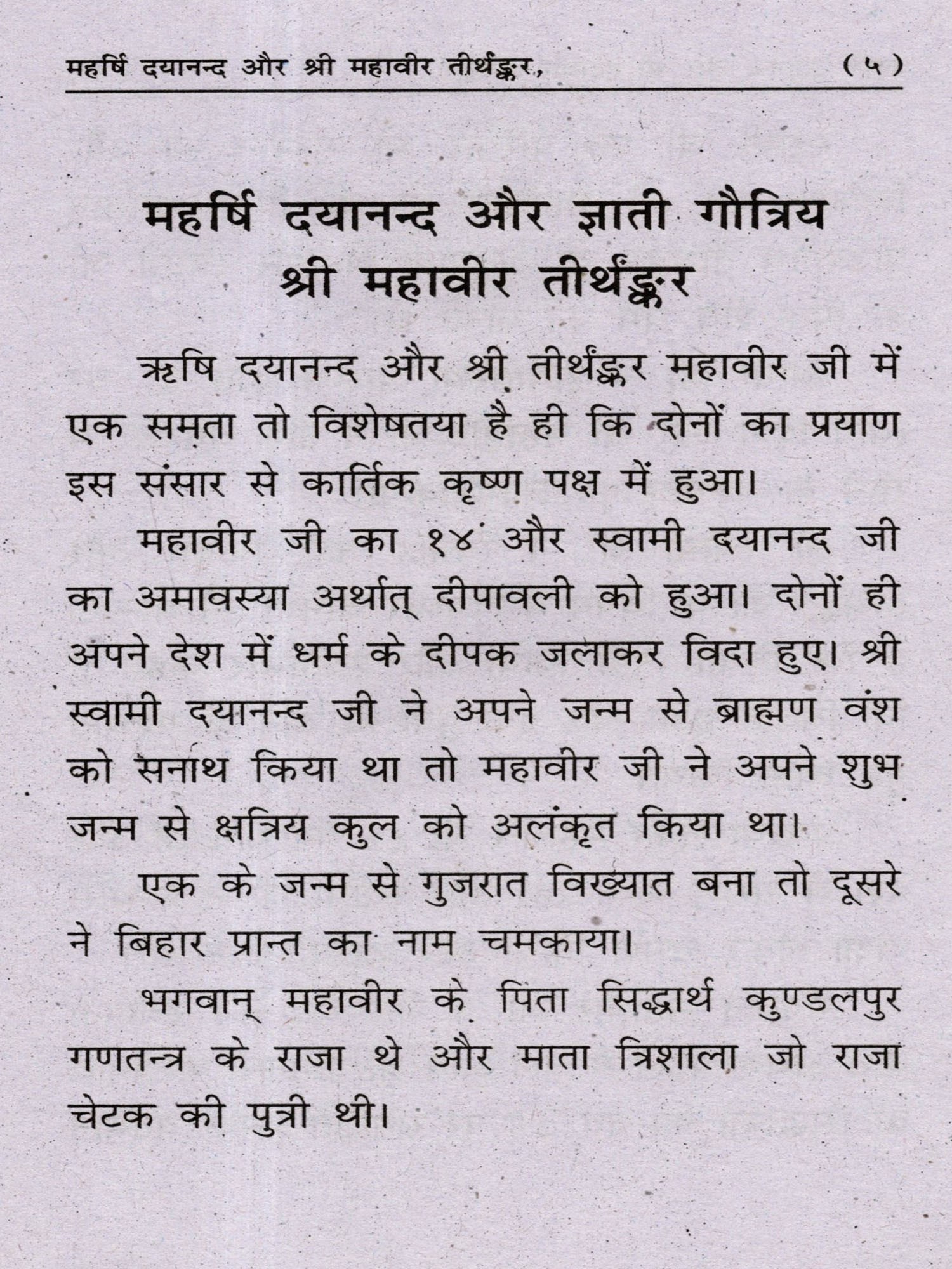 महर्षि दयानन्द और ज्ञाती गौत्रिय श्री महावीर तीर्थङ्कर: Maharishi Dayananda and Gyati Gautriya Sri Mahavira Tirthankara (Comparative Study)