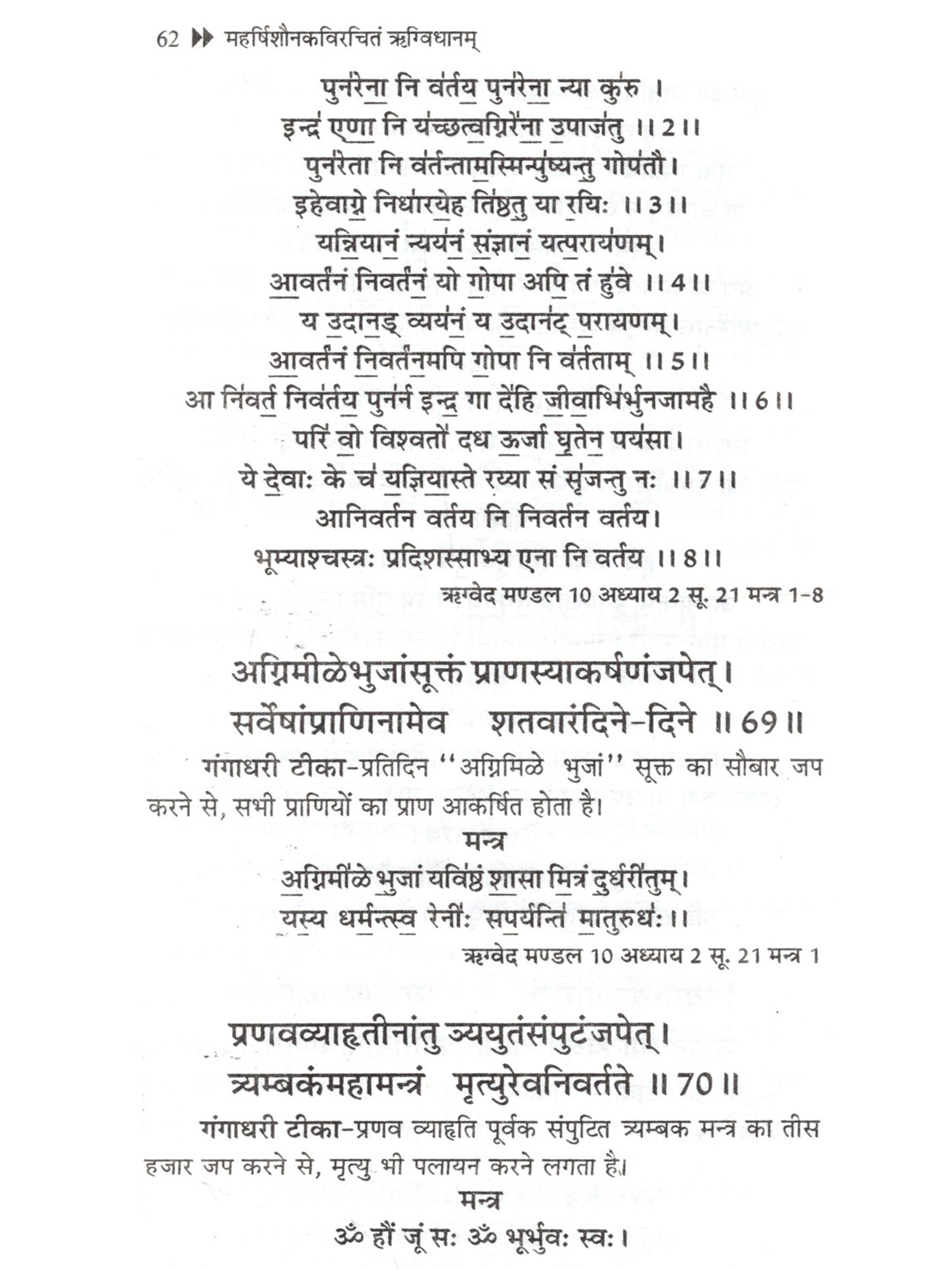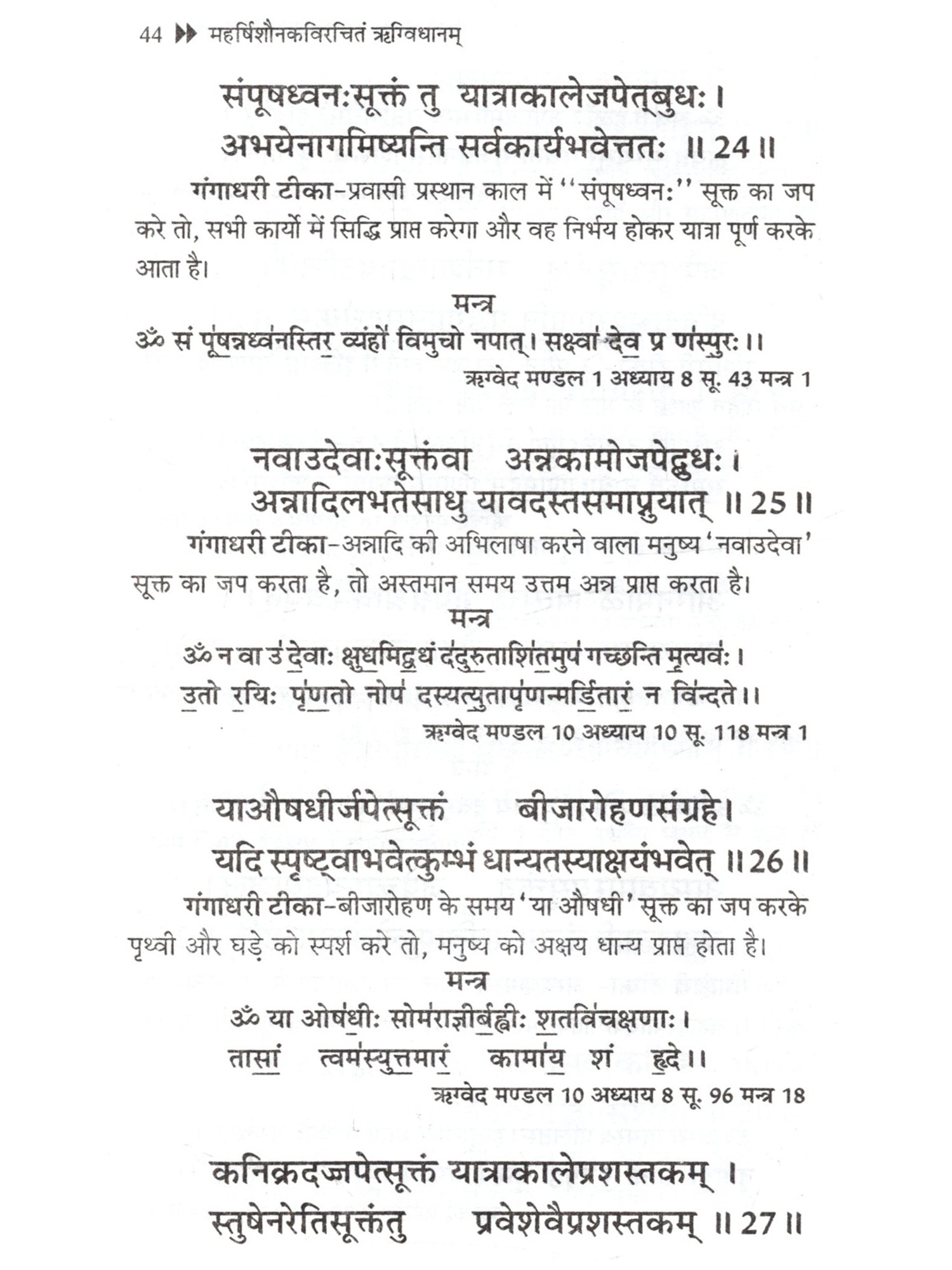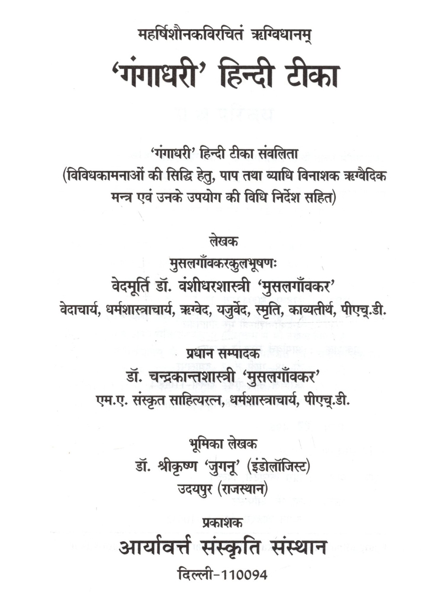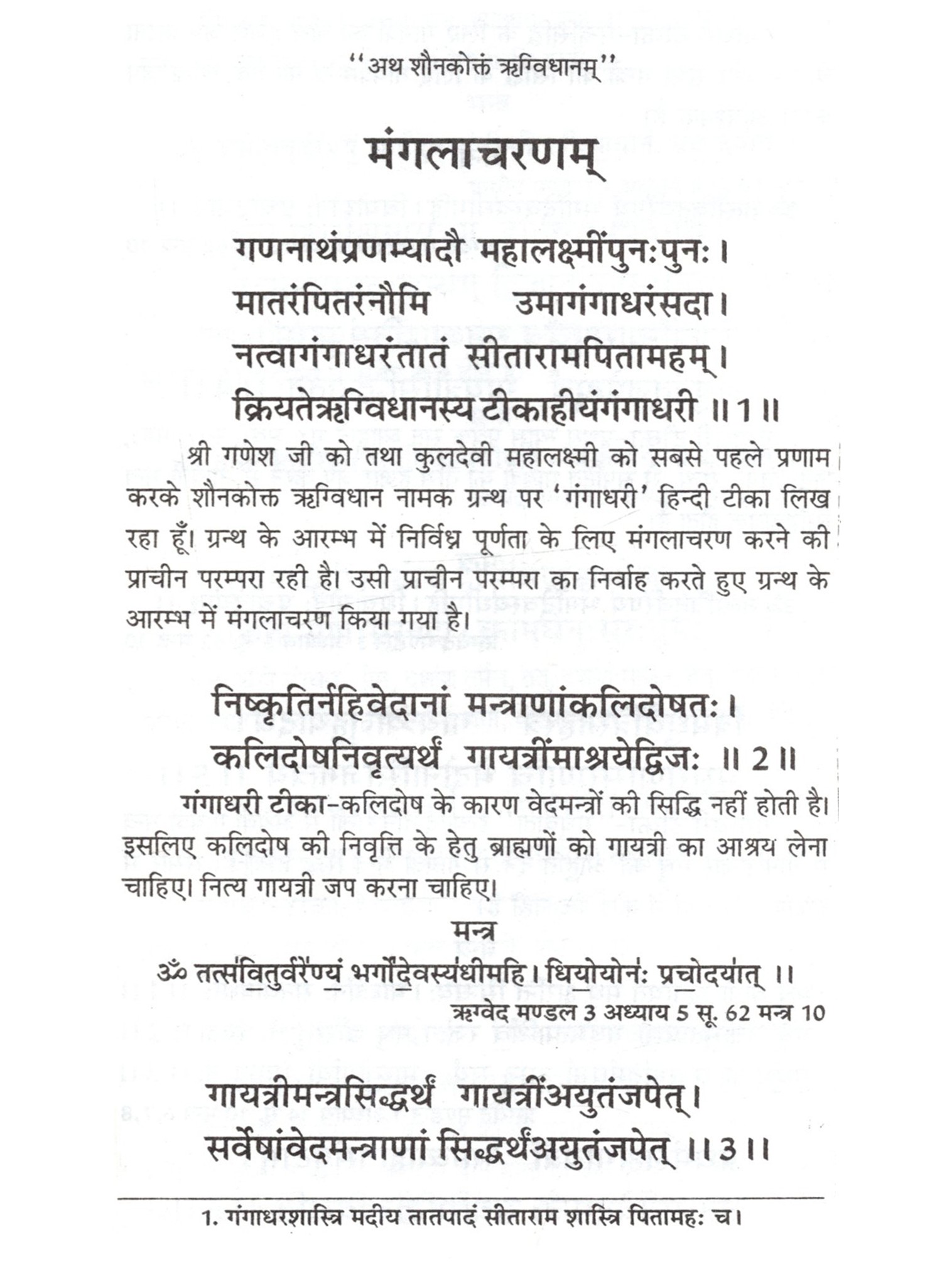 महर्षिशौनकविरचितं ऋग्विधानम् ('गंगाधरी' हिन्दी टीका संवलिता): Maharsi-Saunakaviracitam Rgvidhanam (with 'Gangadhari' Hindi commentary)