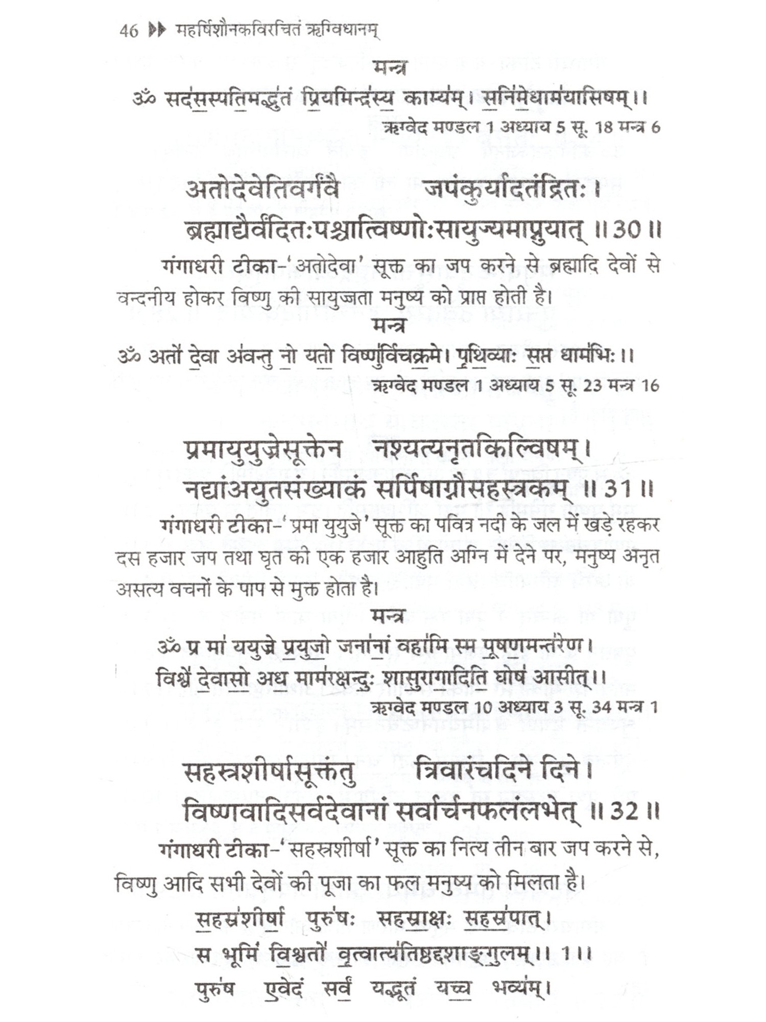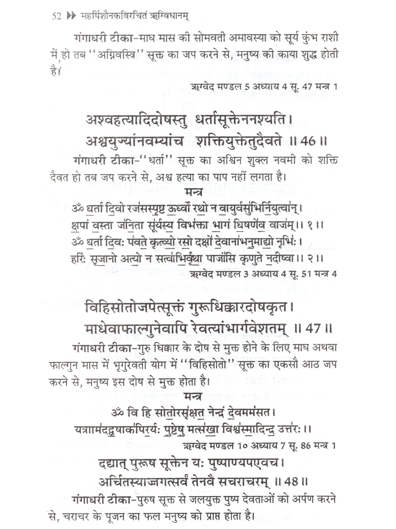 For the fulfillment of various desires, destruction of sins and diseases, along with instructions on the method of using them, Rigvedic mantras