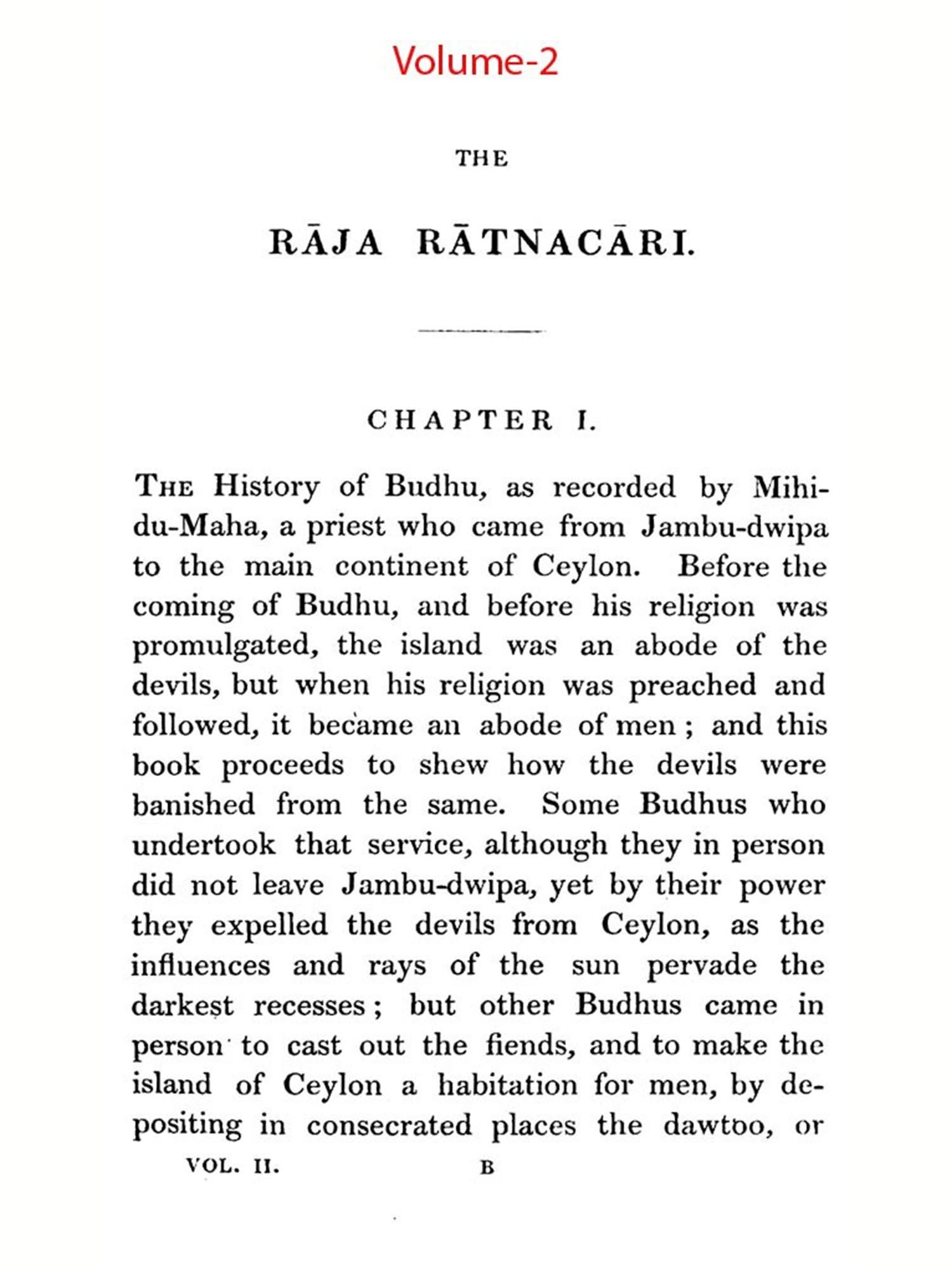 The Mahavansi, Raja-Ratnacari, and Raja-Vali are sacred historical texts from Sri Lanka, translated from Singhalese in a three-volume set. They document the island's history, kings, and Buddhist traditions. The Mahavansi high-lights ancient royal lineages, while the Rájá-Ratnácari and Raja-Vali emphasize governance and Buddhism's role. With tracts on Buddhist doctrines, they offer a rich perspective on Sri Lanka's heritage.