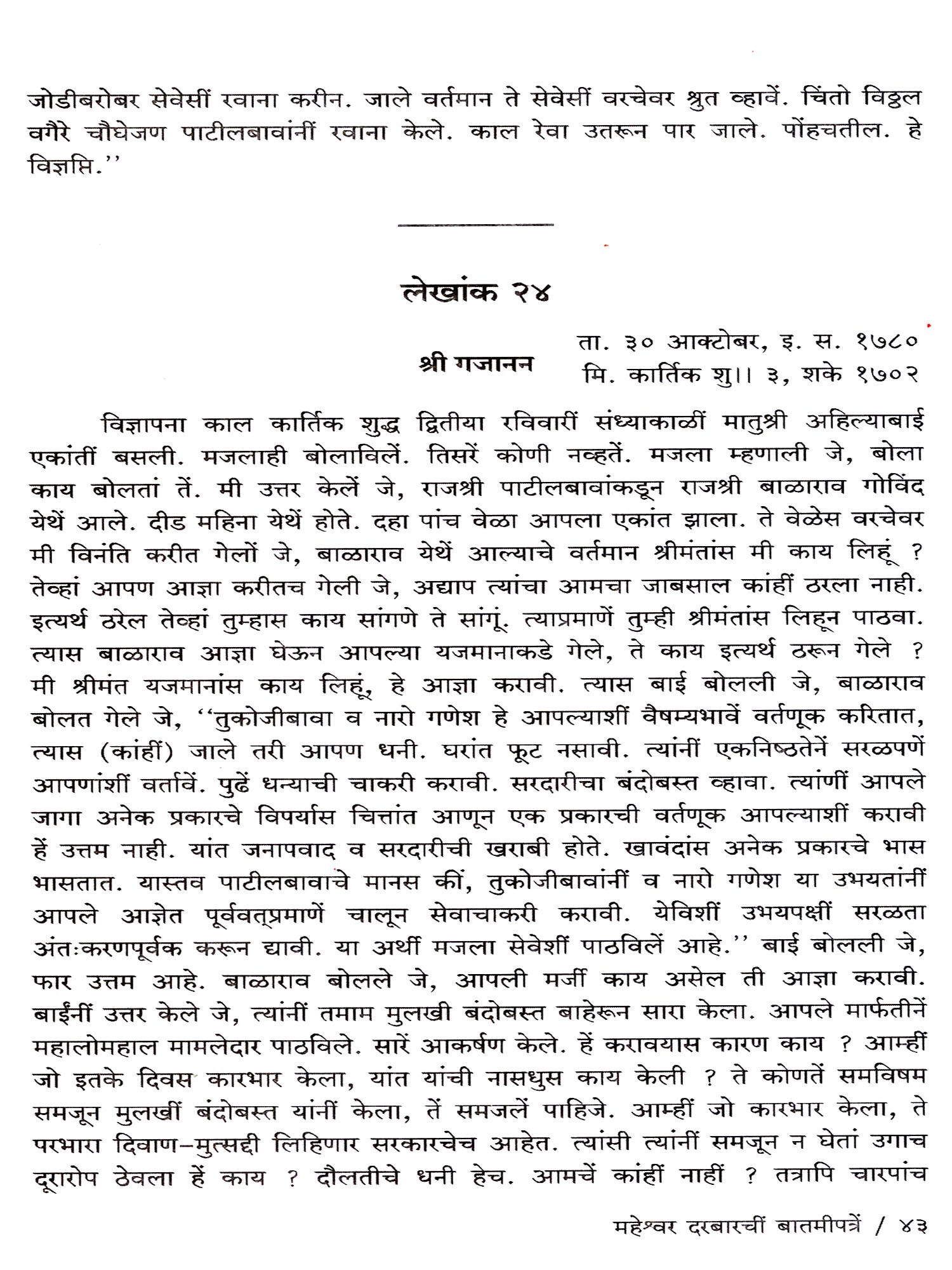 Sanads & Letters- Selected by the Late Rao Bahadur Ganesh Chimnaji Vad, B. A. (Marathi) (Photostat)
