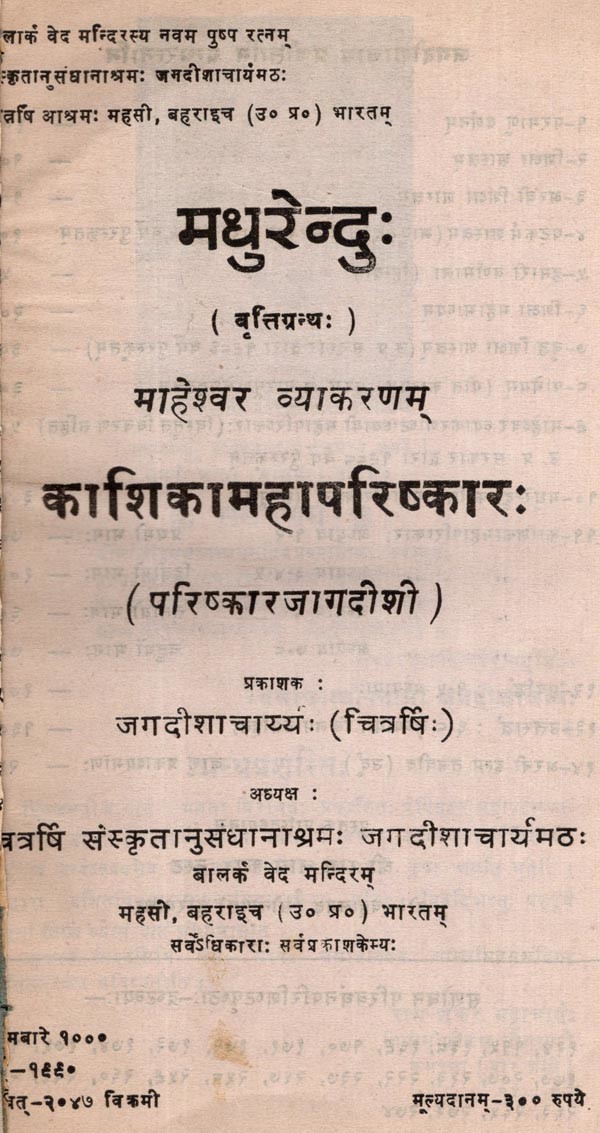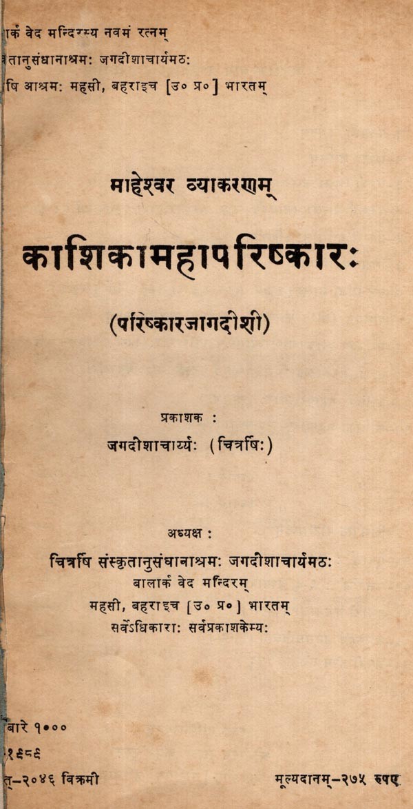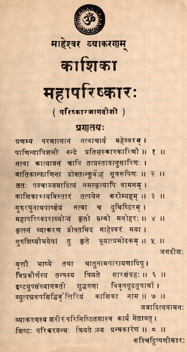 माहेश्वर व्याकरणम्- काशिका महापरिष्कारः- Maheshwara Grammar- Kashika Mahaparishkara (An Old and Rare Book)