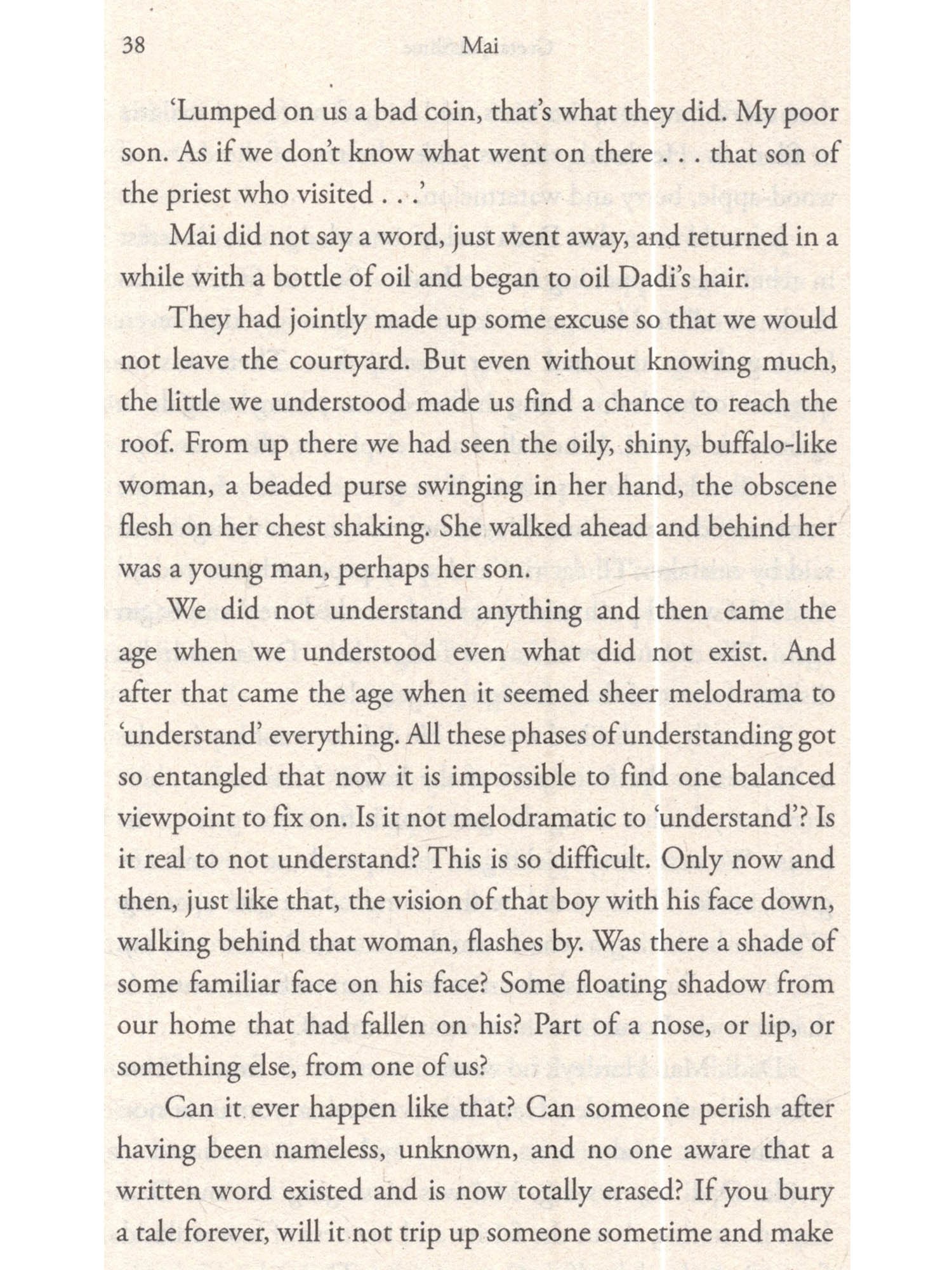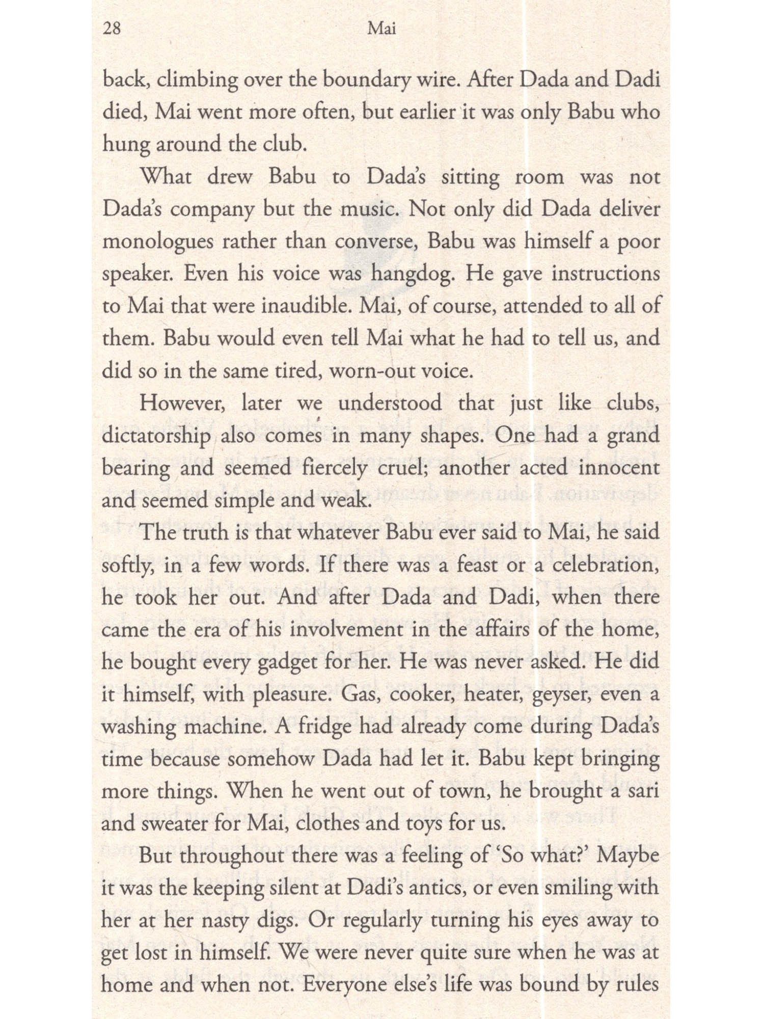 Nestled within the walls of a home in a north Indian town, a vibrant microcosm thrives-a tapestry intricately woven by a joint family, their attendants and a continuous flow of visitors. Across three generations, women and men employ varied strategies of adaptation and achievement, choosing either to conform or to challenge the constraints of patriarchy. At the epicentre of this intricate web stands Mai, the ostensibly gentle mother, orchestrating the complex patterns of relationships and actions, carving out a life not just for herself, but also those around her. Despite her modern children's attempts to liberate her from perceived confinement, the evolving story challenges simplistic notions of bondage and freedom. The novel masterfully weaves profound tales of love and loss, with Mai serving as its central and compelling figure.