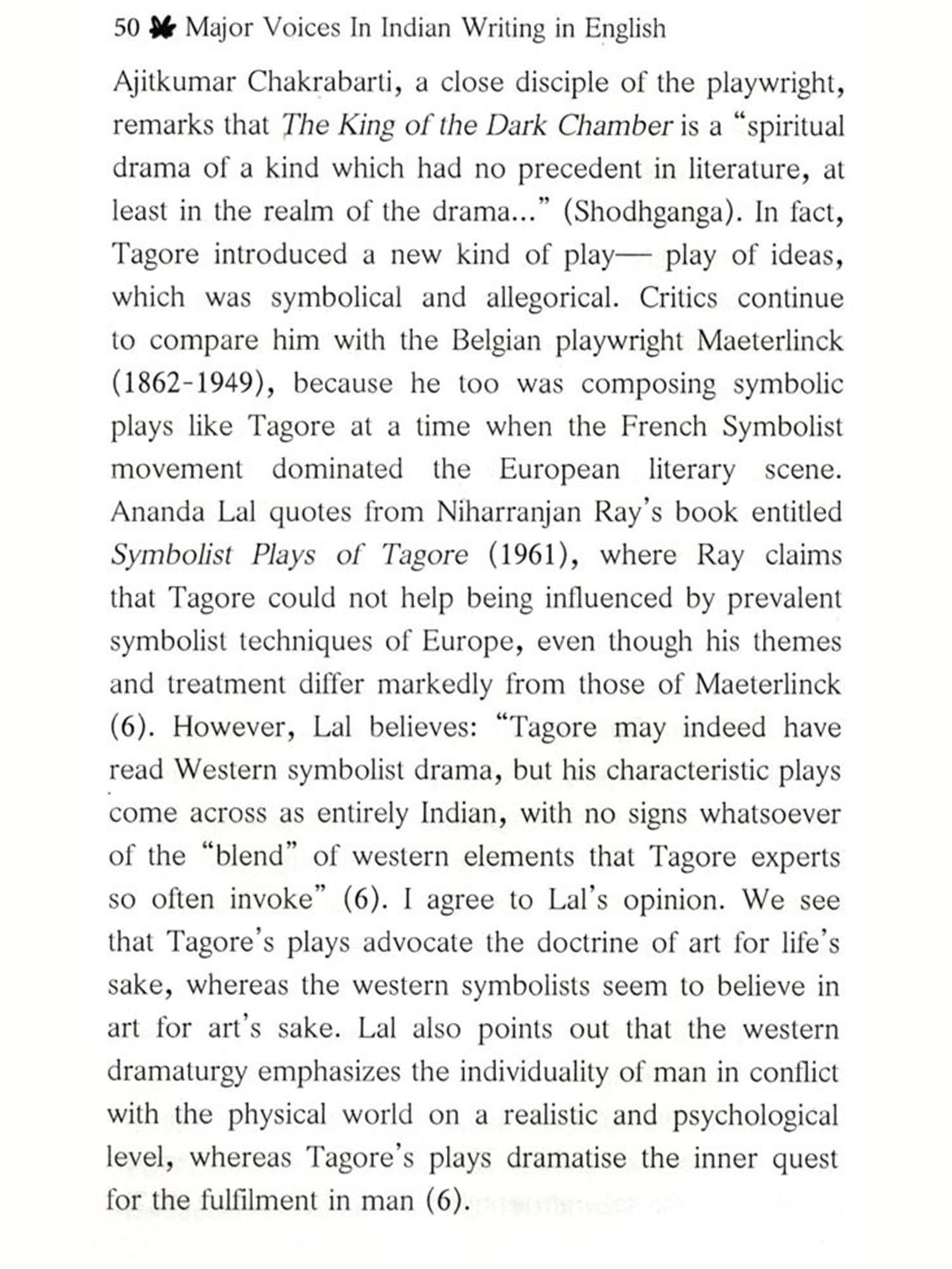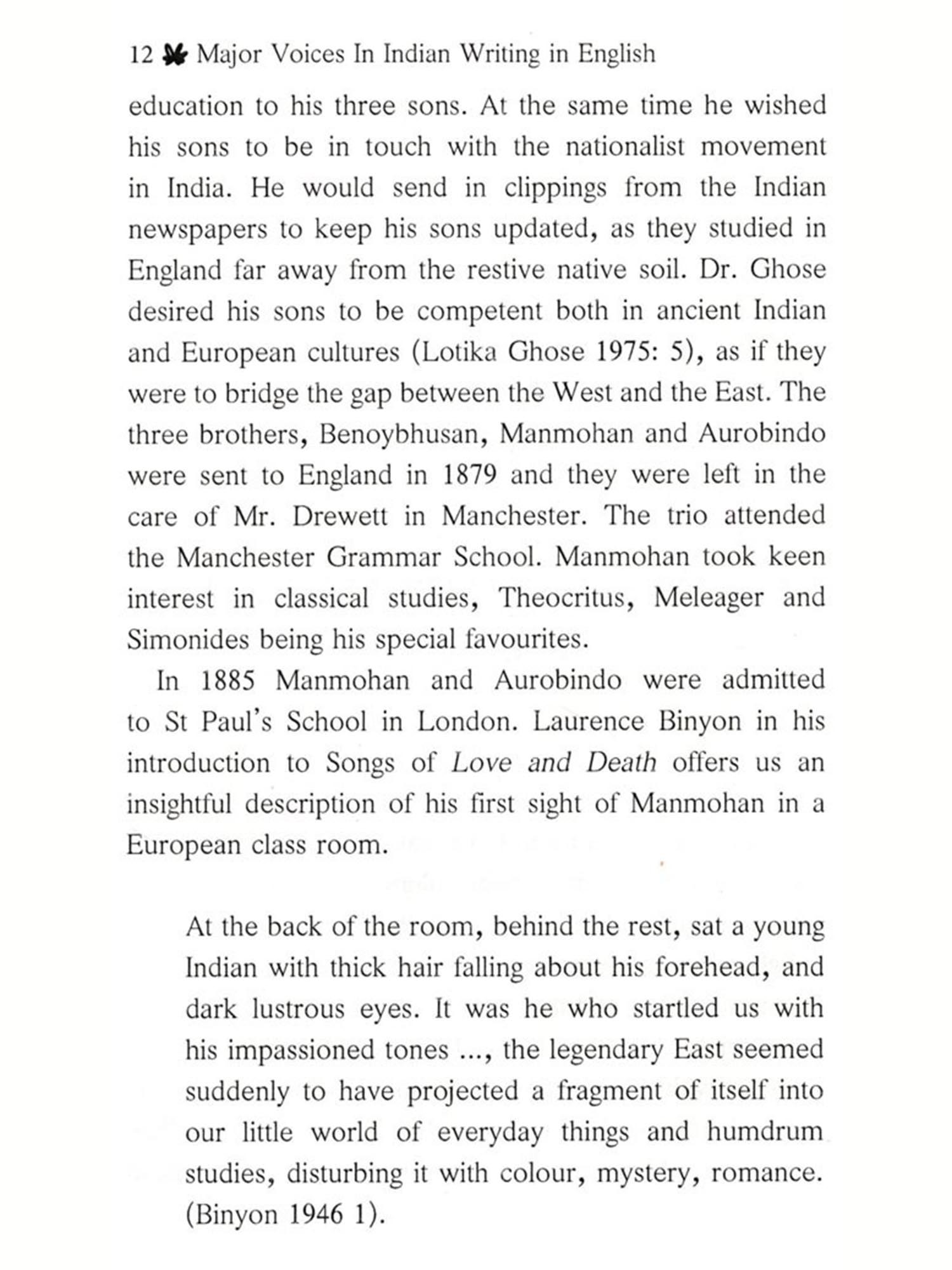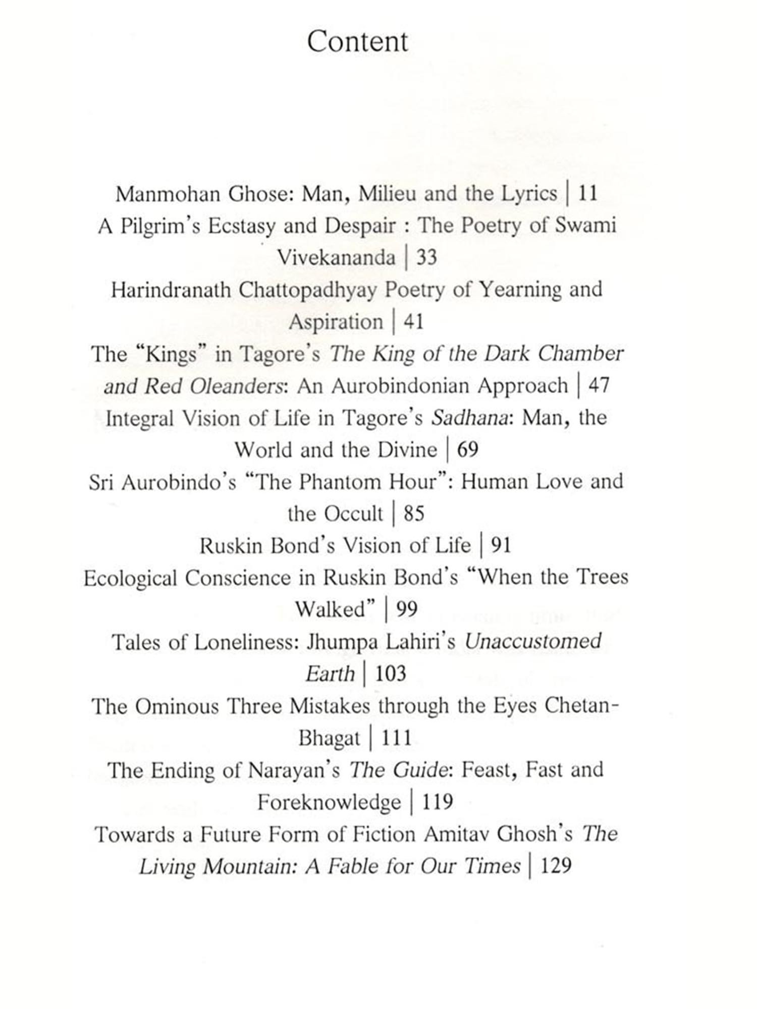 Some, like the two essays on Tagore, and one on Amitav Ghosh and one on Narayan, were written later, the last two being curious stray thoughts briefly jotted down through Sri Aurobindo's theories of consciousness and following his vision of future art. Except for the essays on Manmohan Ghose, Harindranath Chattopadhyay and Vivekananda from the old book, there are not much clues to offer to the serious researchers. Chetan Bhagat, for instance, is no more a major voice as he was at the beginning of the millennium. The only point in retaining him is the theme of The 3 Mistakes of My Life, which continues to be relevant.