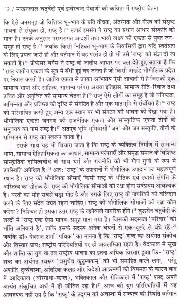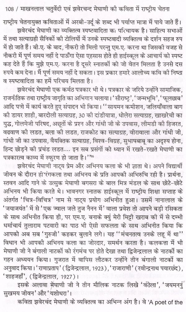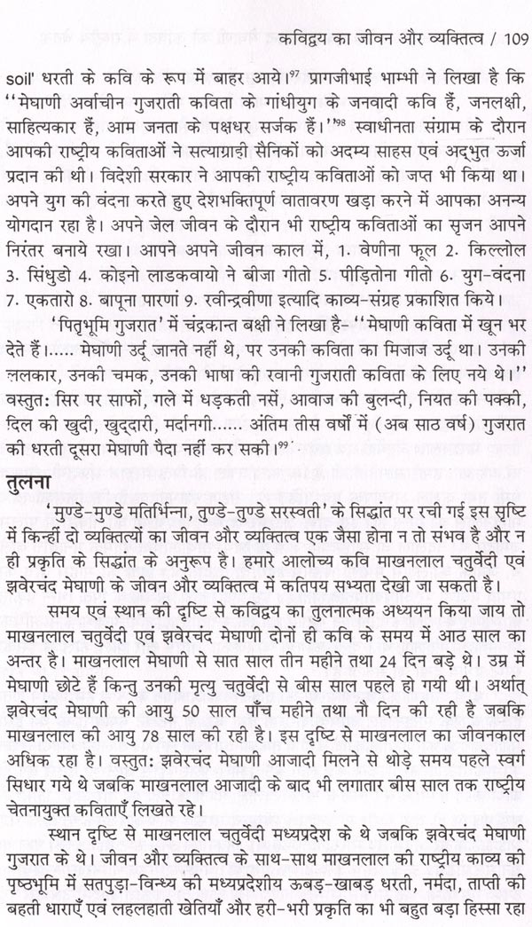 अतः अध्यापक के रूप में मुझे बी.ए. के प्रथम वर्ष में 'आज के लोकप्रिय हिन्दी कवि माखनलाल चतुर्वेदी' हरिकृष्ण प्रेमी संपादित कविता संग्रह के अध्ययन अध्यापन का सुअवसर प्राप्त हुआ तो चतुर्वेदीजी तथा राष्ट्रीय काव्य धारा के गहन अध्ययन के प्रति मेरी अभिरुचि और बलवत्तर बनती गई। विशेष उपाधिपरक अध्ययन की महेच्छा लेकर मैं श्रद्धेय गुरुवर्य डॉ० राठौर साहब के पास पहुँचा पर गुरुजी ने यह कहकर मना कर दिया कि माखनलाल पर तथा हिन्दी की राष्ट्रीय काव्य धारा पर एकाधिक कार्य हो चुके हैं। बहुत कुछ लिखा गया है आप क्या नया लिखेंगे पर मैं निराश नहीं हुआ। अपने इस विषय की बात प्रसंगवश करता रहा, तब एकबार गुरुजी ने कहा कि अगर चतुर्वेदीजी पर ही कार्य करना चाहते हैं तो किसी गुजराती साहित्यकार से तुलना कीजिए। मेरा ध्यान तुरन्त झवेरचन्द मेघाणी की कविता की ओर गया और विषय निश्चित हुआ। मैं मनचाहा विषय पाकर प्रसन्नचित्त कार्य में जुट गया, जिसका परिणाम यह शोध-प्रबन्ध है।