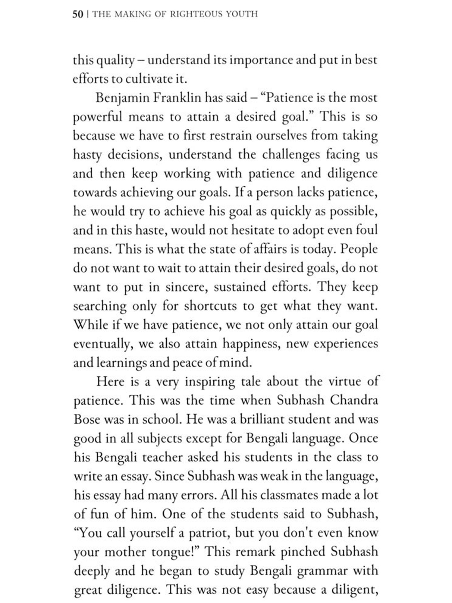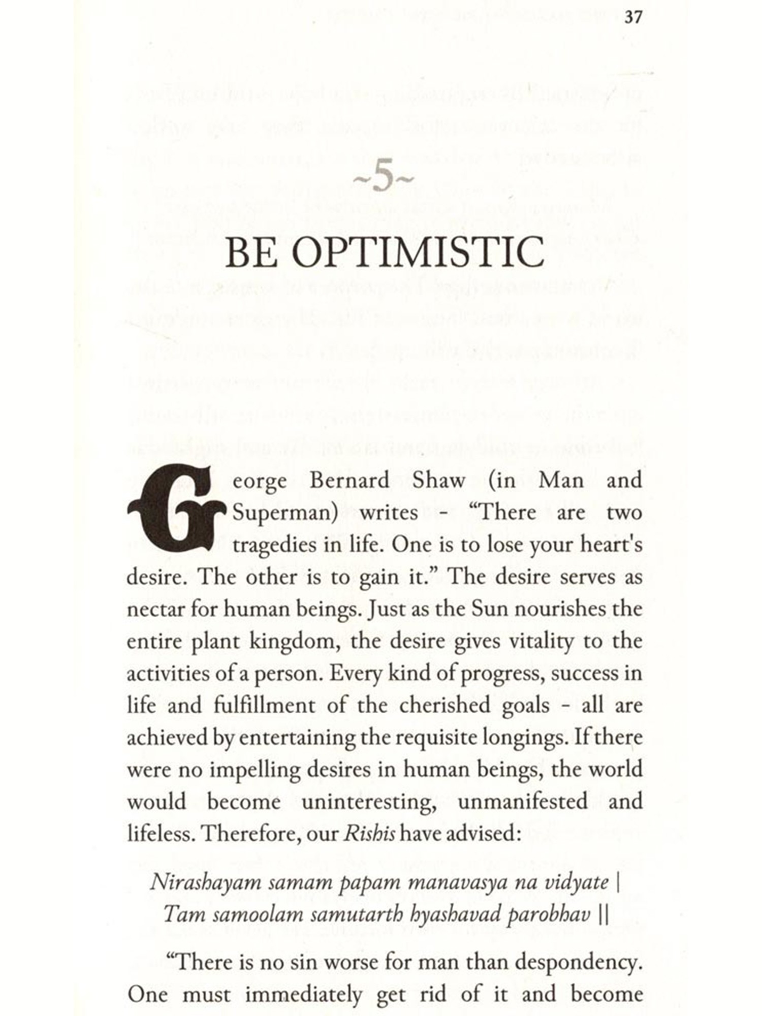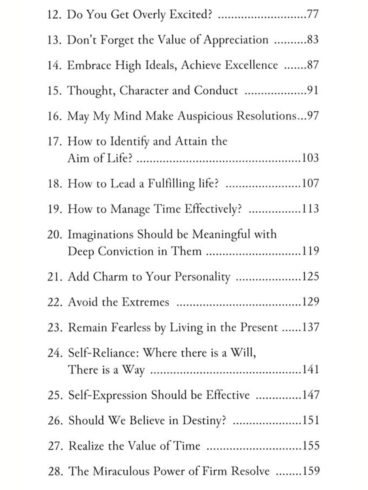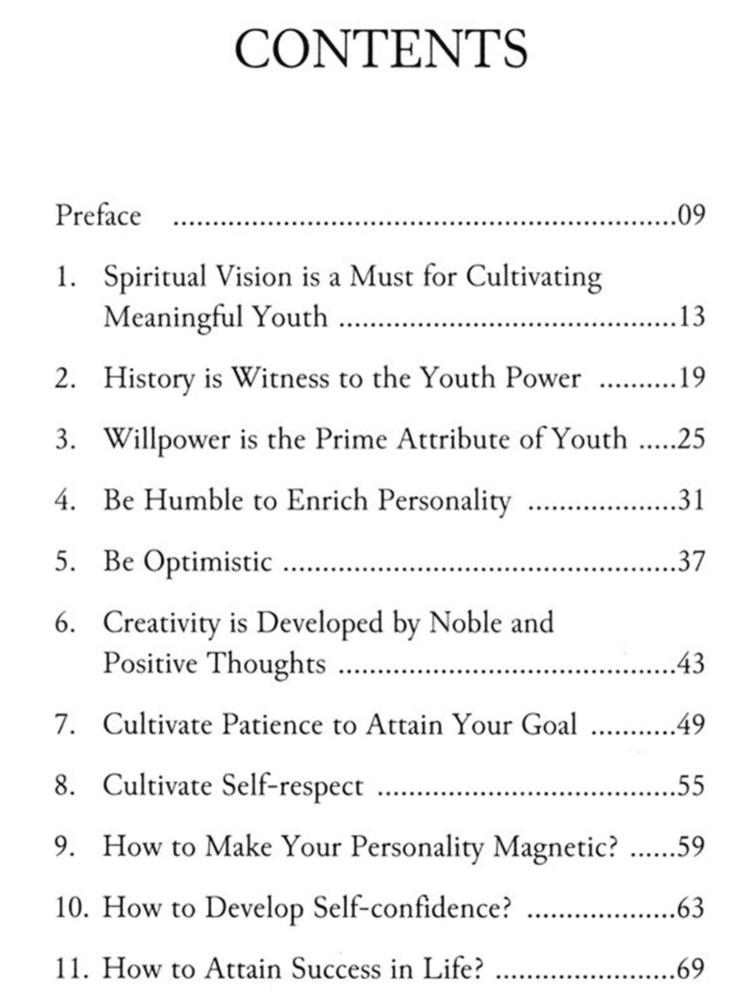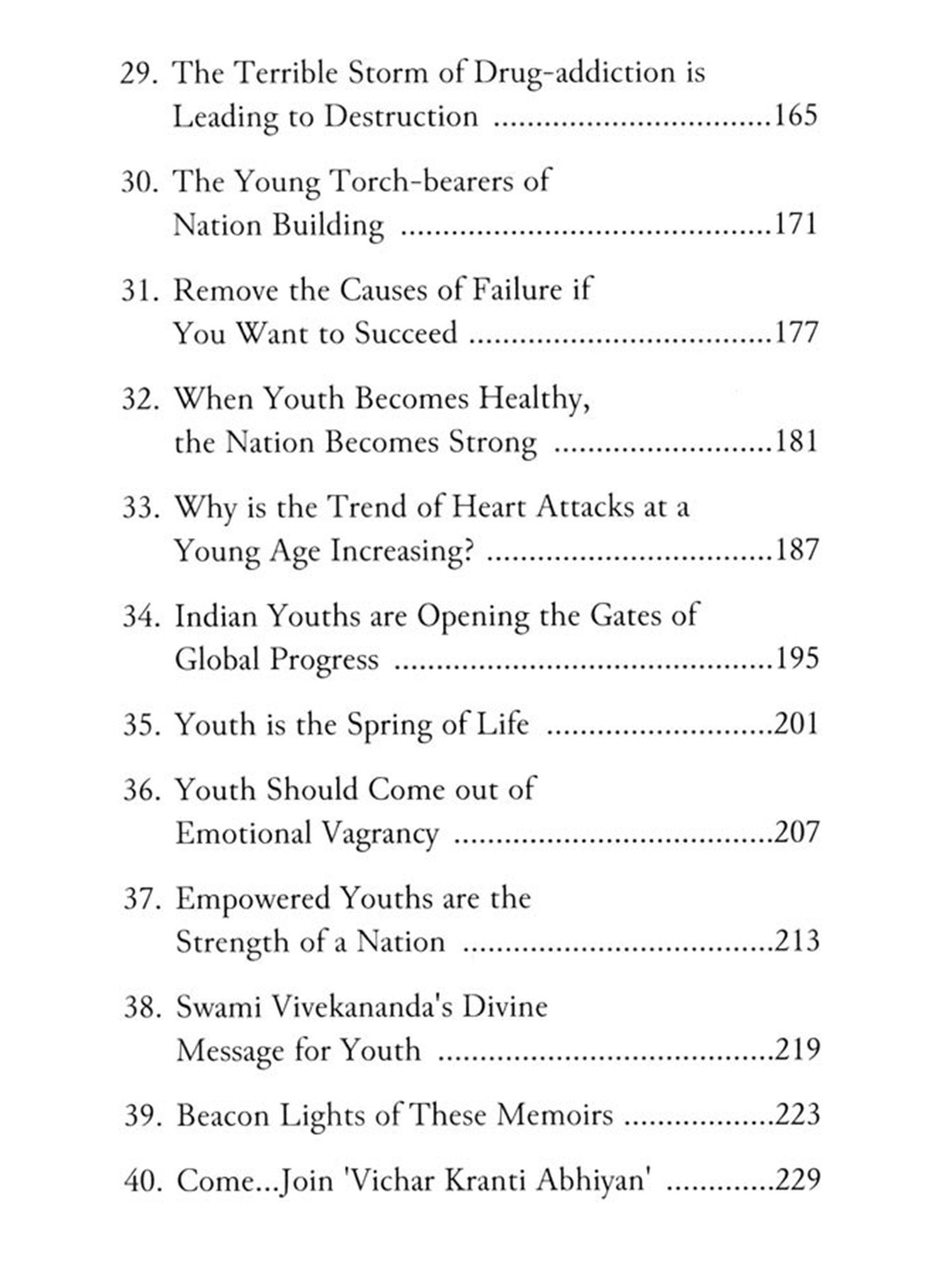 Thus, the book intends to motivate the youth for imbibing virtuous traits, which in turn, will help them in uplifting their personalities. Once this vibrant, energetic and dynamic force is ready, it can be utilized in the development of the Nation and the welfare of the world at large.