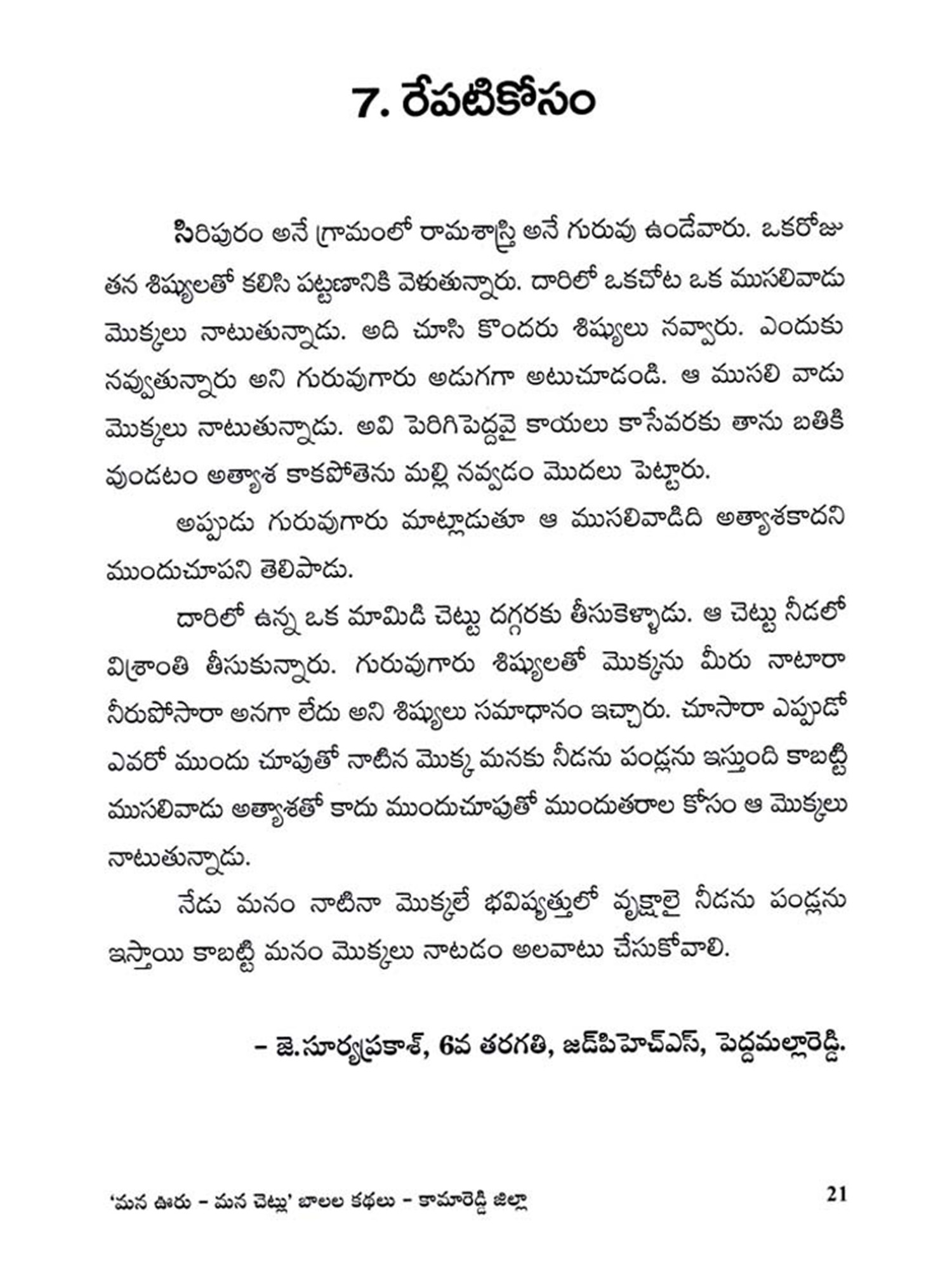 మన ఊరు - మన చెట్లు బాలల కథలు: Mana Uru - Mana Cetlu Balala Kathalu- Jagtial District (Telugu)