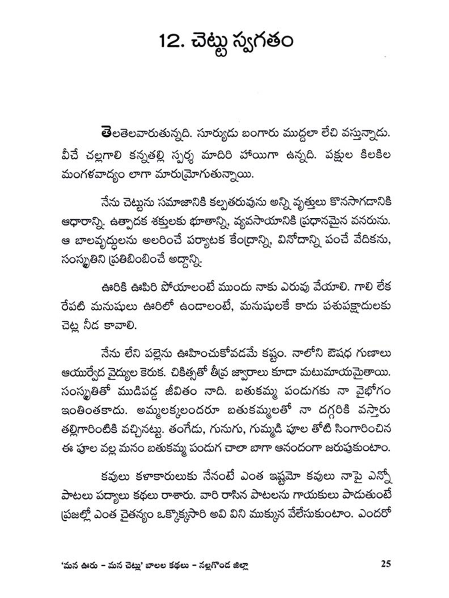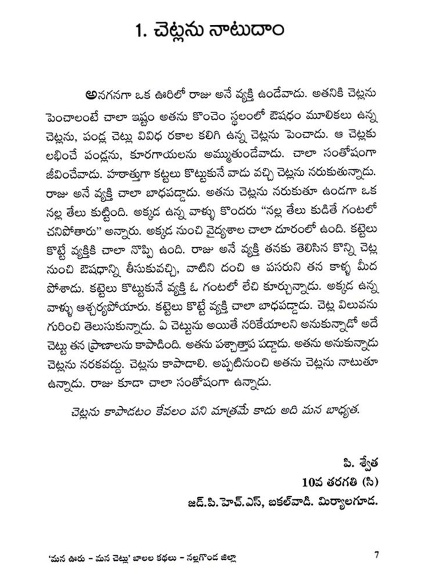 మన ఊరు - మన చెట్లు బాలల కథలు: Mana Uru - Mana Cetlu Balala Kathalu- Kamareddy District (Telugu)