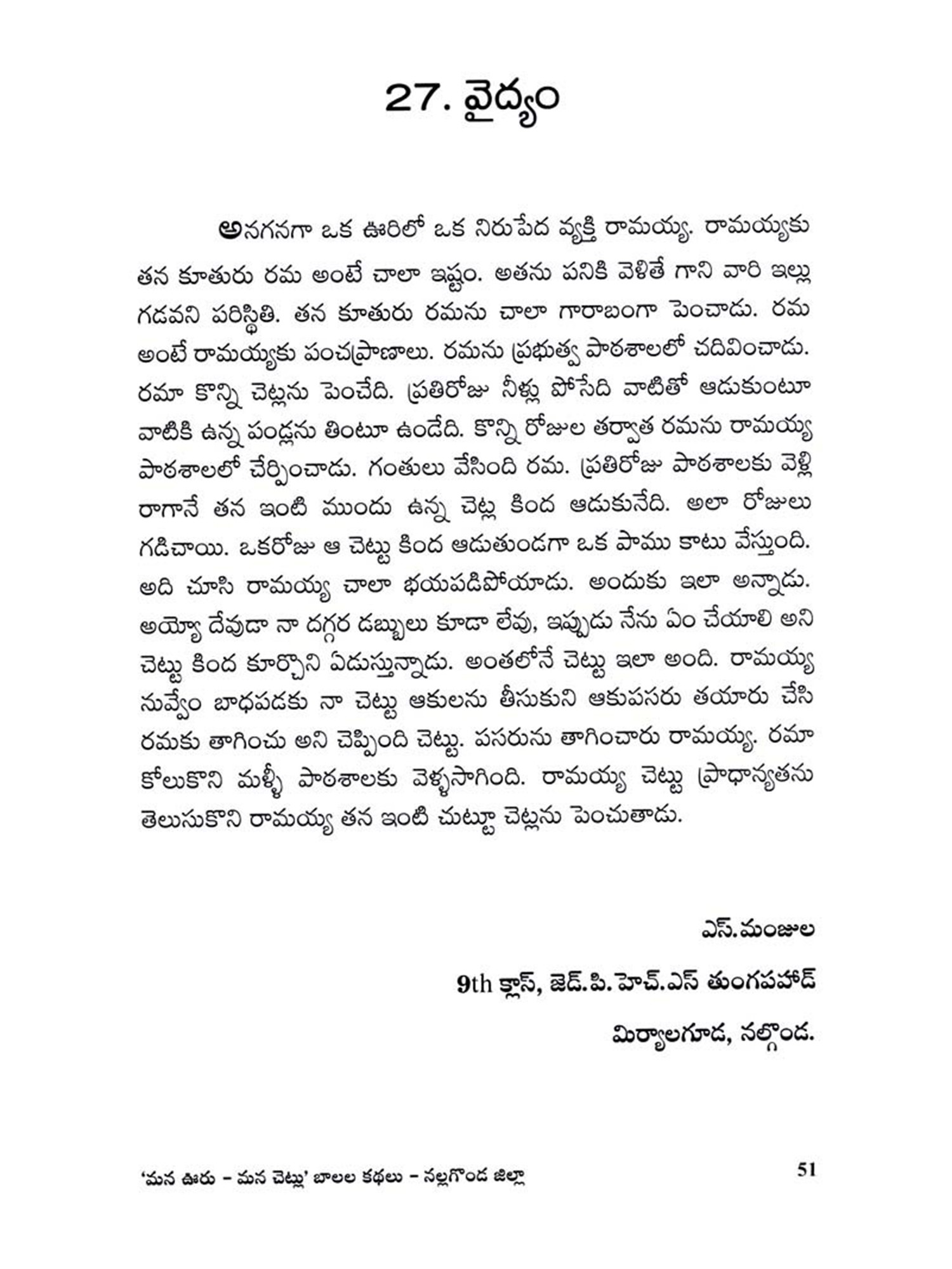 మన ఊరు - మన చెట్లు బాలల కథలు: Mana Uru - Mana Cetlu Balala Kathalu- Jagtial District (Telugu)