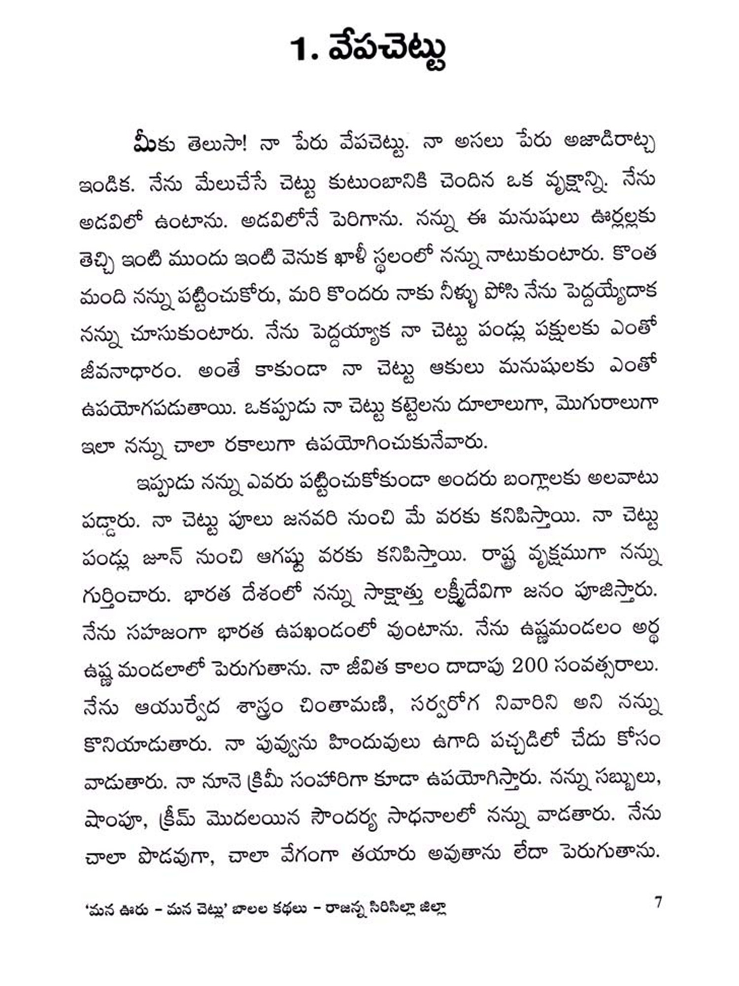 మన ఊరు - మన చెట్లు బాలల కథలు: Mana Uru - Mana Cetlu Balala Kathalu- Rangareddy District (Telugu)