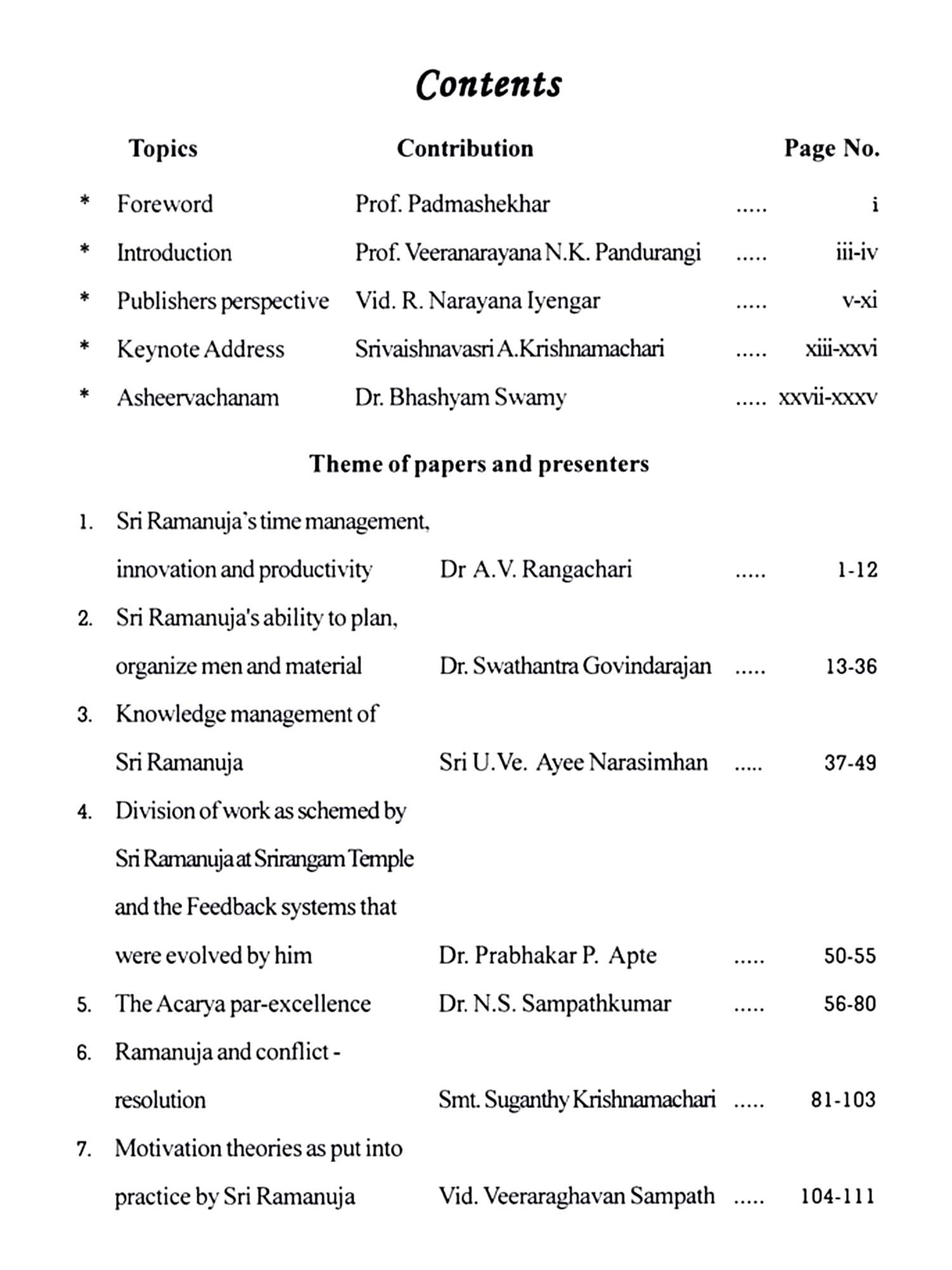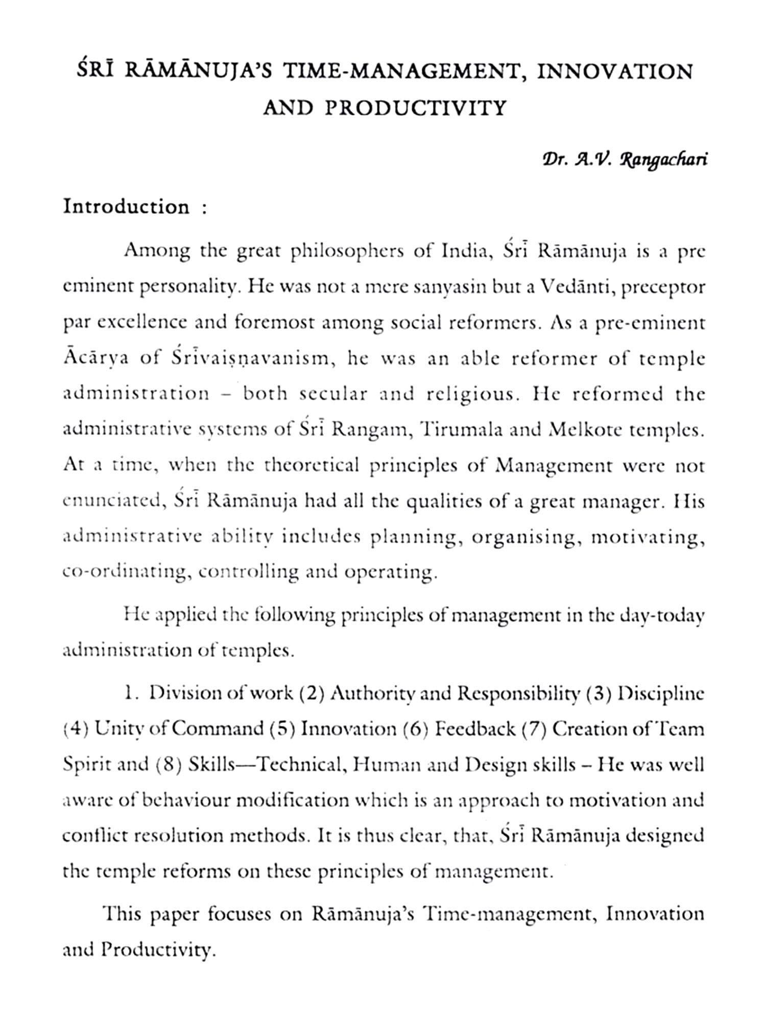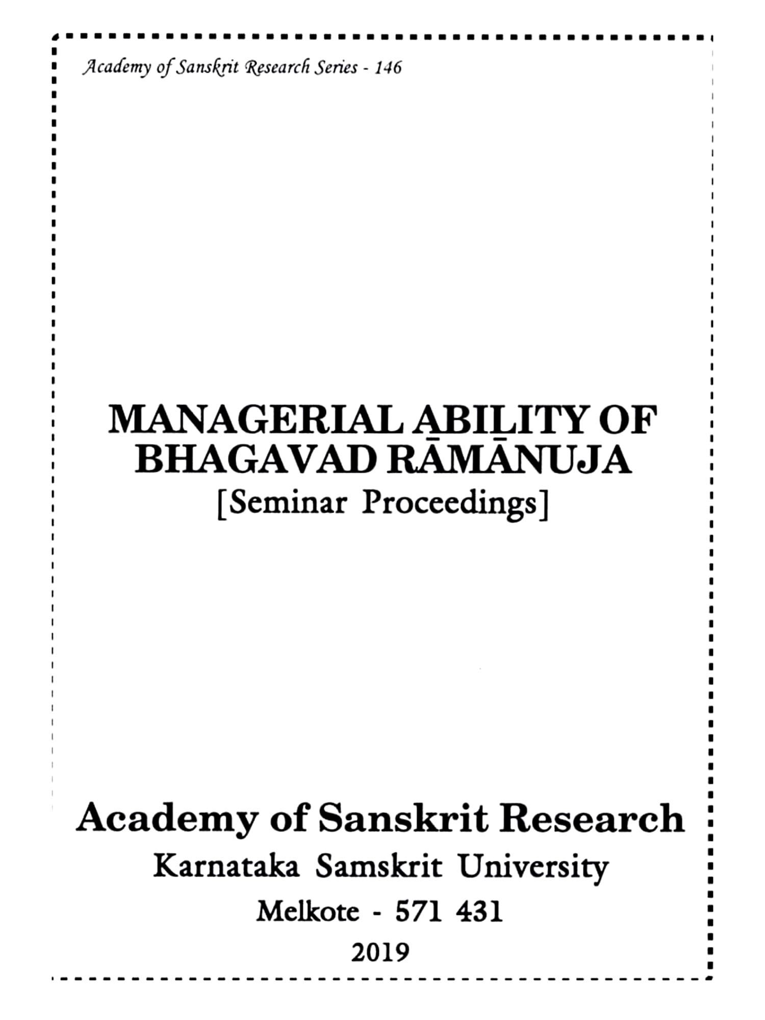 It is our pleasure to place seminar proceedings Managerial Ability of Bhagavad Ramanuja at the hands of learned readers.