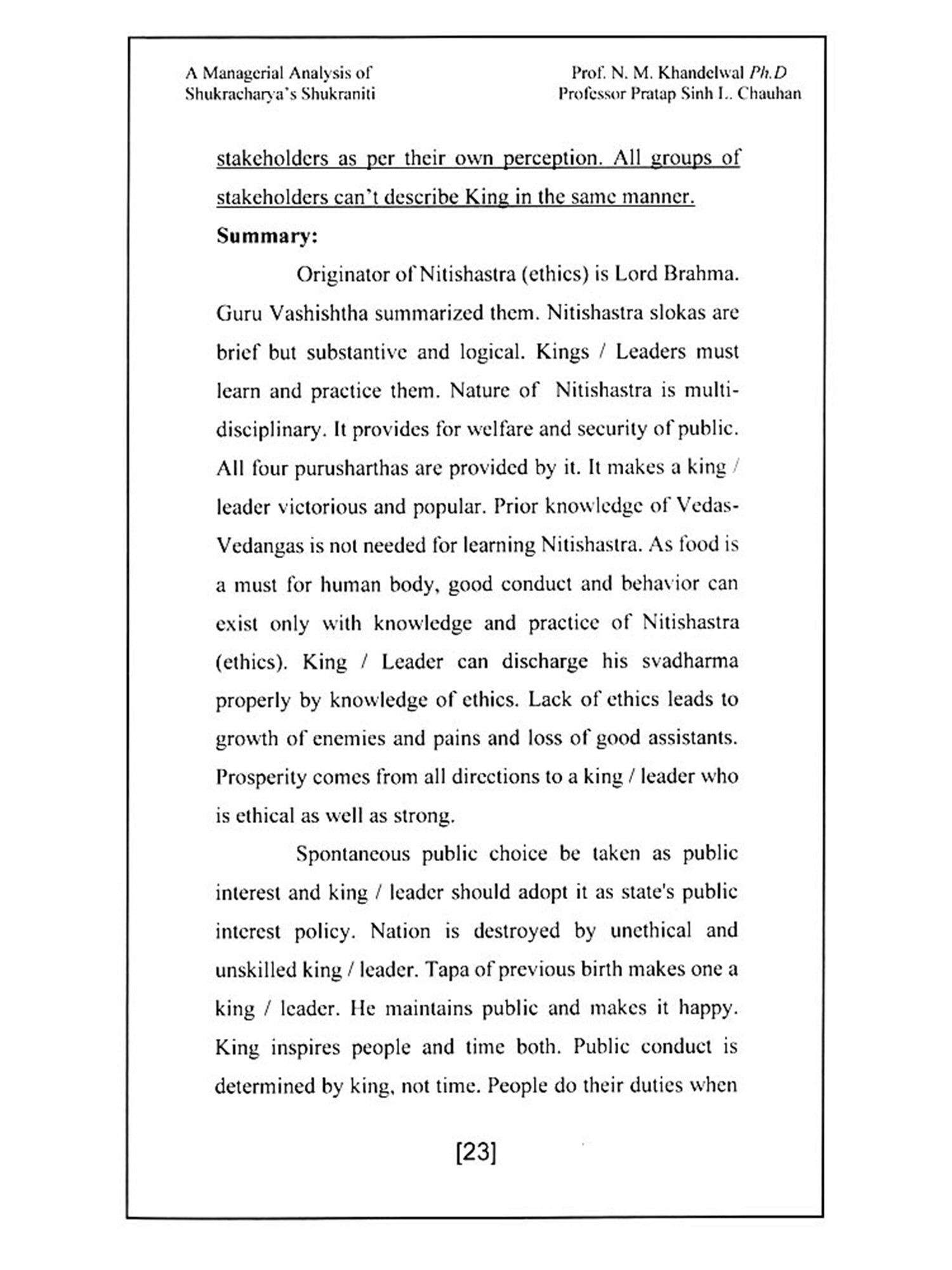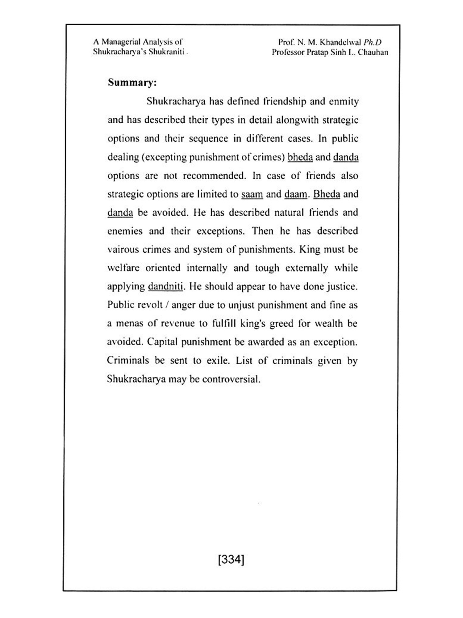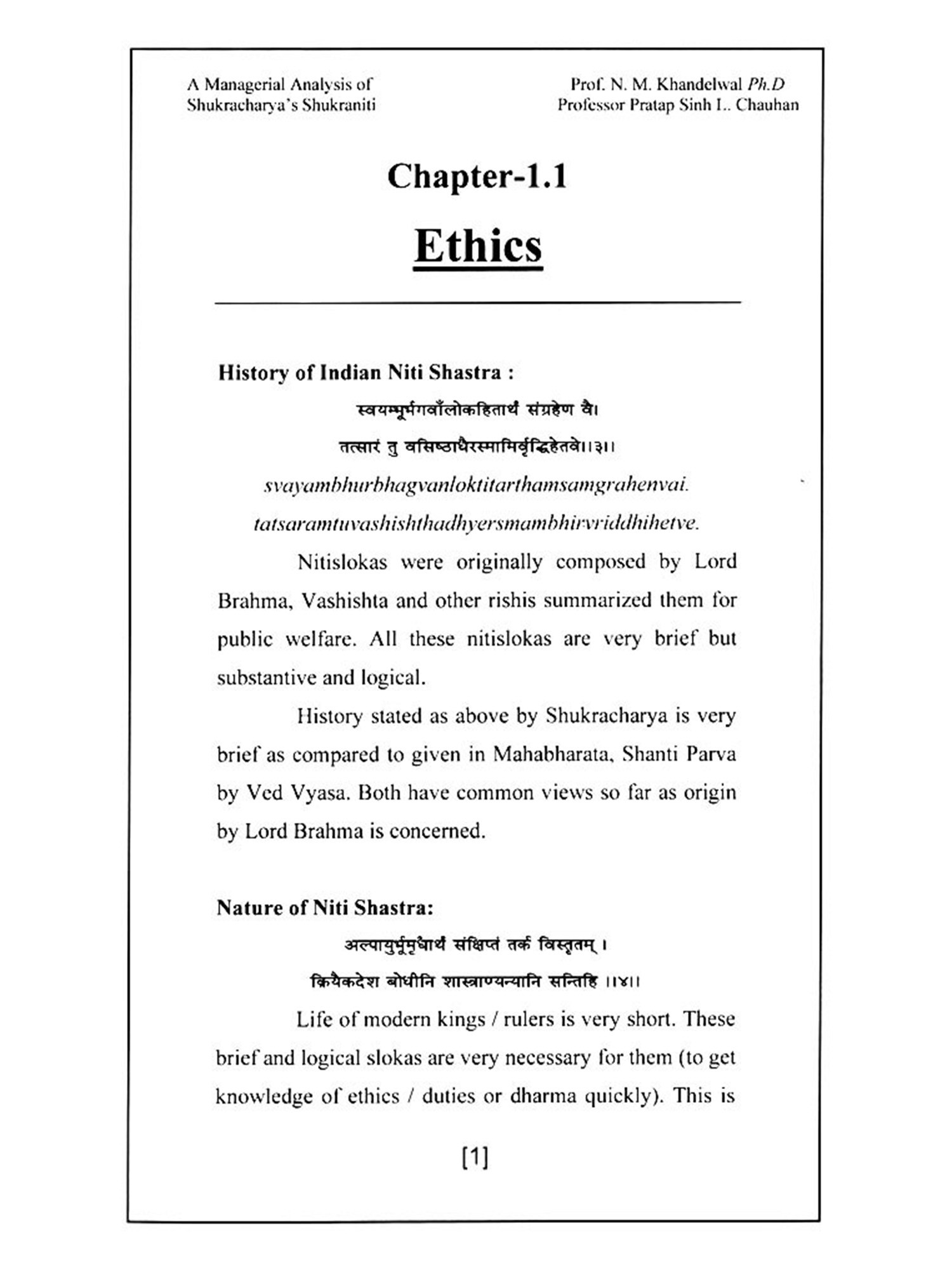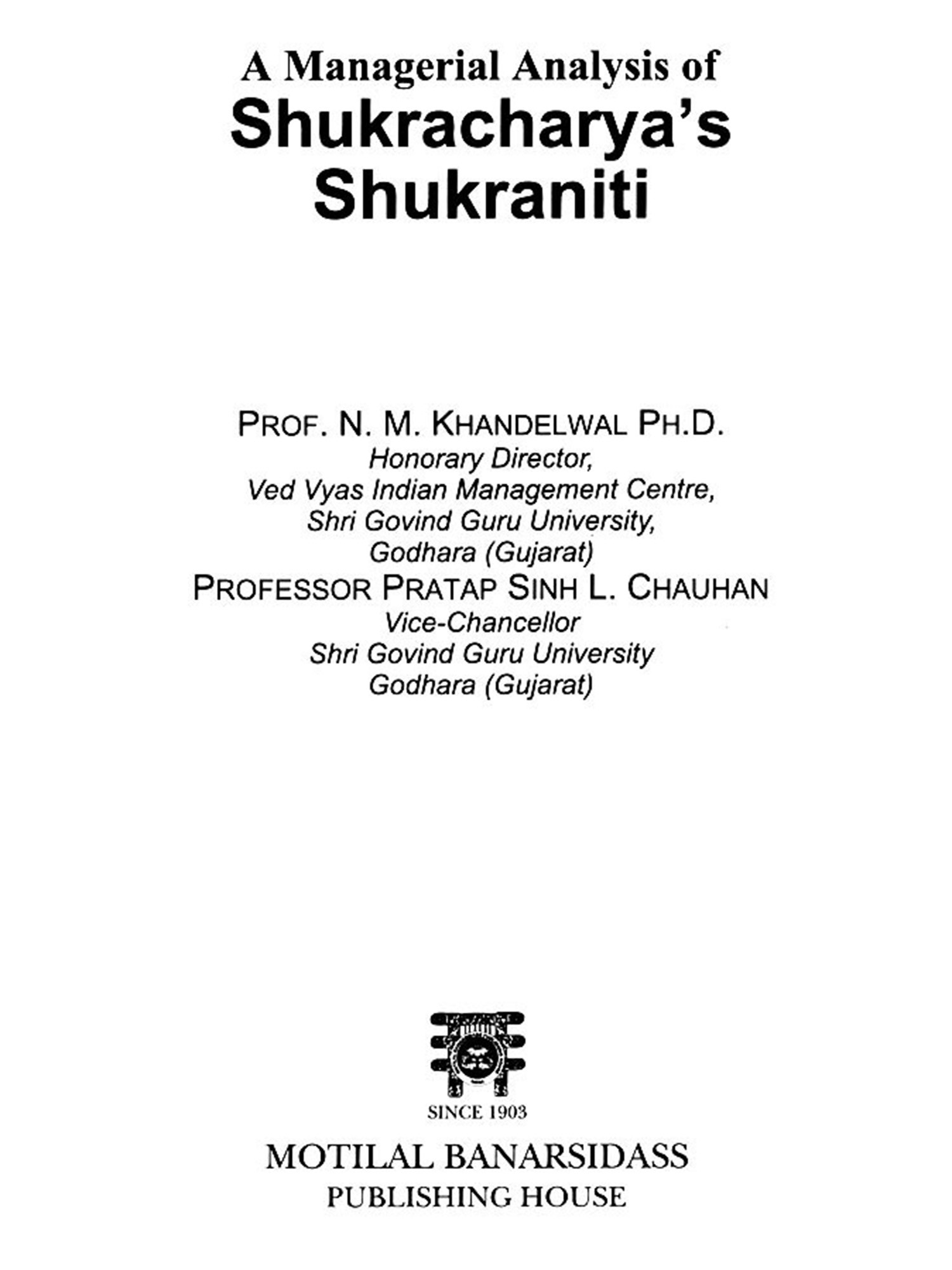 This book is based on Research Project No. 5, completed at the Global Centre for Indian Management, Department of MBA, Saurashtra University, Rajkot. Shukracharya, the guru of the kings of the demon clan, was a Bhriguvanshi and a devoted follower of Lord Shiva. He is regarded as an authority on Dandaniti (the science of governance and punishment).