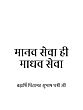 "मानव सेवा ही माधव सेवा है" ब्रह्मर्षि पत्री जी द्वारा लिखी गई एक प्रेरणादायक पुस्तक है, जो मानवता की सेवा और आध्यात्मिकता के गहरे संबंध को उजागर करती है। इस पुस्तक में पत्री जी ने सेवा के विभिन्न पहलुओं पर विचार किया है, जिसमें लौकिक से लेकर आध्यात्मिक सेवा तक का समावेश है।