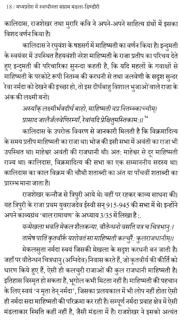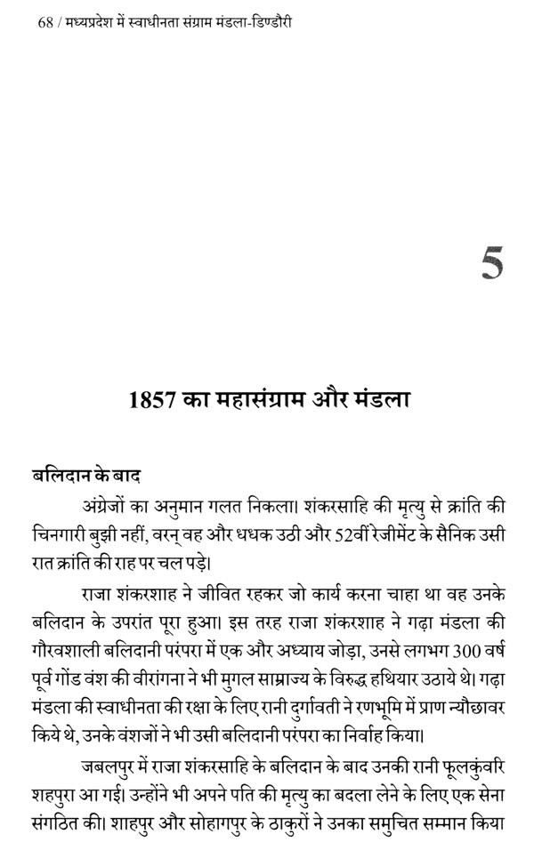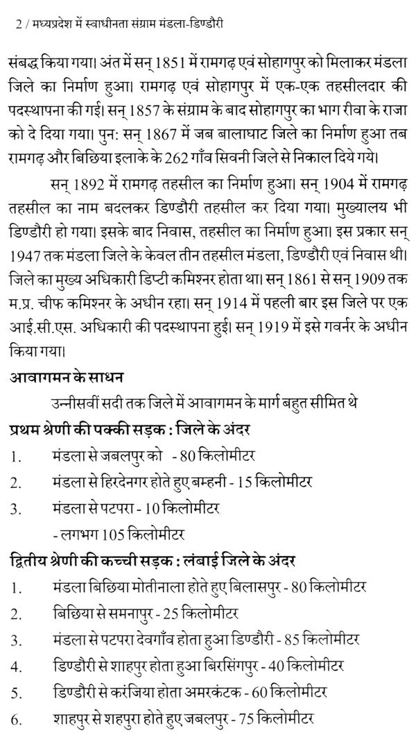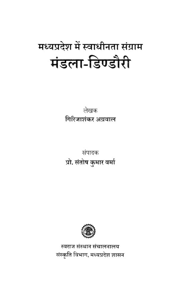 मंडला-डिण्डौरी जिले के स्वाधीनता आंदोलन का यह इतिहास विभिन्न लेखकों, इतिहाकारों द्वारा दिये गये विवरणों के अतिरिक्त मंडला के स्थानीय स्रोतों व जनश्रुतियों के आधार पर आजादी की गाथा को लेखबद्ध करने का प्रयास है। इसमें दी गई जानकारियाँ अंग्रेज सैनिकों तथा अधिकारियों द्वारा अपने उच्च पदस्थ अधिकारियों को दी गई सूचना तथा उनसे प्राप्त आदेशों से भी संकलित की गई हैं।