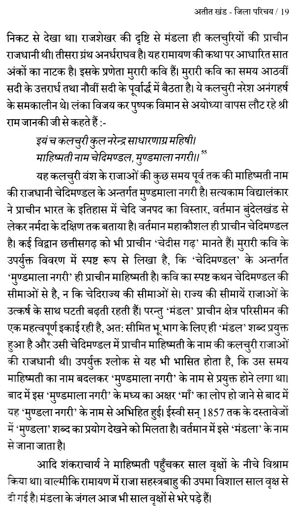 लेखन कार्य में अग्रवाल सार्वजनिक पुस्तकालय मंडला ने मुझे साहित्य उपलब्ध कराया। जिन-जिन लेखकों की पुस्तकों को मैंने पढ़ा तथा सहारा प्राप्त किया मैं उन सबके प्रति आभारी हूँ। बीसवीं सदी के पूर्वार्ध के इतिहास लेखन में मैंने डॉ. विनीत दुबे की 'मंडला जिले के स्वाधीनता संग्राम के इतिहास' के शोध प्रबंध से बहुत सहयोग लिया है, उन्होंने बहुत श्रम से उन पृष्ठों को लिपिबद्ध किया है। ट्रस्ट के सभी सदस्य न्यासी नरेशचन्द्र अग्रवाल तथा मेरे अनन्य सहयोगी भागवत प्रसाद बैरागी, रमेशचन्द्र पाठक का भी आभारी हूँ। काजल प्रिंटर्स के अर्पित चौरसिया ने जिस लगन तथा उत्साह से इसका टंकण किया है वह मुझे सदा स्मरण रहेगा।
