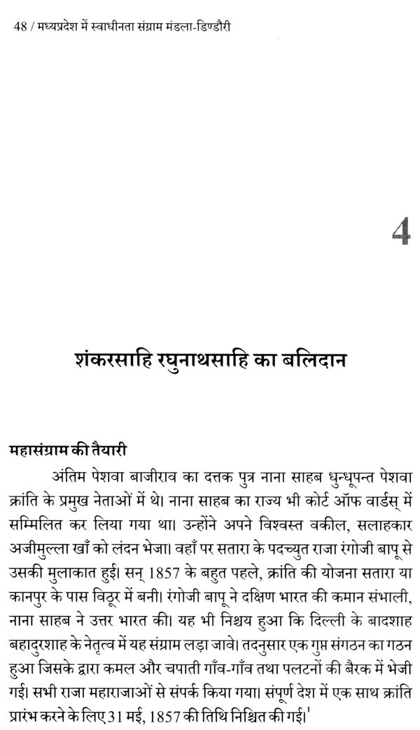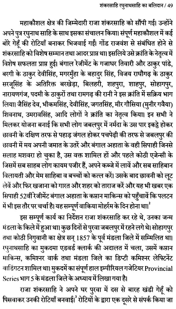 मराठा सरदारों के आधिपत्य में हुए उत्पीड़न के पश्चात, जब यहाँ तथाकथित सभ्य कहे जाने वाले अंग्रेज आए तब यहाँ की जनता को लगा कि उन्हें कुछ राहत मिलेगी किंतु अंग्रेजों द्वारा किये जा रहे अत्याचारों से भी उन्हें निराश हुई और इस जनता का आक्रोश फूट पड़ा। जीवन बचाये रखने के लिए युद्ध ही एकमात्र सहारा था। तब स्वाधीनता संग्राम में दो रुपये मासिक वेतन पर भर्ती होकर शहीद हो जाना ही श्रेयस्कर समझा गया। परिस्थितियों ने उन्हें विवश कर दिया तब स्वतः स्फूर्त तरीके से उसे संचालित कर उसमें सक्रिय भाग लिया। देश के नेताओं ने उन्हें संरक्षण प्रदान किया। अभी तक देश के स्वाधीनता आंदोलन के राष्ट्रीय इतिहास में इनका नाम प्रायः अज्ञात रहा। रानी दुर्गावती के बलिदान से राष्ट्र अपरिचित रहा। शंकरसाहि, रघुनाथसाहि, अवंतीबाई, फूलकुंवरि की शहादत गल्प कथाओं की सामग्री रही। पहली बार स्वराज संस्थान संचालनालय ने स्तुत्य प्रयास कर गाँव के अंतिम छोर तक पहुँचकर अंतिम व्यक्ति से संपर्क कर इस यशोगाथा को सुरक्षित करने का प्रयास किया है।