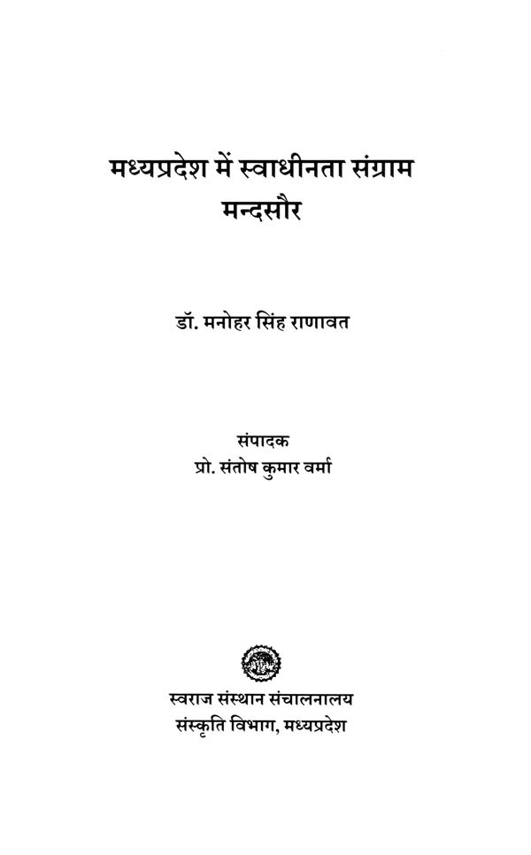 प्रस्तुत पुस्तक 'मध्यप्रदेश में स्वाधीनता संग्राम मंदसौर' जिले में आंदोलन की गतिविधियों एवं प्रमुख घटनाओं को लेखबद्ध करने का प्रयास किया गया है। इस महत्वपूर्ण कार्य की जिम्मेदारी प्रदान करने के लिए मैं स्वराज संस्थान संचालनालय, संस्कृति विभाग, मध्यप्रदेश शासन का आभारी हूँ तथा मेरे इस प्रयास में प्रत्यक्ष एवं अप्रत्यक्ष रूप से सहयोग के लिए सभी का धन्यवाद ज्ञापित करता हूँ।