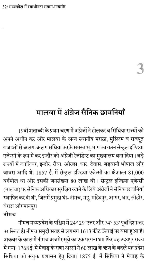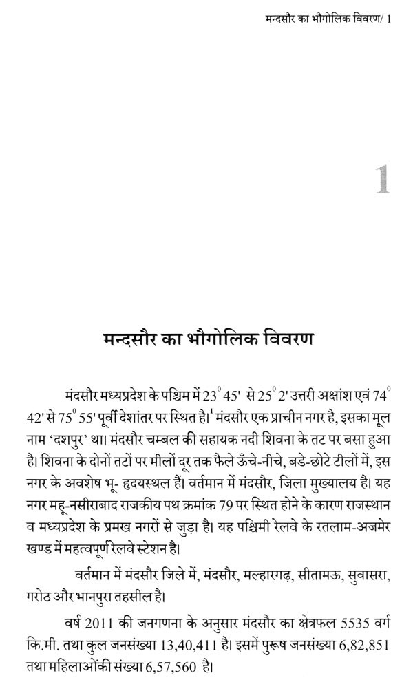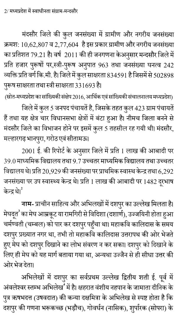 भारत वर्ष के पुरातन वैभव के प्रतीक नगरों में मंदसौर का महत्वपूर्ण स्थान है। मन्दसौर स्वतंत्रता आन्दोलन का मुख्य केन्द्र रहा है। इसके उत्तर में मल्हारगढ़ तहसील है। इसके दक्षिण में रतलाम, पूर्व में सीतामऊ तहसील तथा पश्चिम में राजस्थान का प्रतापगढ़ जिला है। प्रतापगढ़ का आन्दोलन भी मन्दसौर जिले के आन्दोलन पर पूरी तरह अपना प्रभाव डालता रहा है। 1857 के स्वतंत्रता संग्राम के समय में मन्दसौर में जो घटनाएँ घटित हुई वे अपने आप में अभूतपूर्व थी। इसका कारण भौगोलिक सामाजिक रूप से मन्दसौर की स्थिति थी यह अजमेर-महू राजमार्ग के बिलकुल मध्य में था। अजमेर और महू अंग्रेजी सेना के प्रमुख केन्द्र थे। इसके अतिरिक्त अजमेर और महू के बीच में अंग्रेजों की दो प्रमुख सैनिक छावनियाँ नीमच और नसीराबाद थी। मन्दसौर में रहकर इन छावनियों में स्वतंत्रता संग्राम का संचालन सावधानीपूर्वक किया जा सकता था। मन्दसौर ग्वालियर राज्य का जिला मुख्यालय था और ग्वालियर से दूर भी था, इसके साथ मन्दसौर मालवा का सम्पन्न व्यापारिक केन्द्र भी था। इसके अतिरिक्त मन्दसौर के चारों ओर चार राज्यों की सीमाएँ लगती थी, प्रतापगढ़, जावरा, सीतामऊ, होलकर। इन राज्यों के स्वतंत्रता आन्दोलन पूरी तरह सक्षम थे। मन्दसौर स्वतंत्रता संग्राम के एक बड़े बोद्धा शाहजादा फीरोज का मुख्यालय भी रहा था। यही कारण था कि मन्दसौर का स्वतंत्रता आन्दोलन सदा सतर्क एवं सचेत बना रहा। यद्यपि 1857 की क्रान्ति सर्वधा विफल सिद्ध नहीं हुई, प्रत्युत स्वतंत्रता प्राप्ति की प्रेरणा वह जन-जन में जगा गई।