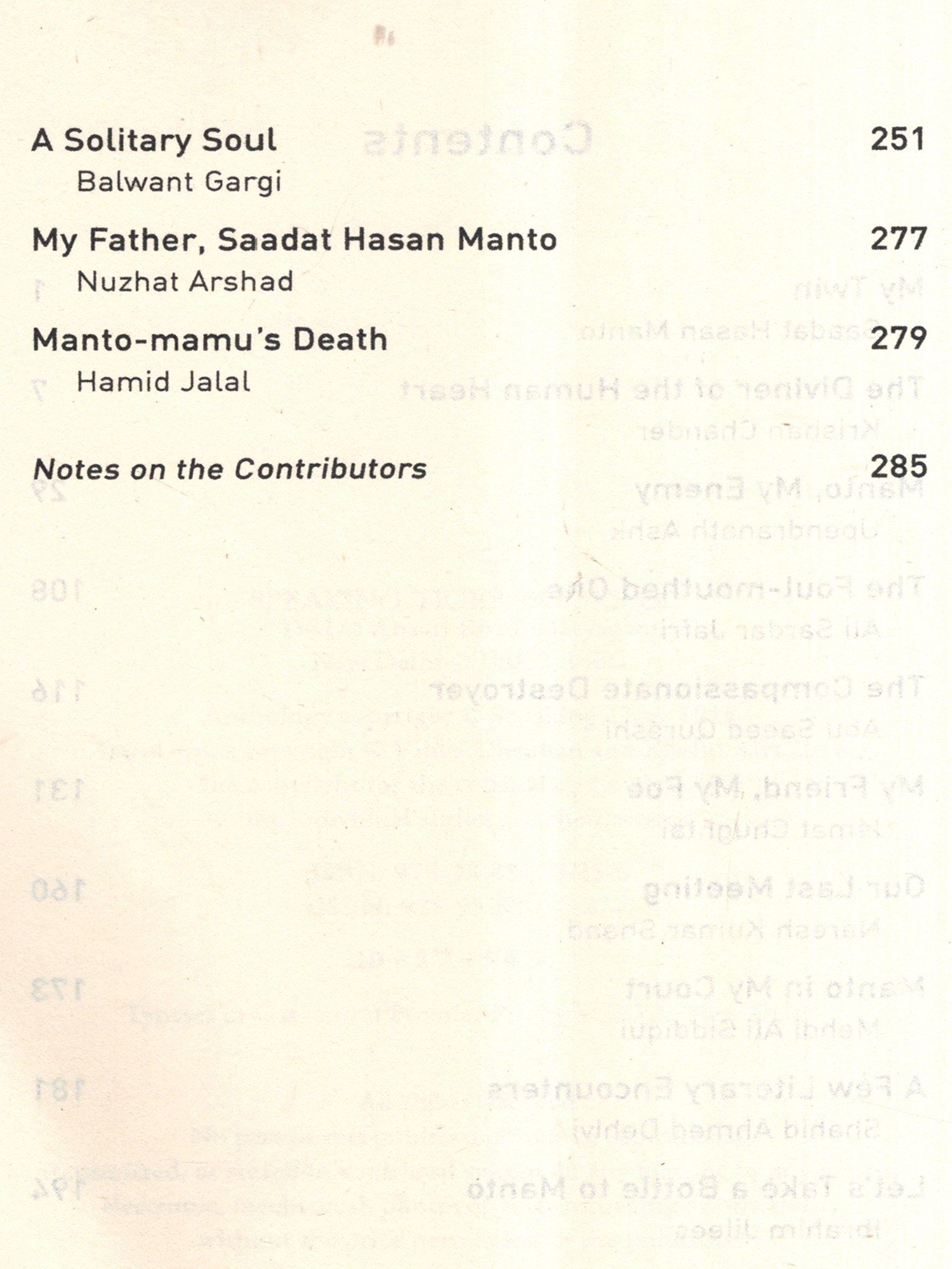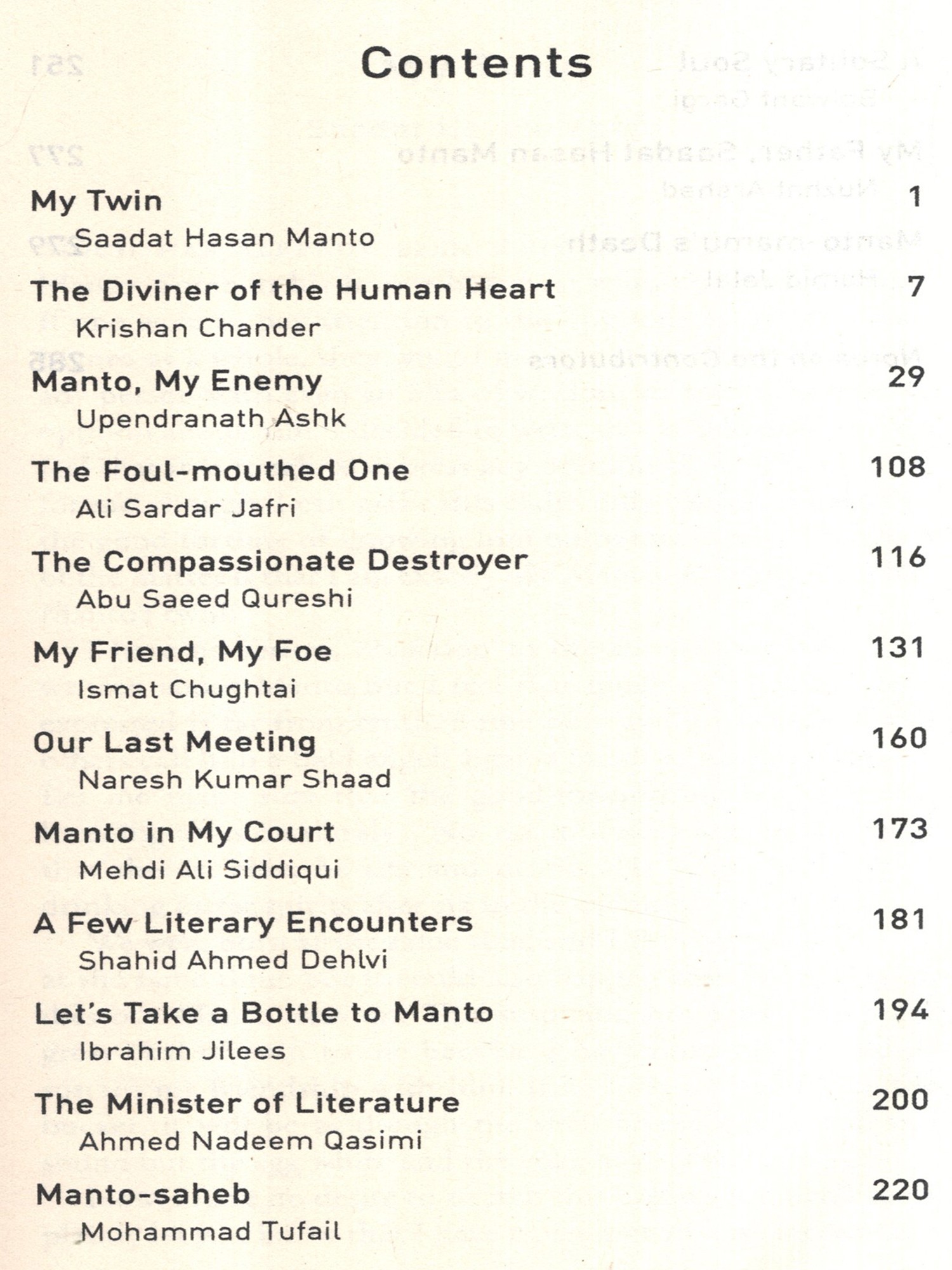 This remarkable anthology brings together stories about Saadat Hasan Manto, essayist, scriptwriter and a master of the short story, by his friends, family and rivals-among others, Ismat Chughtai. Upendranath Ashk, Balwant Gargi, Krishan Chander, his daughter Nuzhat and nephew Hamid Jalal. These are accounts of grand friendships and quarrels, protracted drinking bouts, cut-throat rivalries in the world of Urdu letters, and intense engagement with issues of that turbulent age. Together, they form an unprecedented portrait of the literary and film worlds of the time, and of the great cities of Bombay, Delhi and Lahore.