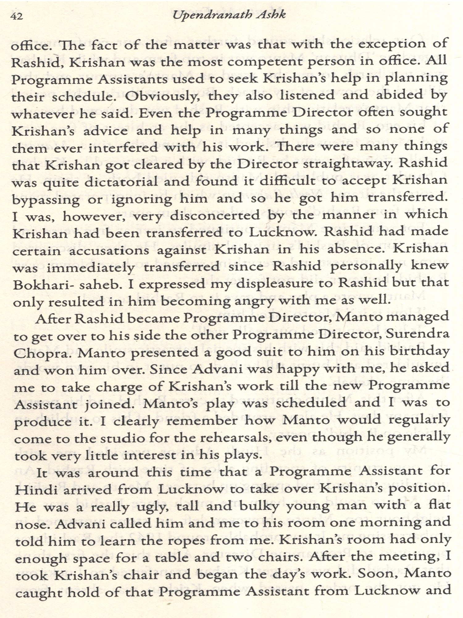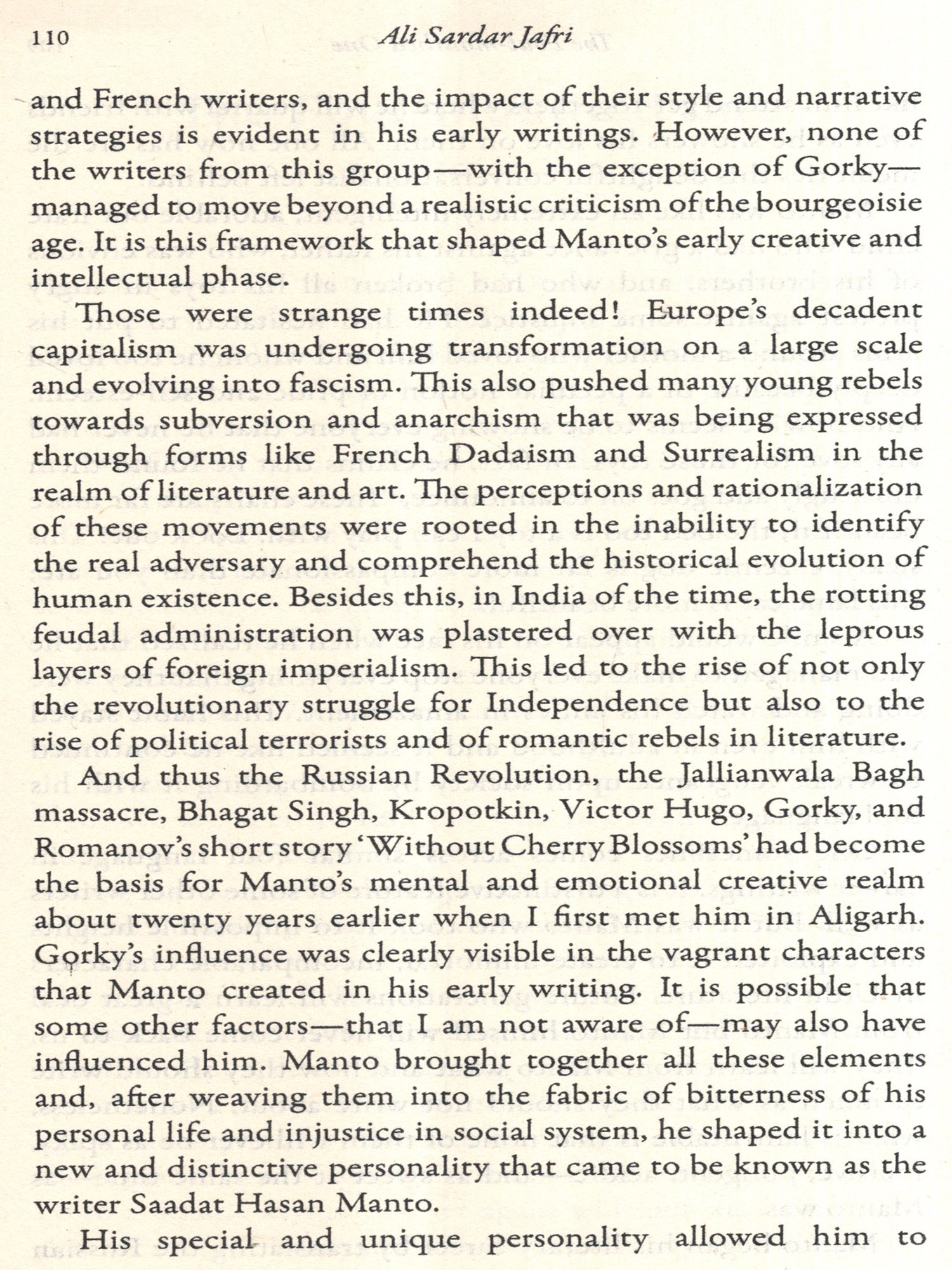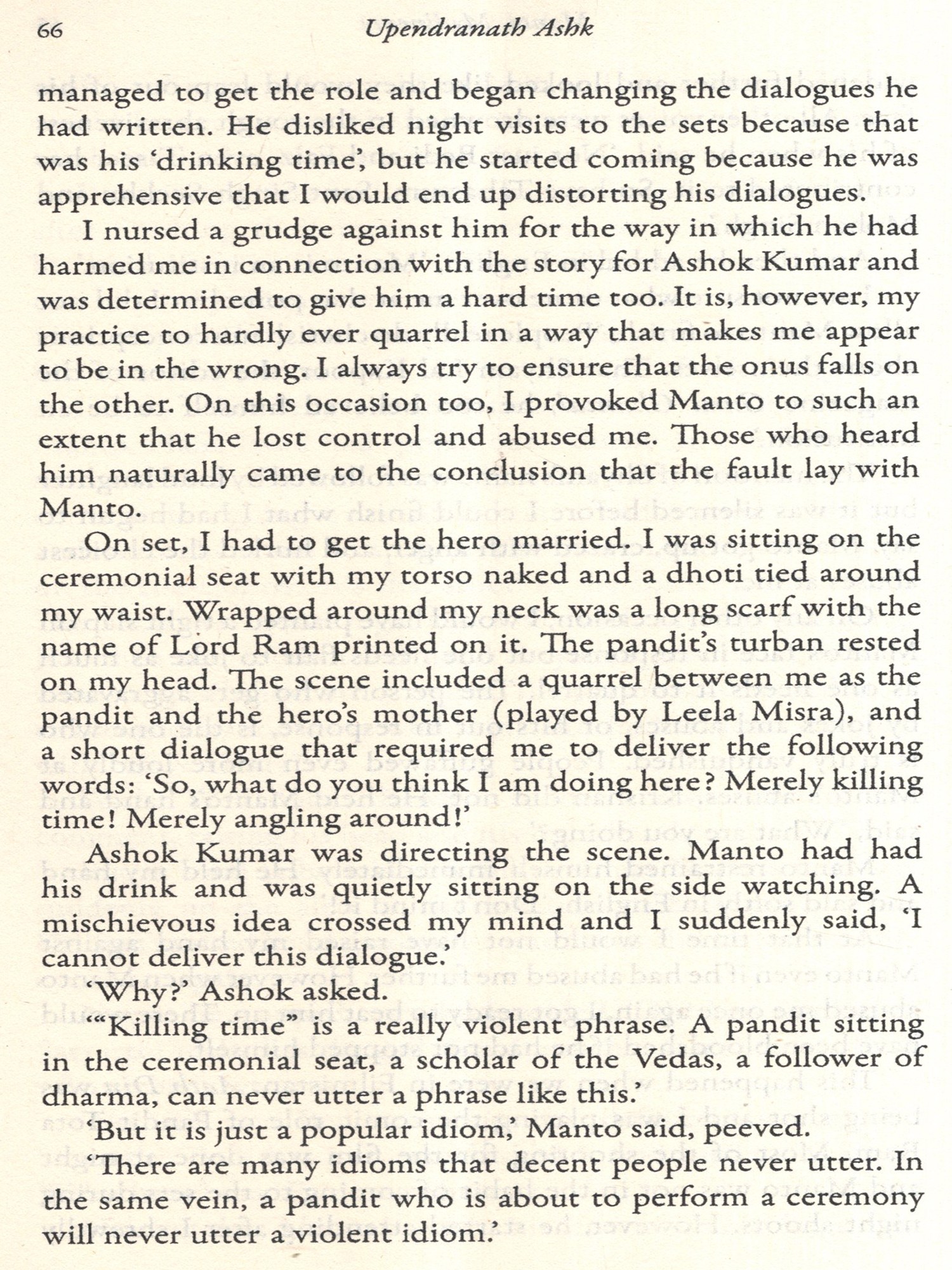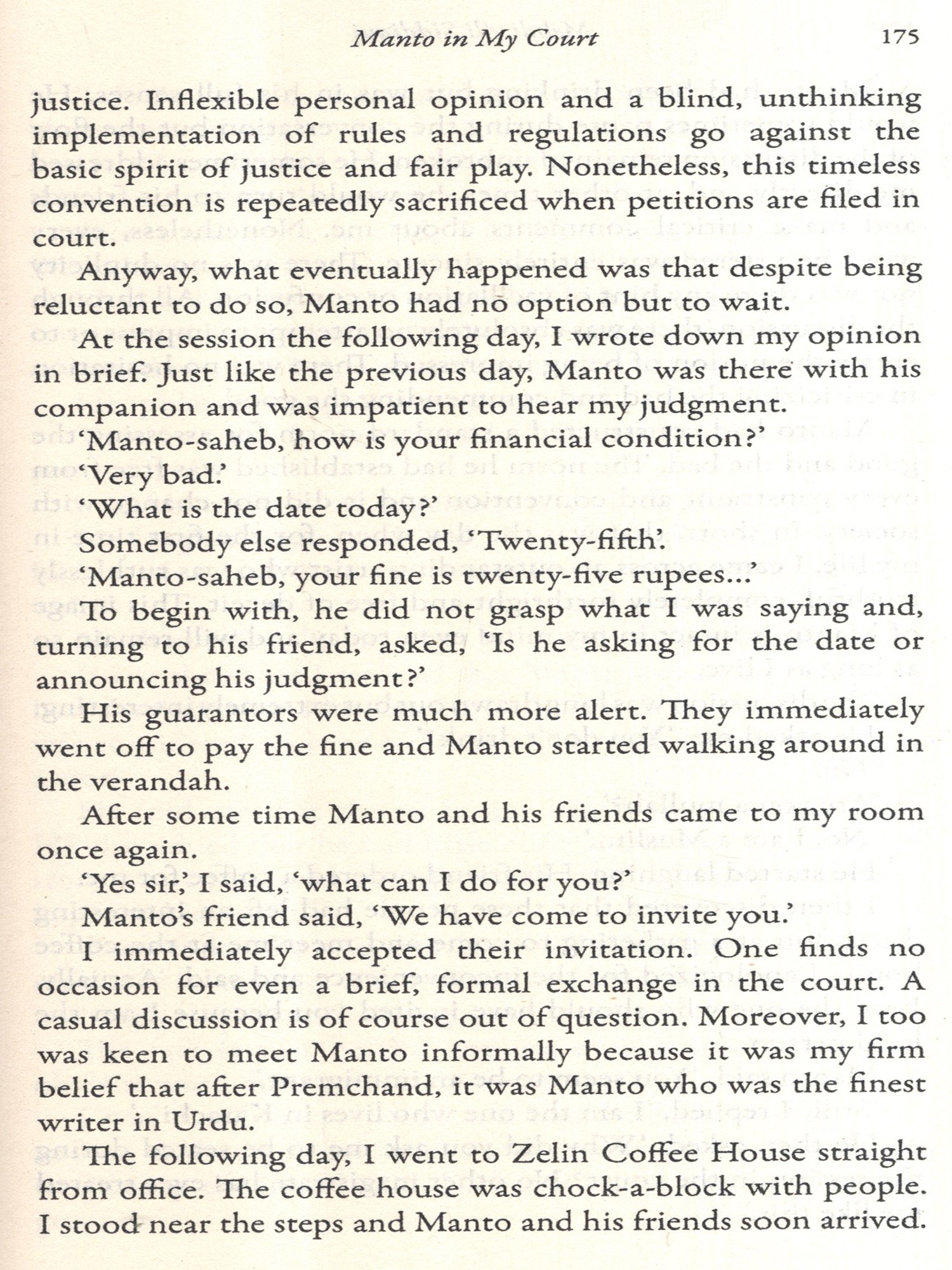 Fiercely competitive and an outspoken critic of others' writing. he brooked no criticism of his own, at times choosing to sever ties rather than have his words tampered with. And, for much of his adult life, right until the end, Manto was an alcoholic who fiercely defended his choice to remain one.