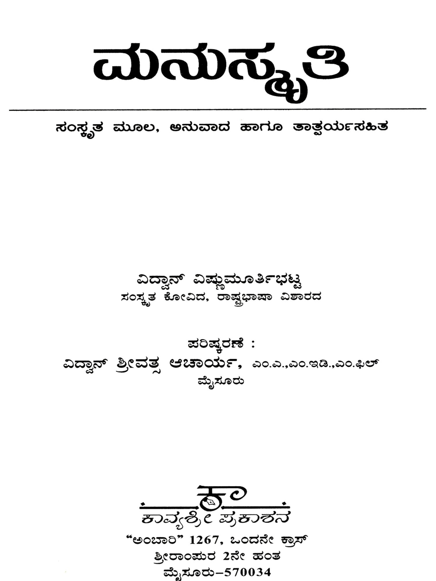 ಮನುಸ್ಮ್ರಿತಿ: Manusmriti (Kannada)