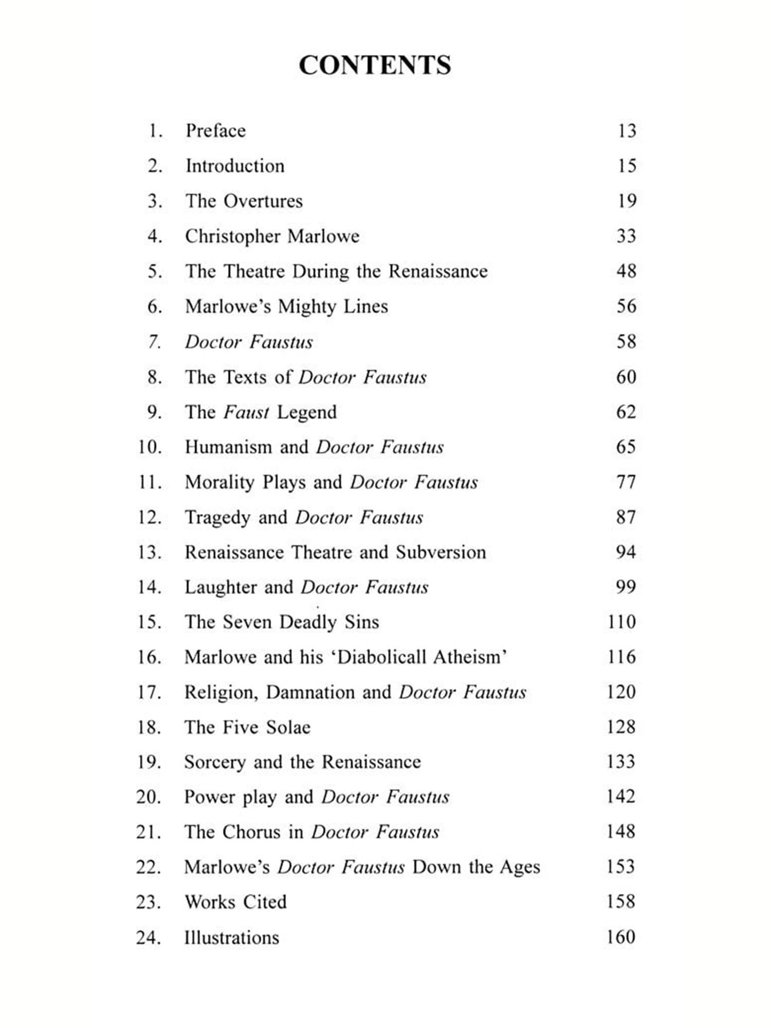 My specialization in the sense of research for my doctoral degree has been on the Gothic genre and the Brontë sisters, the topic of my thesis being 'The Elements of the Gothic in the Brontës. But spending a lifetime teaching in various colleges and universities in India, and handling a spectrum of topics as well as genres to teach, I had to somewhat slip into the ubiquitous role of the proverbial Jack of all trades. My long 23 years of teaching has found me lecturing and discussing a boggling range of topics ranging from Renaissance literature to Victorian Literature to American Literature to Indian English Literature to Literary Theory. In this variegated oeuvre of topics that I have done during classroom teaching, one text that I loved teaching every year was DoctorFaustus. Having talked DoctorFaustus for quite a few years, I read, studied, thought, deliberated and discussed the text extensively. In the process, a methodology of looking at DoctorFaustus slowly shaped itself in my mind. The need to document those thoughts is what gave birth to this book.