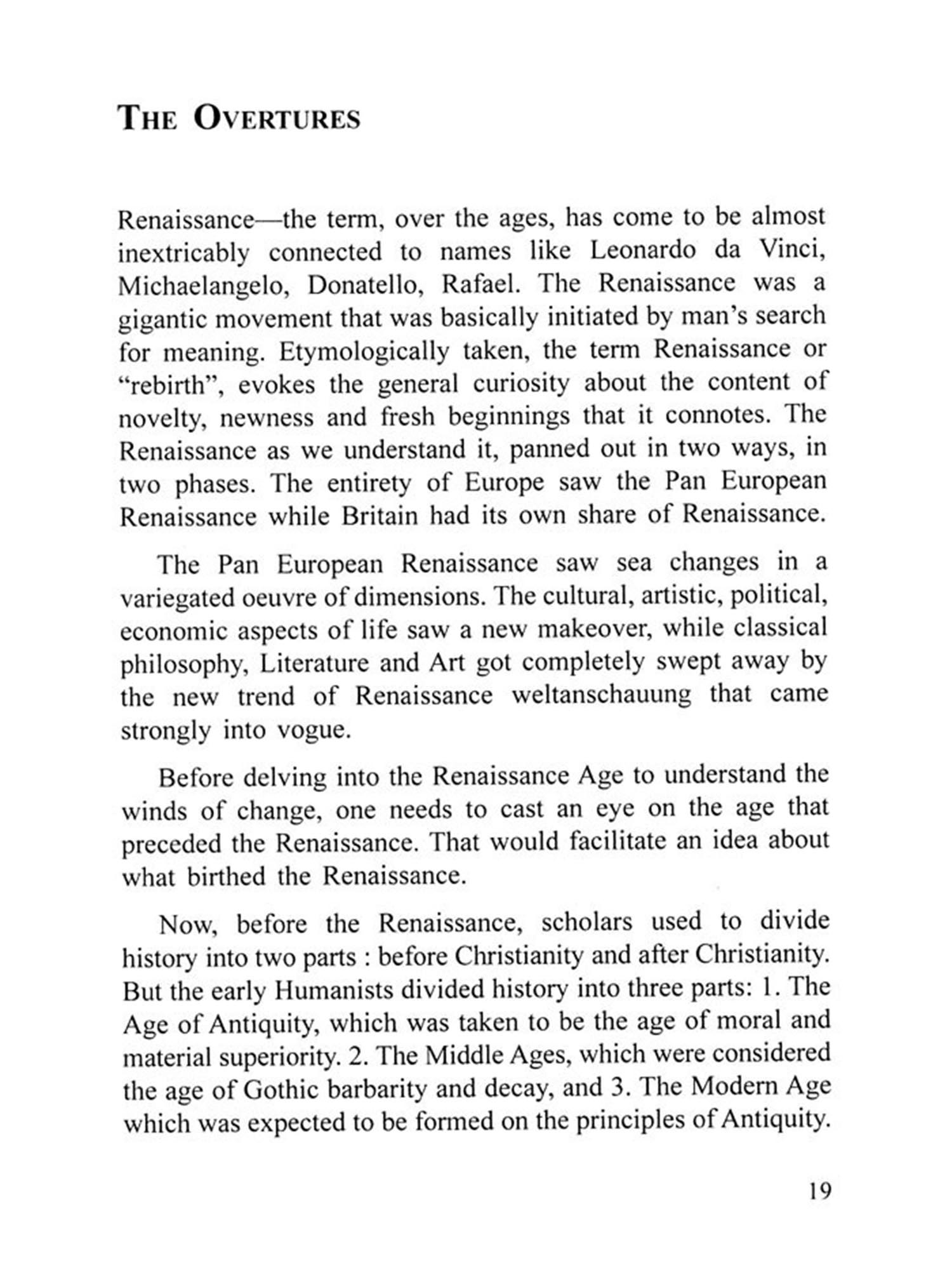 Europe at the time of Renaissance was witnessing enormous changes on many levels of life. Humanism was the buzzword of the day. Humanism encouraged human beings to reach out for the skies. Impossibility had become an abstraction to be challenged. On the other hand, there were thinkers like Pico Della Mirandola and St Thomas Aquinas who were talking about how life should be ordered out in the decency of a cosmic hierarchy, thereby bringing the microcosm in synchronization with the macrocosm.