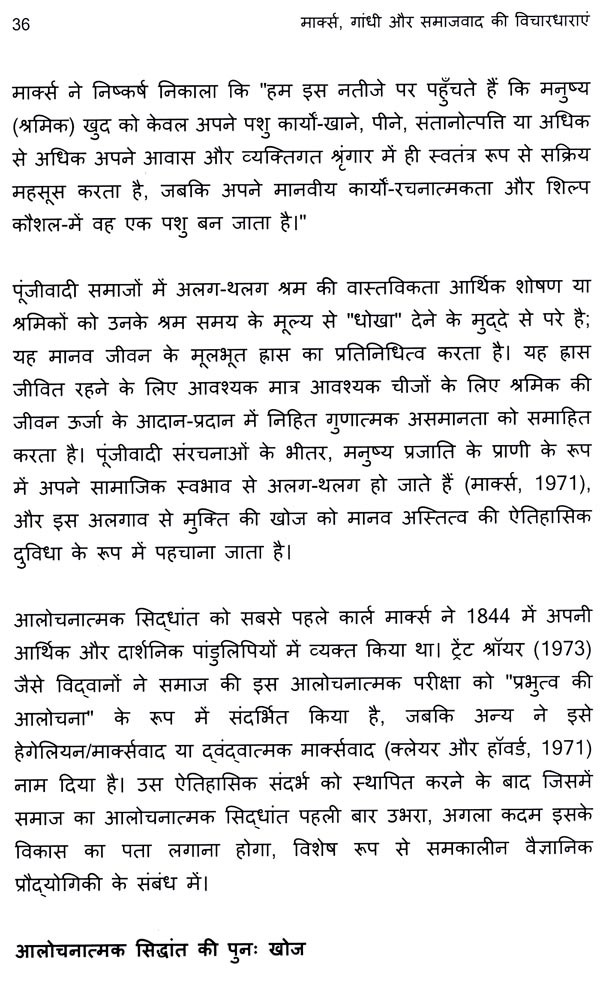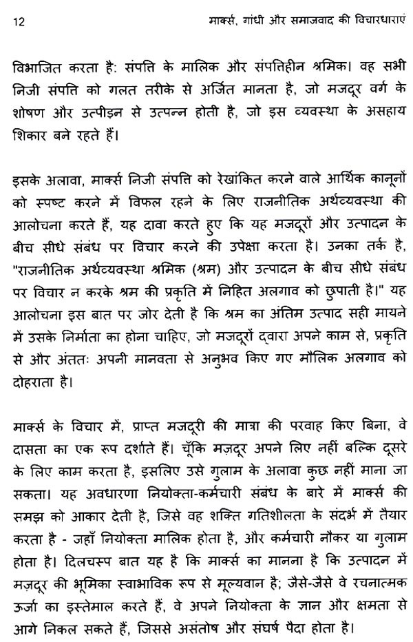 यह पुस्तक कार्ल मार्क्स और महात्मा गांधी दोनों के मूलभूत विचारों, दर्शन और राजनीतिक नीतियों को प्रस्तुत करती है। इन दो महान हस्तियों के जीवन और कार्य की खोज करके, यह समाज के लिए उनके संबंधित दृष्टिकोणों को समझने के लिए एक मूल्यवान रूपरेखा प्रदान करता है। समाजवाद के माध्यम से समाज के पुनर्गठन के लिए मार्क्स के क्रांतिकारी आह्वान और व्यक्तिगत नैतिक पूर्णता पर गांधी के जोर के बीच का अंतर राजनीतिक विचार पर एक अनूठा दृष्टिकोण प्रदान करता है। राजनीतिज्ञ, नीति-निर्माता, विद्वान, छात्र और शिक्षक सभी को यह पुस्तक एक अपरिहार्य संसाधन लगेगी। यह न केवल मार्क्सवाद और गांधीवाद के वैचारिक आधारों पर प्रकाश डालती है, बल्कि सामाजिक परिवर्तन, शासन और मानव विकास के बारे में समकालीन बहसों के लिए प्रासंगिक अंतर्दृष्टि भी प्रदान करती है।
